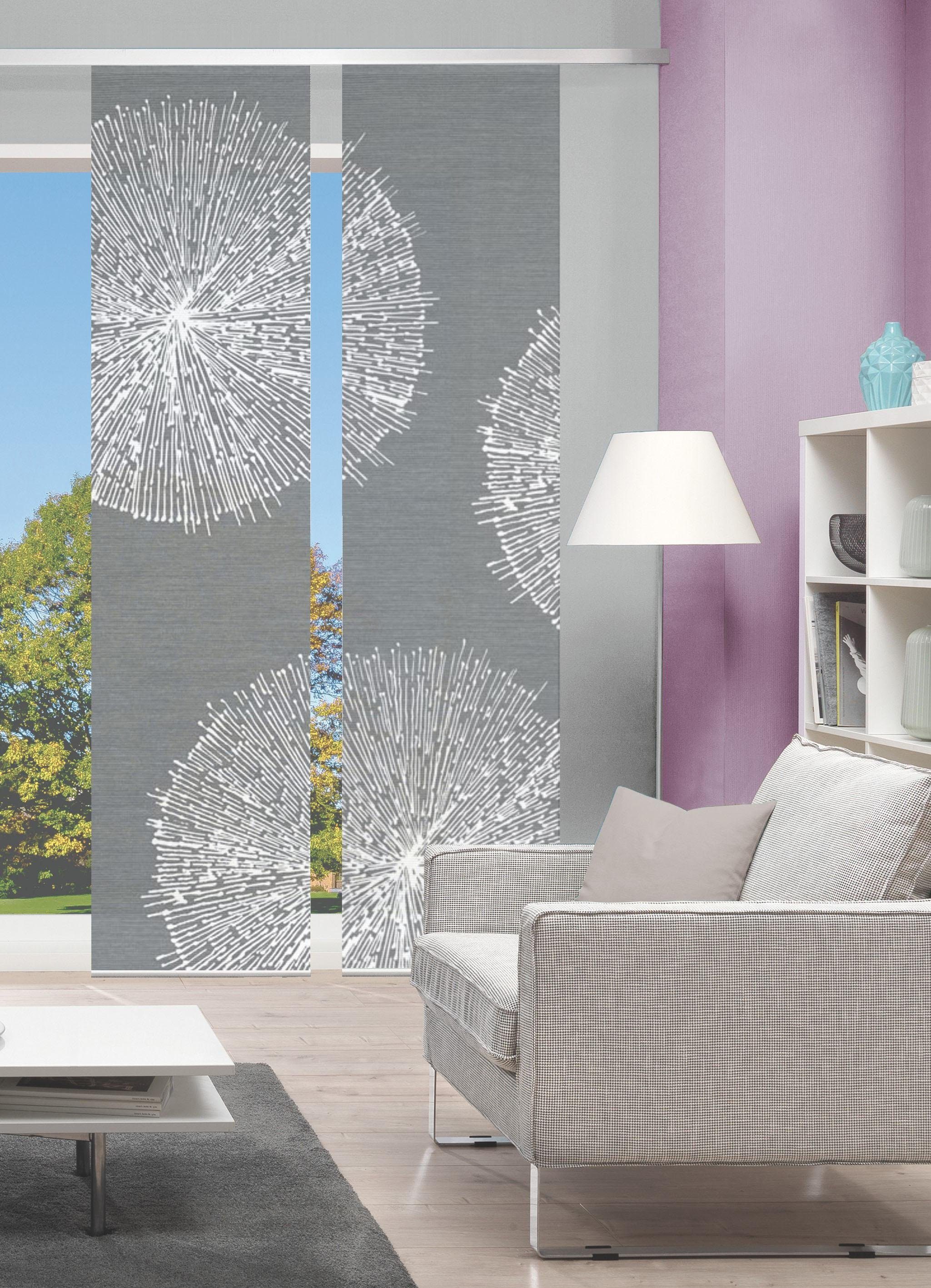 Hinweis Dekoration | Die angegebenen Maße sind die fertig dekorierten Maße. Eine Schiebegardine ist eine schmale, glatt hängende Stoffbahn, die sich sowohl als Sichtschutz als auch zur Raumteilung eignet. Durch die Schiebetechnik sind Schiebegardinen sehr flexibel einsetzbar. |