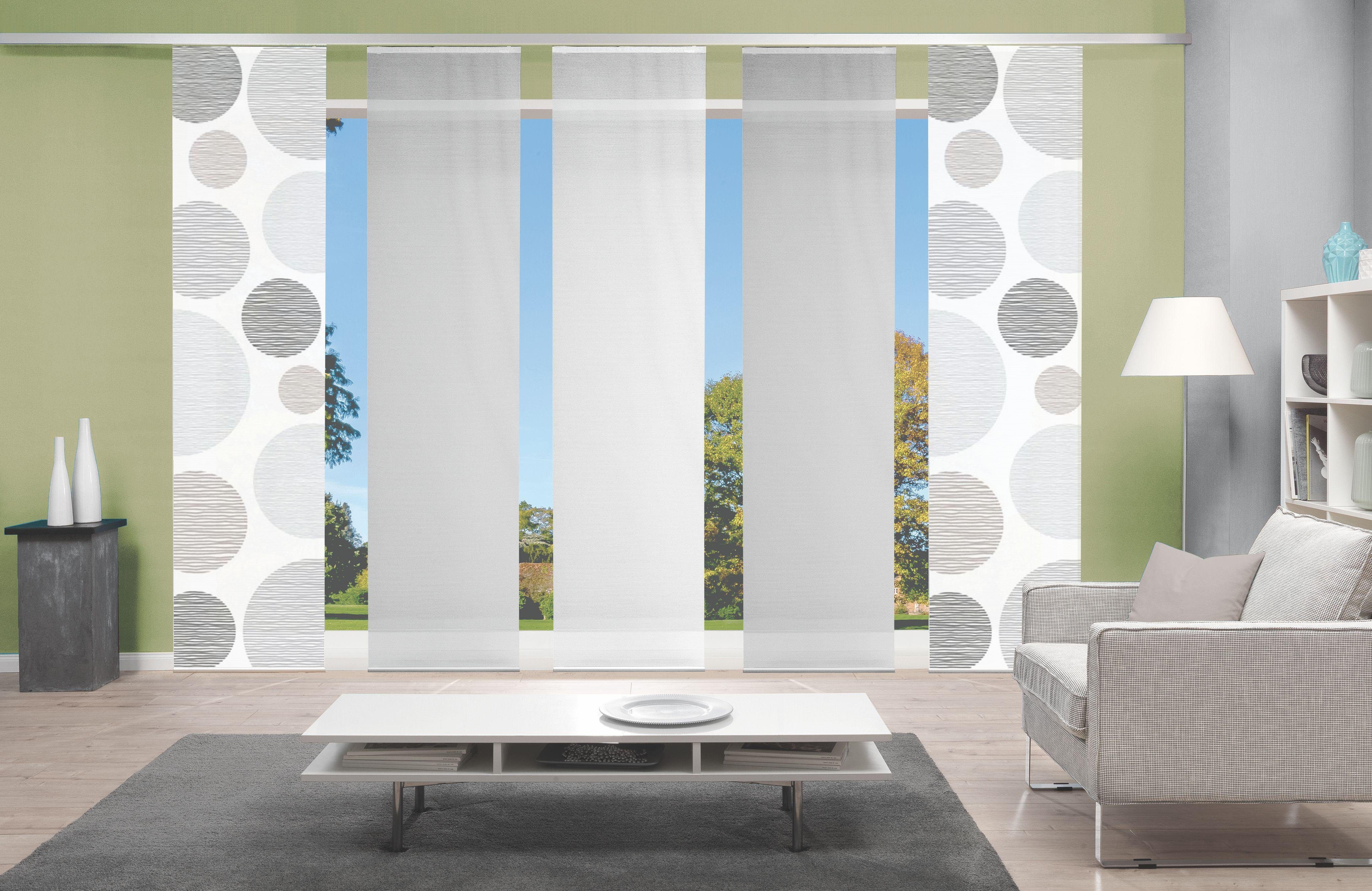 Hinweis Dekoration | Die angegebenen Maße sind die fertig dekorierten Maße. Eine Schiebegardine ist eine schmale, glatt hängende Stoffbahn, die sich sowohl als Sichtschutz als auch zur Raumteilung eignet. Durch die Schiebetechnik sind Schiebegardinen sehr flexibel einsetzbar. |