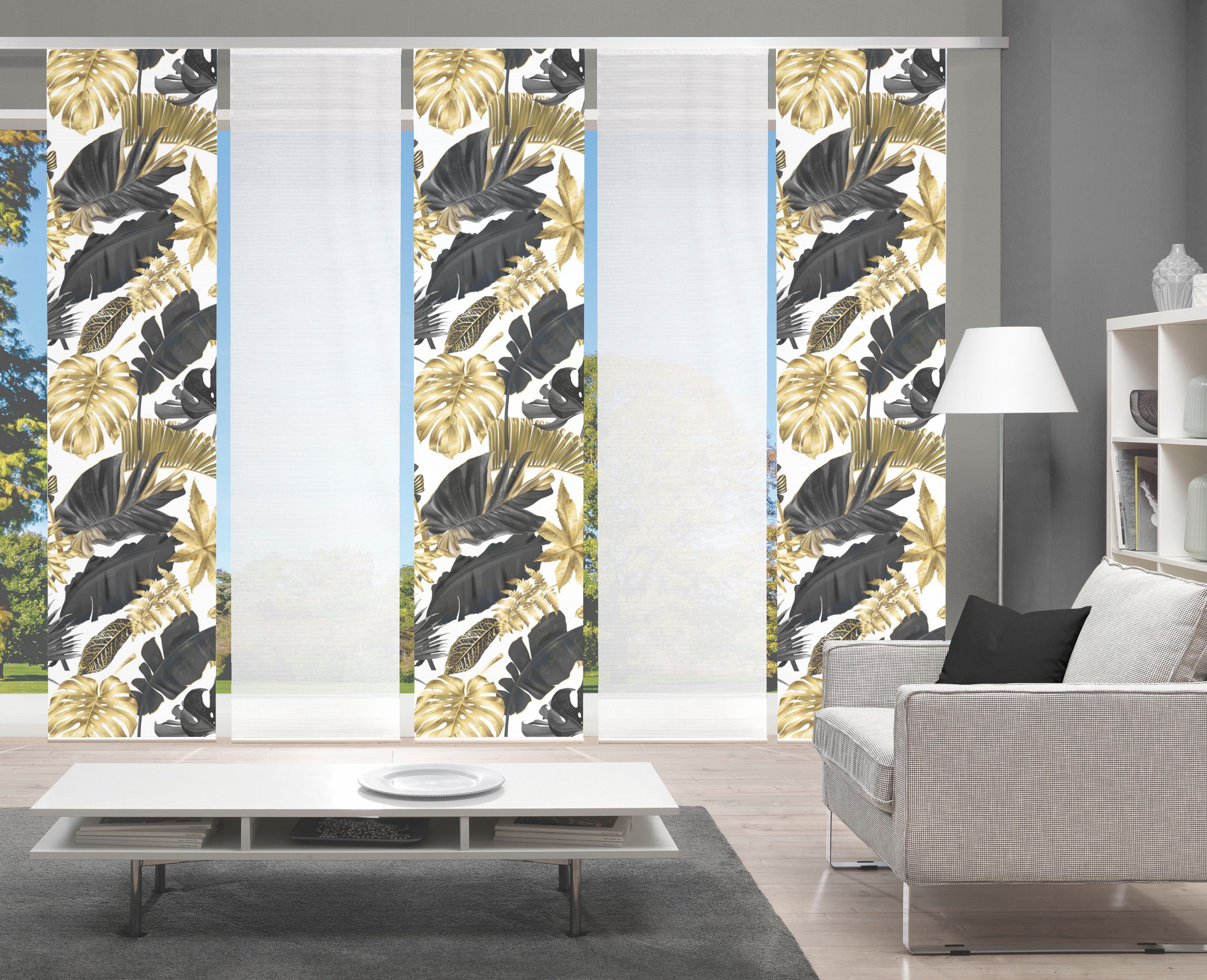 Hinweis Dekoration | Eine Schiebegardine ist eine schmale, glatt hängende Stoffbahn, die sich sowohl als Sichtschutz als auch zur Raumteilung eignet. Durch die Schiebetechnik sind Schiebegardinen sehr flexibel einsetzbar. |
