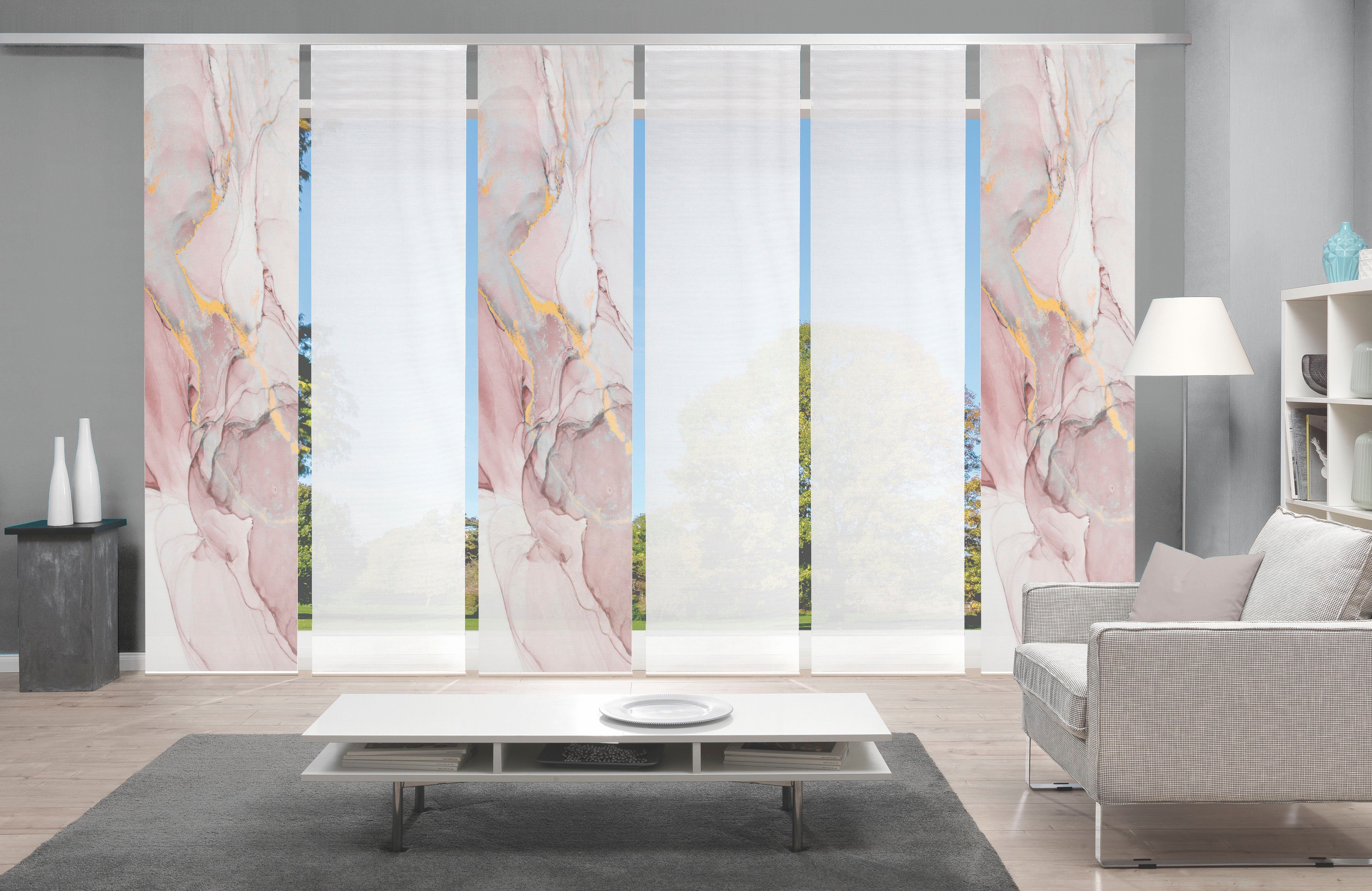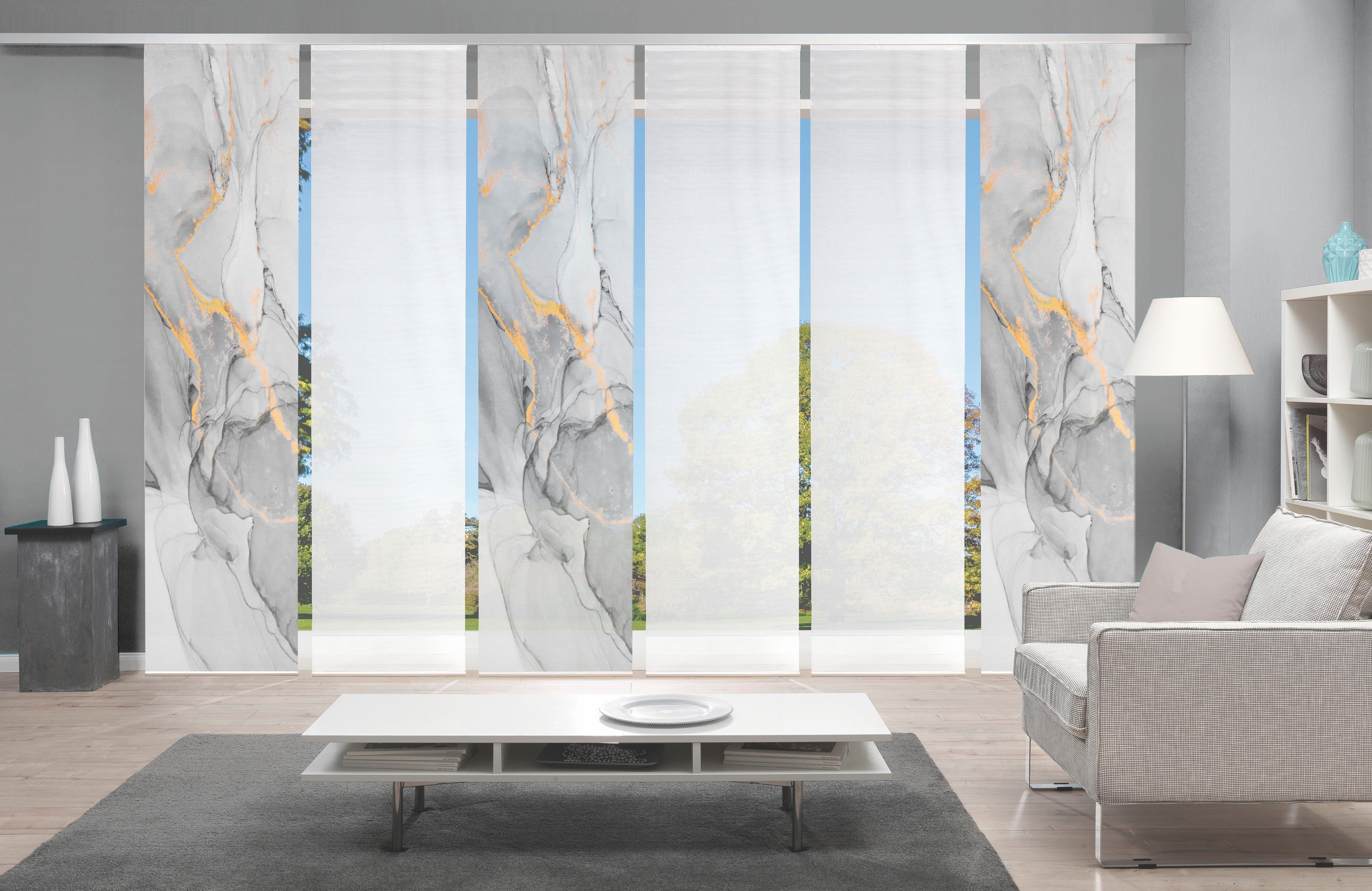 Hinweis Dekoration | Die angegebenen Maße sind die fertig dekorierten Maße. Eine Schiebegardine ist eine schmale, glatt hängende Stoffbahn, die sich sowohl als Sichtschutz als auch zur Raumteilung eignet. Durch die Schiebetechnik sind Schiebegardinen sehr flexibel einsetzbar. |
