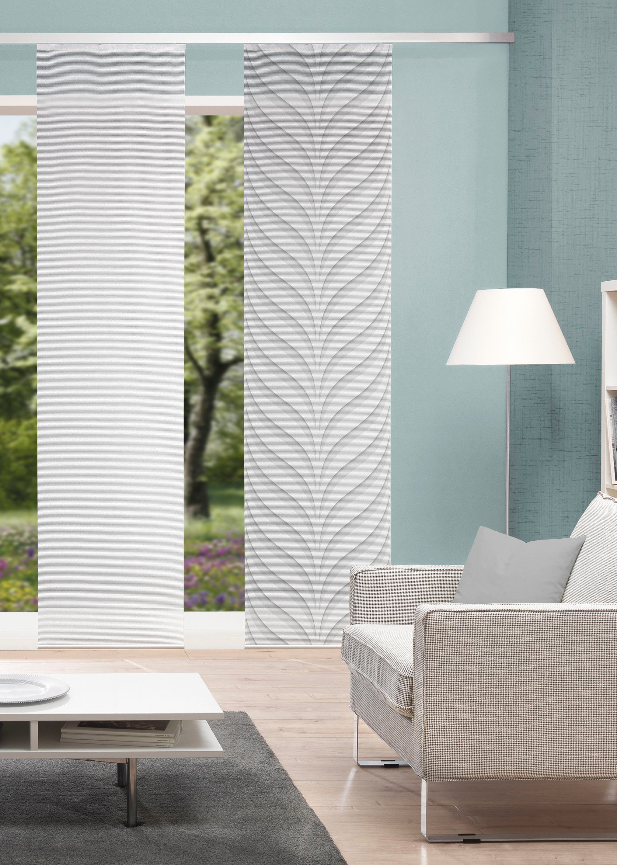 Hinweis Dekoration | Die angegebenen Maße sind die fertig dekorierten Maße. Eine Schiebegardine ist eine schmale, glatt hängende Stoffbahn, die sich sowohl als Sichtschutz als auch zur Raumteilung eignet. Durch die Schiebetechnik sind Schiebegardinen sehr flexibel einsetzbar. |