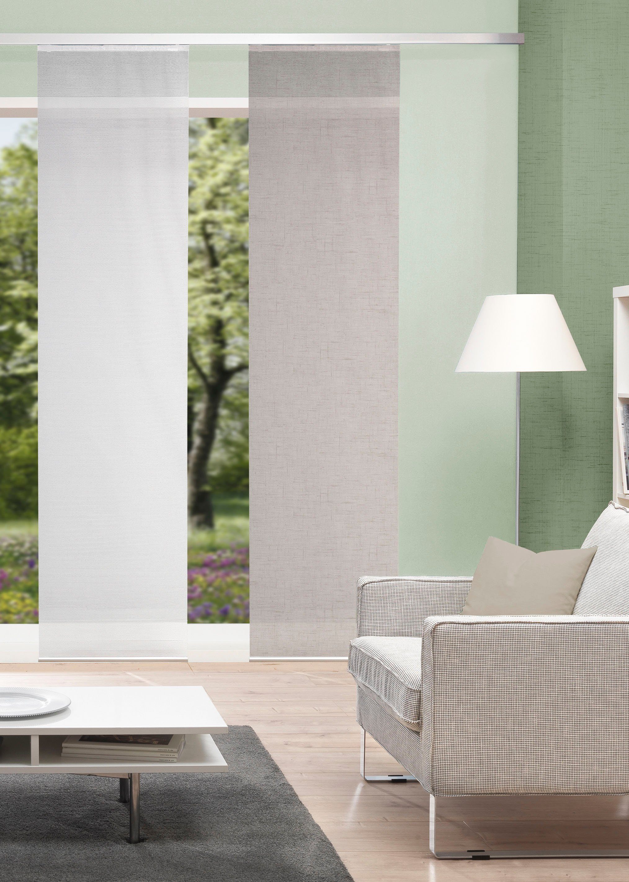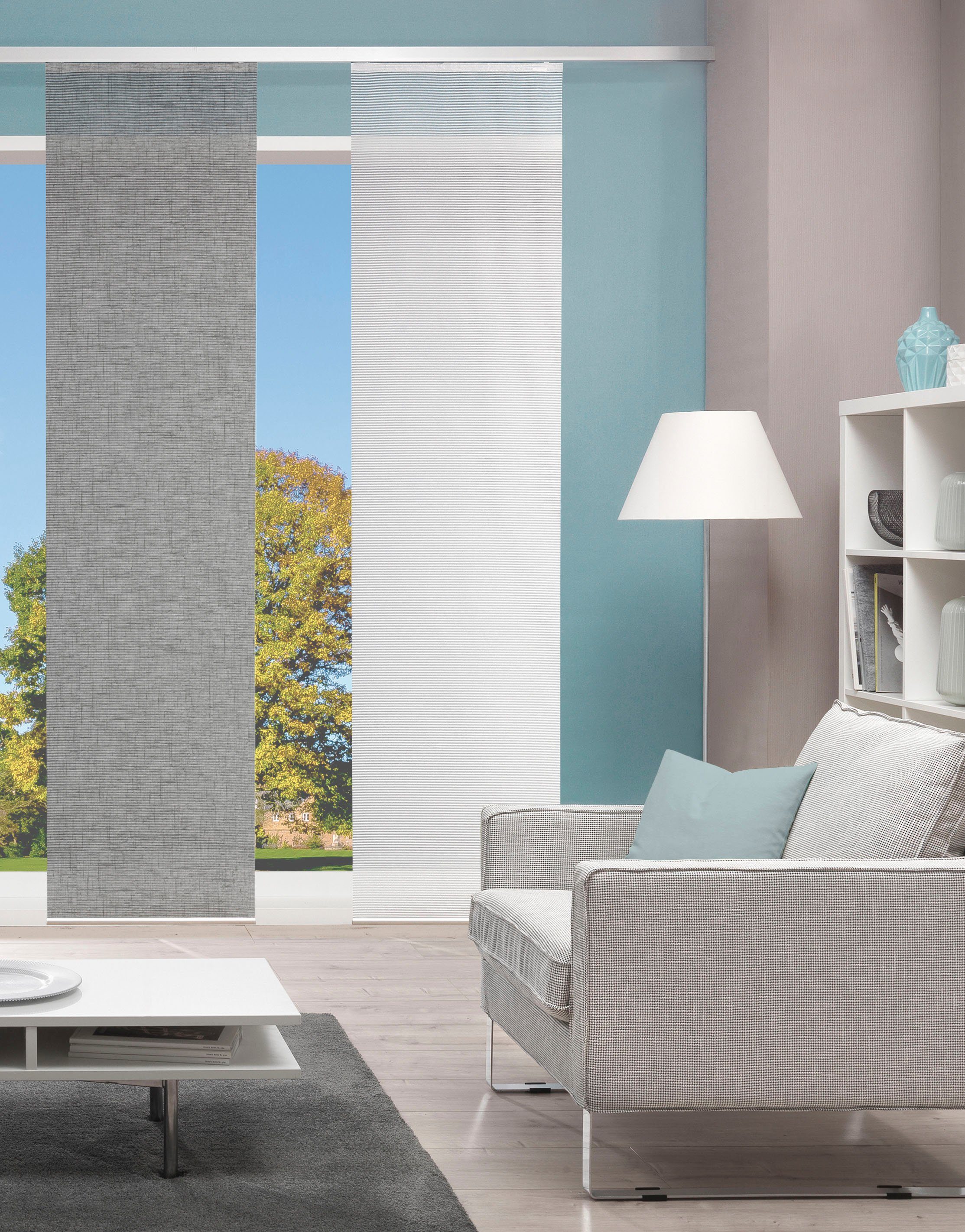 Hinweis Dekoration | Die angegebenen Maße sind die fertig dekorierten Maße. Eine Schiebegardine ist eine schmale, glatt hängende Stoffbahn, die sich sowohl als Sichtschutz als auch zur Raumteilung eignet. Durch die Schiebetechnik sind Schiebegardinen sehr flexibel einsetzbar. |