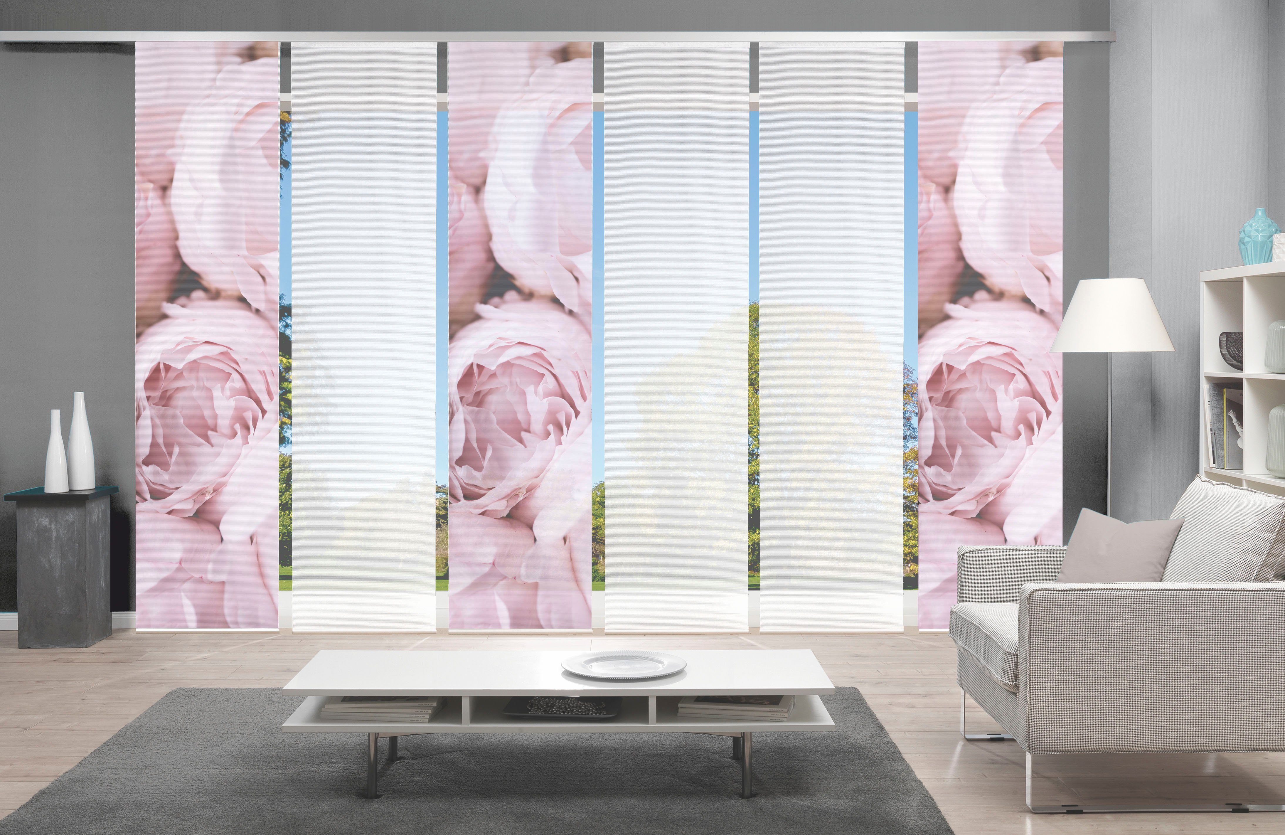 Hinweis Dekoration | Die angegebenen Maße sind die fertig dekorierten Maße. Eine Schiebegardine ist eine schmale, glatt hängende Stoffbahn, die sich sowohl als Sichtschutz als auch zur Raumteilung eignet. Durch die Schiebetechnik sind Schiebegardinen sehr flexibel einsetzbar. |