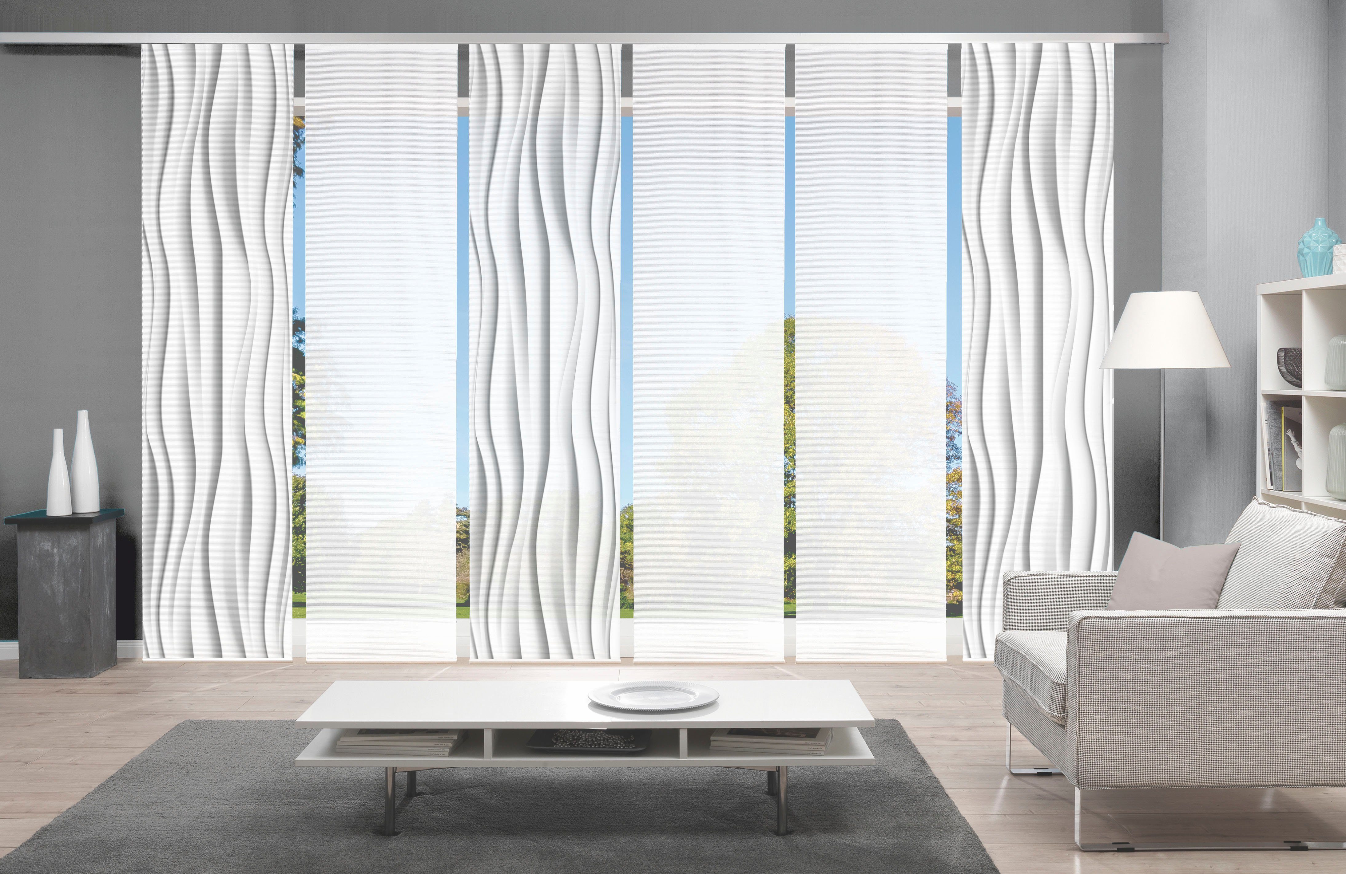 Hinweis Dekoration | Die angegebenen Maße sind die fertig dekorierten Maße. Eine Schiebegardine ist eine schmale, glatt hängende Stoffbahn, die sich sowohl als Sichtschutz als auch zur Raumteilung eignet. Durch die Schiebetechnik sind Schiebegardinen sehr flexibel einsetzbar. |