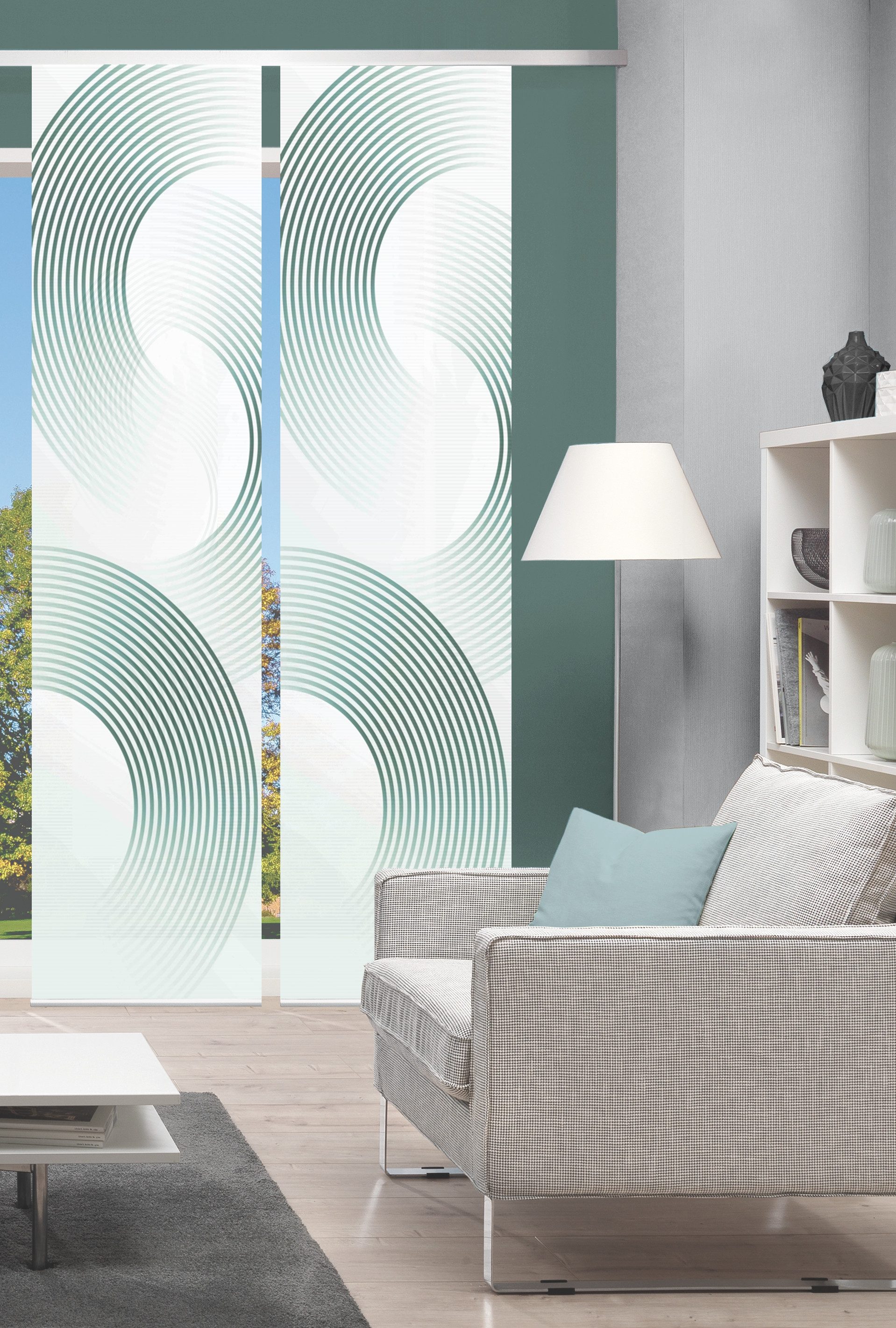 Hinweis Dekoration | Die angegebenen Maße sind die fertig dekorierten Maße. Eine Schiebegardine ist eine schmale, glatt hängende Stoffbahn, die sich sowohl als Sichtschutz als auch zur Raumteilung eignet. Durch die Schiebetechnik sind Schiebegardinen sehr flexibel einsetzbar. |
