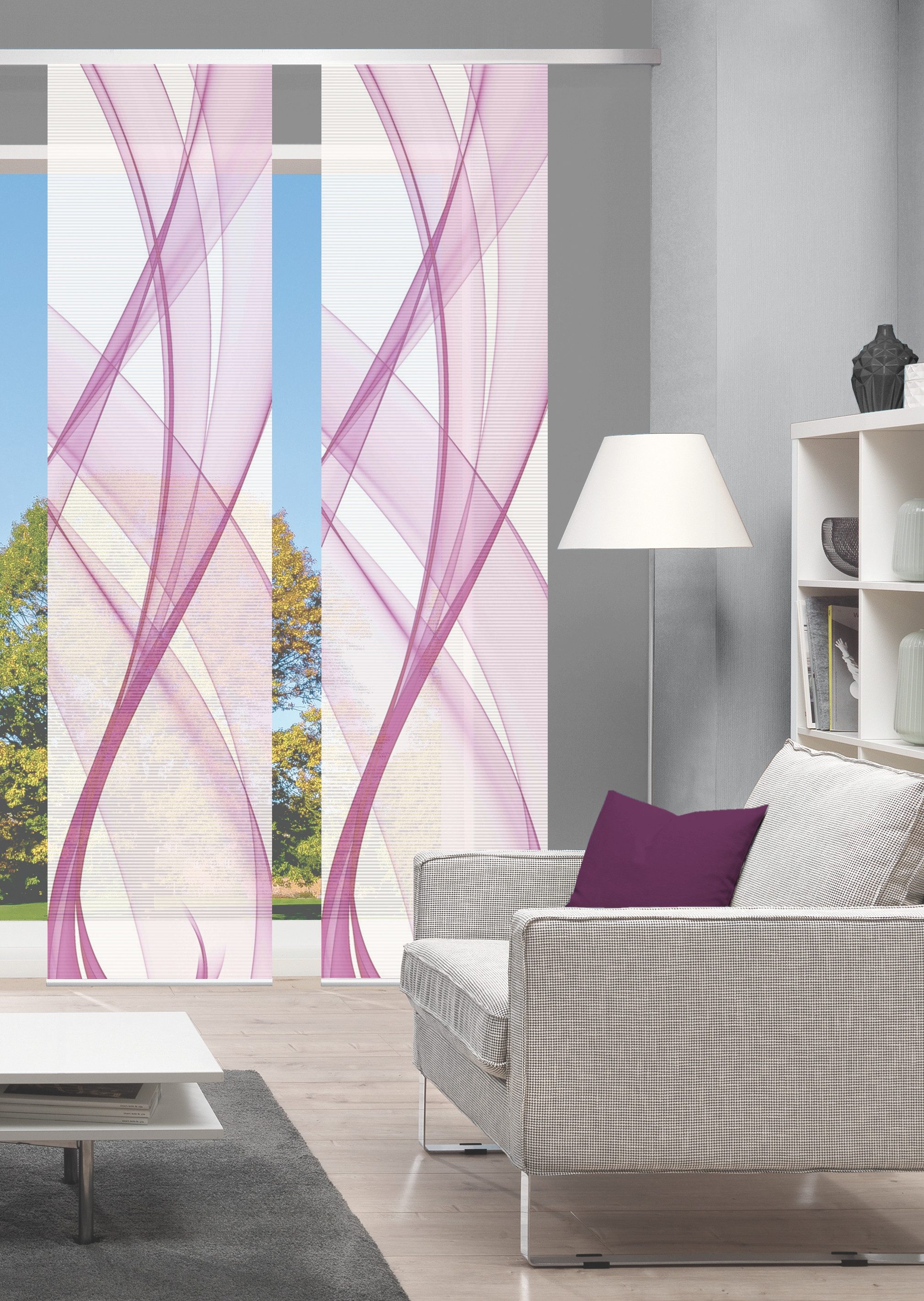 Hinweis Dekoration | Die angegebenen Maße sind die fertig dekorierten Maße. Eine Schiebegardine ist eine schmale, glatt hängende Stoffbahn, die sich sowohl als Sichtschutz als auch zur Raumteilung eignet. Durch die Schiebetechnik sind Schiebegardinen sehr flexibel einsetzbar. |
