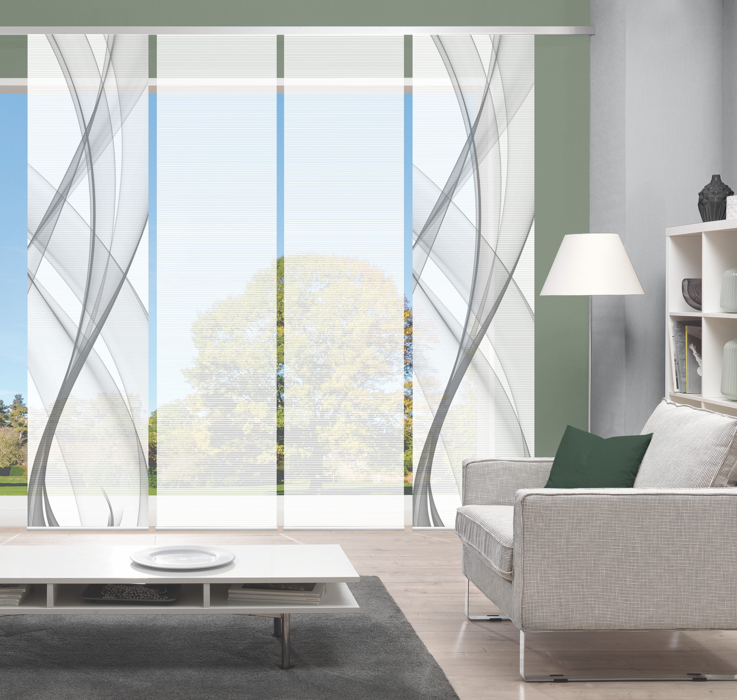 Hinweis Dekoration | Die angegebenen Maße sind die fertig dekorierten Maße. Eine Schiebegardine ist eine schmale, glatt hängende Stoffbahn, die sich sowohl als Sichtschutz als auch zur Raumteilung eignet. Durch die Schiebetechnik sind Schiebegardinen sehr flexibel einsetzbar. |