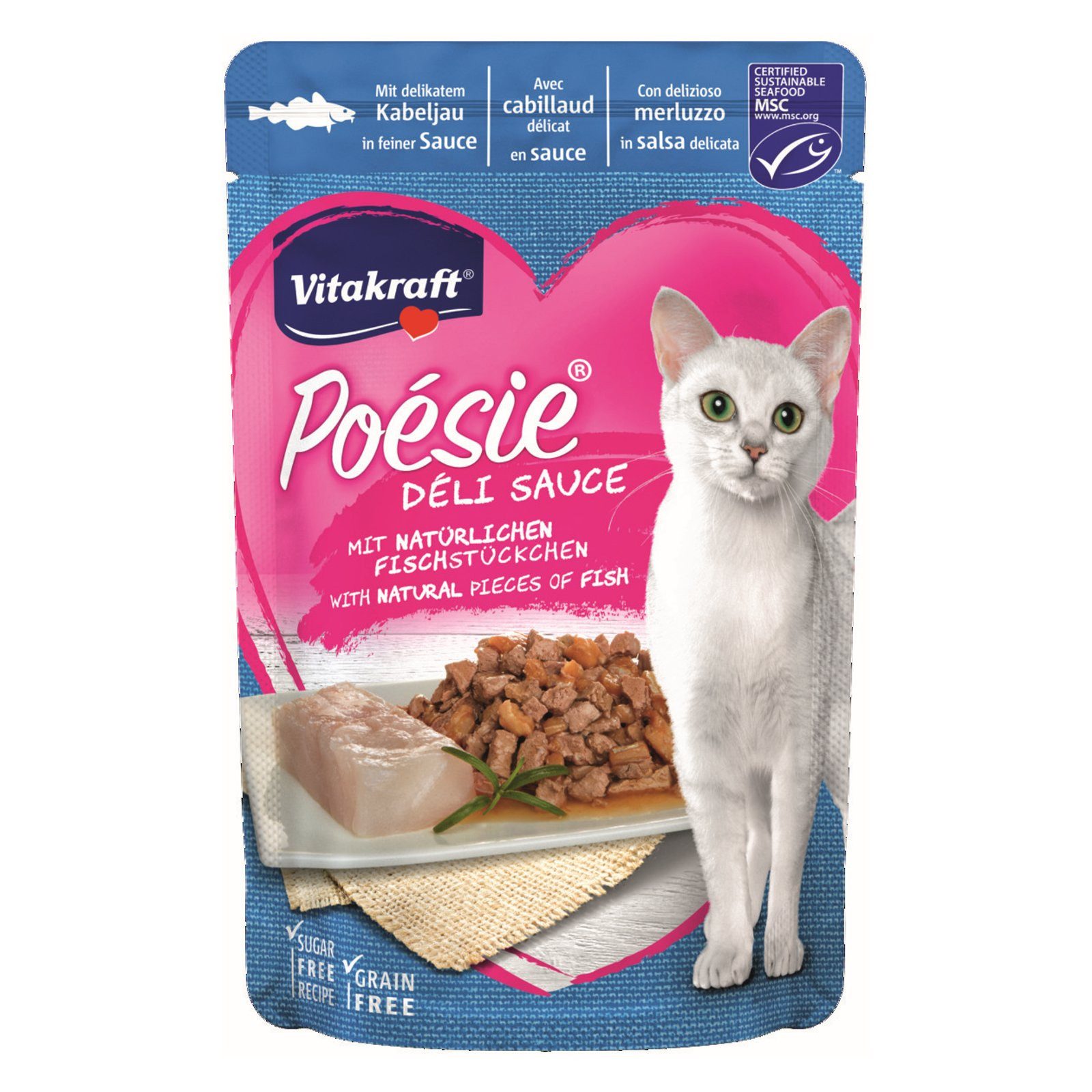Diese leckeren Häppchen mit delikatem Kabeljau in viel feiner Sauce sind ein wahrer Gaumenschmaus für Ihre Katze und sind unwiderstehlich im Geschmack. Beutel für Beutel enthält Poesie Deli Sauce natürliche, hochwertige Fischstückchen für puren Genuss, den Ihr Stubentiger lieben wird. Beste Zutaten garantieren höchste Qualität und sind ernährungsphysiologisch perfekt auf die Bedürfnisse der Katze abgestimmt. Auch Ihr Liebling wird von dieser Delikatesse nicht genug bekommen können.