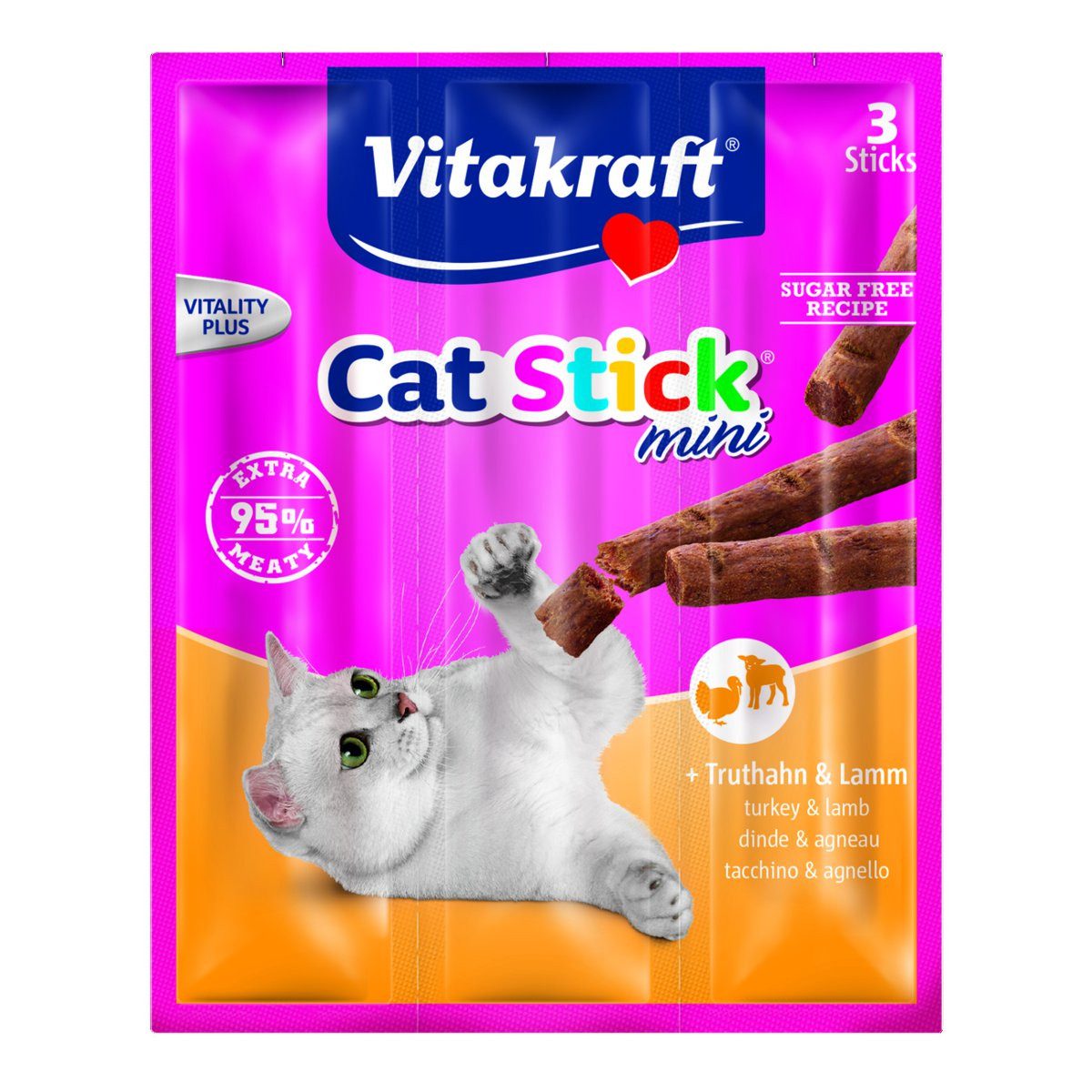 Vitakraft Katzensnack Cat-Stick mini Truthahn & Lamm, 3 x 6g