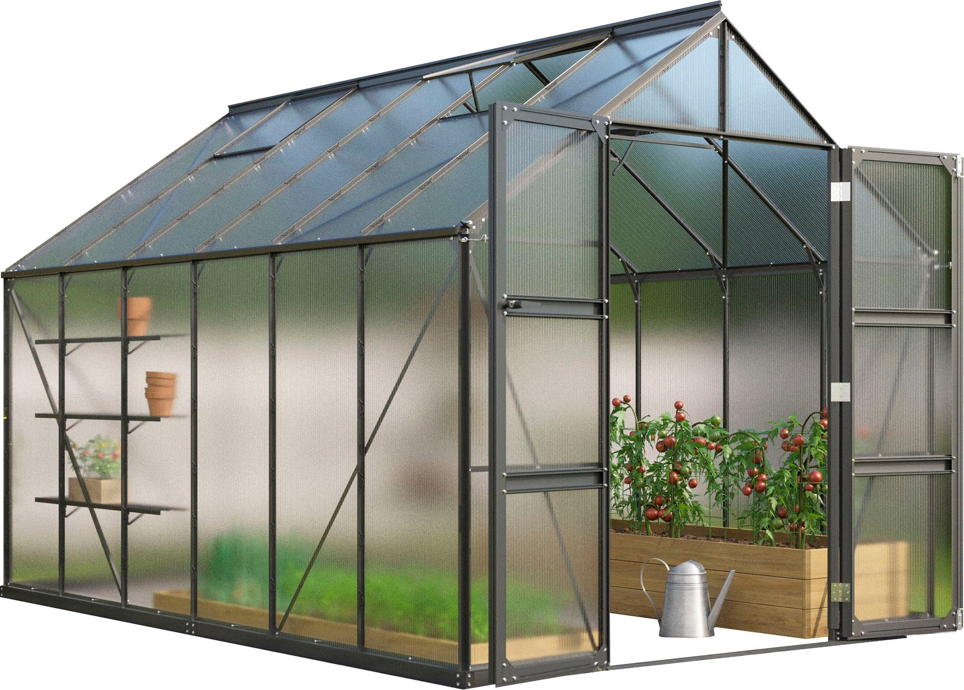 Weite und fast zwei Meter hohe Doppelflügeltüren sowie eine bodentiefe Türschwelle laden Hobbygärtner und Gäste geradezu ein, in diese großzügige Werkstätte mit dem Plus an Komfort einzutreten. Ob mit kristallklarem Sicherheitsglas (ESG) oder UV-stabilen Hohlkammerplatten - erhältlich in 4mm und 6 mm Stärke - verglast: Die Scheiben bzw. Platten erstrecken sich großflächig über die Seitenfelder. Welche Verglasung gewählt wird, entscheiden die Gärtner selbst: Komplett mit dem 3mm starken, bruchstabilen Sicherheitsglas ausgestattet, fügt sich ihr Domus elegant und wertig in ihren Garten – und bietet den Pflanzen viel Sonne. Das ist gut fürs Wachstum, erfordert aber je nach Sonneneinstrahlung auch den Einsatz von Schattierhilfen, um den Brennglaseffekt zu vermeiden. Wer sich darum nicht kümmern möchte, entscheidet sich für eine Варианты mit Hohlkammerplatten. Diese verbessern zudem die Isoliereigenschaften, sodass z.B. am Anfang und zum Ende der Gartensaison effizienter zugeheizt werden kann. Egal, ob in 4mm oder in 6 mm Stärke: Bei den Hohlkammerplatten können sich Kunden von Vitavia auf qualitativ hochwertiges Material verlassen: Die Polycarbonatplatten aus deutscher Herstellung sind aufgrund ihrer UV-Beschichtung haltbarer als herkömmliche Platten, und sind an den Längsseite geschlossen. So kann weniger Feuchtigkeit oder Schmutz eindringen, und die Kontaktpunkte zum Gewächshausprofil sind stabiler, weil am Rand keine Hohlkammern offen stehen, die leicht eingedrückt werden könnten. Das Domus ist in vier verschiedenen Größen mit Grundflächen von 6,7 bis 11,5 Quadratmetern und in drei verschiedenen Farben erhältlich. Zwei Dachfenster, Regenrinne und der Stahlfundamentrahmen gehören zur Serienausstattung.