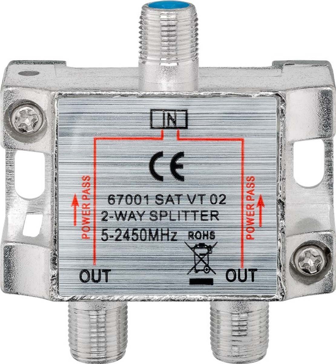 VIVANCO hochwertiger SAT Universal Antennenverteiler kompatibel mit F Buchse, 2 fach, vollgeschirmt, rückkanaltauglich, 2400 MHz, DC Durchgang