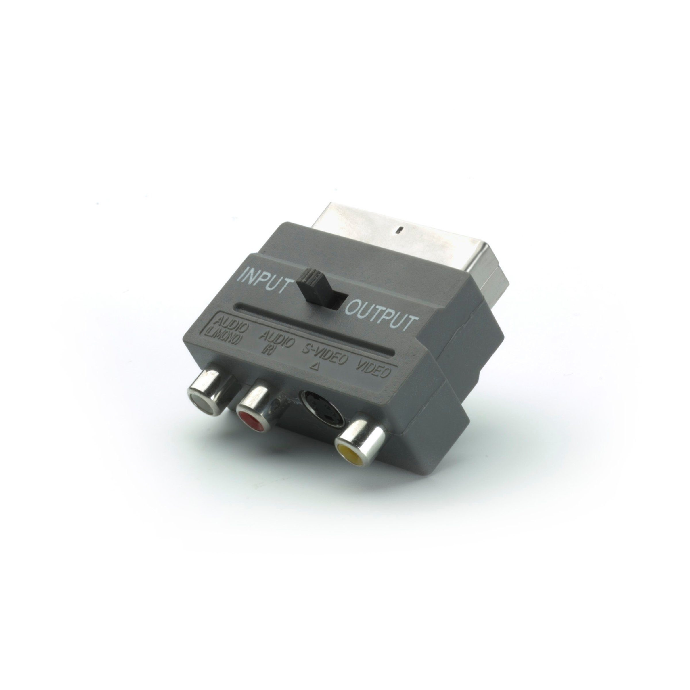 VIVANCO hochwertiger Mini DIN Scart Adapter kompatibel mit SVHS, 3x Cinch Buchsen zu Scart Stecker, umschaltbare Signalrichtung