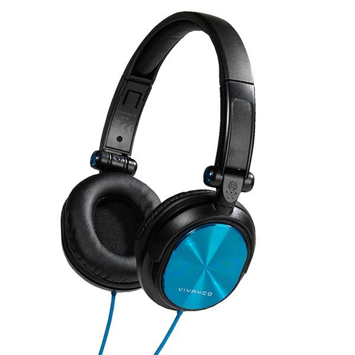 Gepolsterter Kopfbügel Vivanco On Ear Kopfhörer DJ 30, in Metall Blau Vollständig faltbarer DJ Kopfhörer Ohrumschließendes Design 1,8 m Kabellänge Metall Design Extra weiche Lederohrpolster Satter Sound und knackige Bässe Gepolsterter Kopfbügel