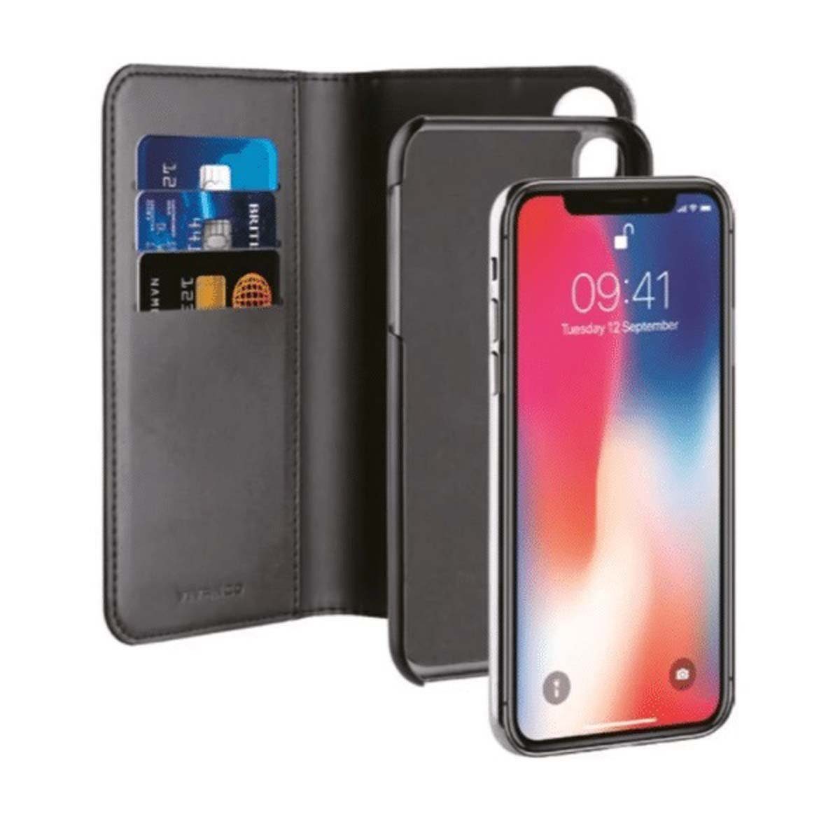VIVANCO Smartphone Buchklapptasche kompatibel mit iPhone Xr, Mit Kartenfach, Standfunktion, Integrierter Magnetverschluss, Voller Zugang zu allen Anschlüssen und Funktionen