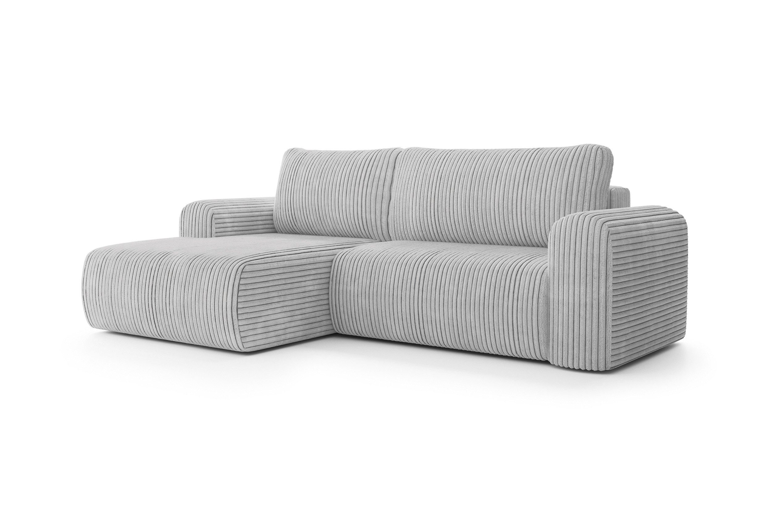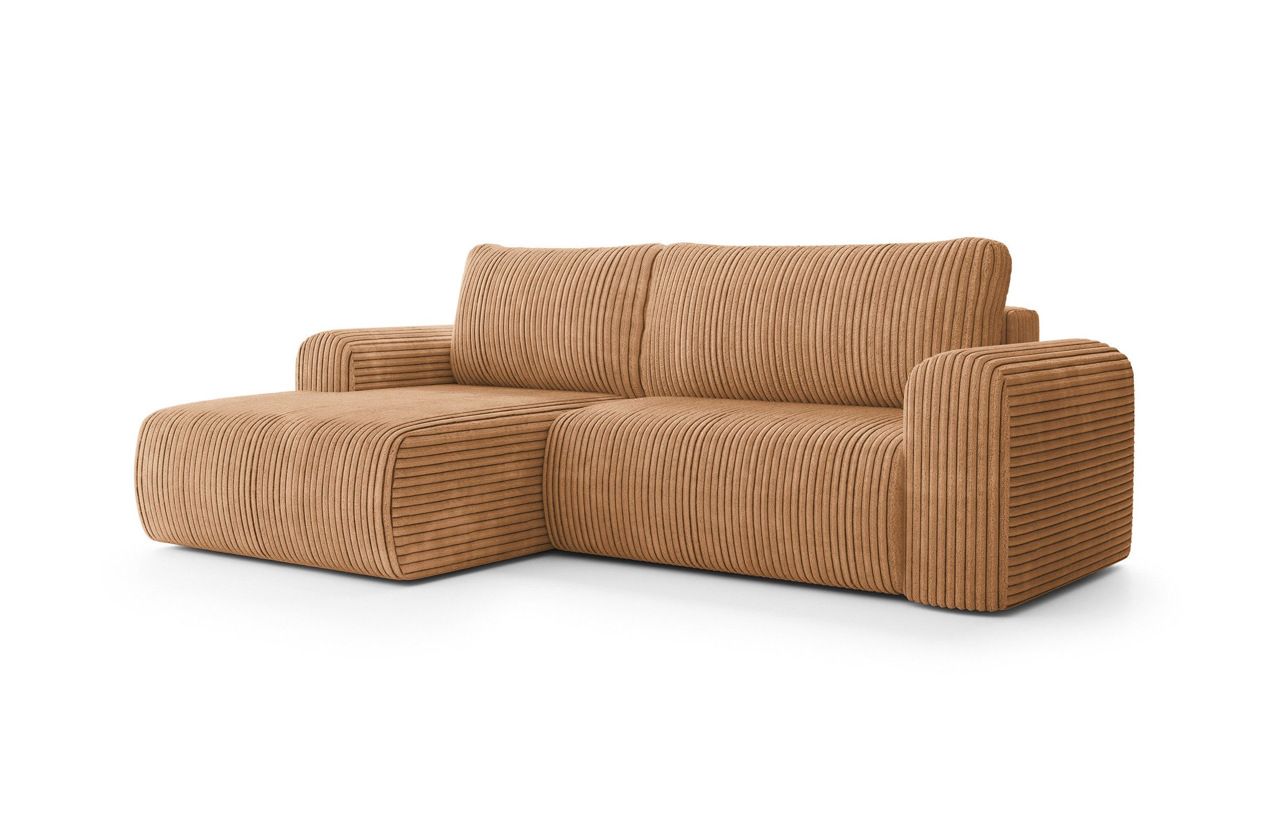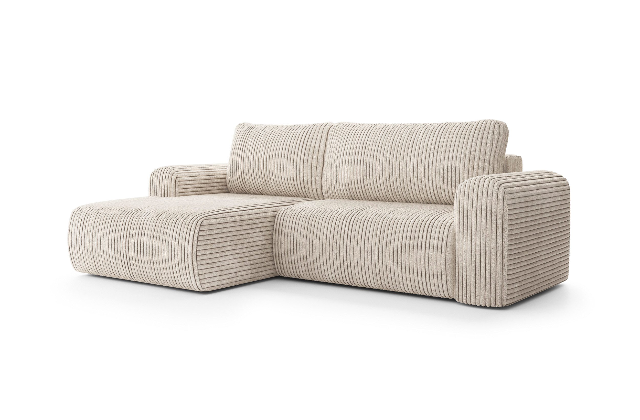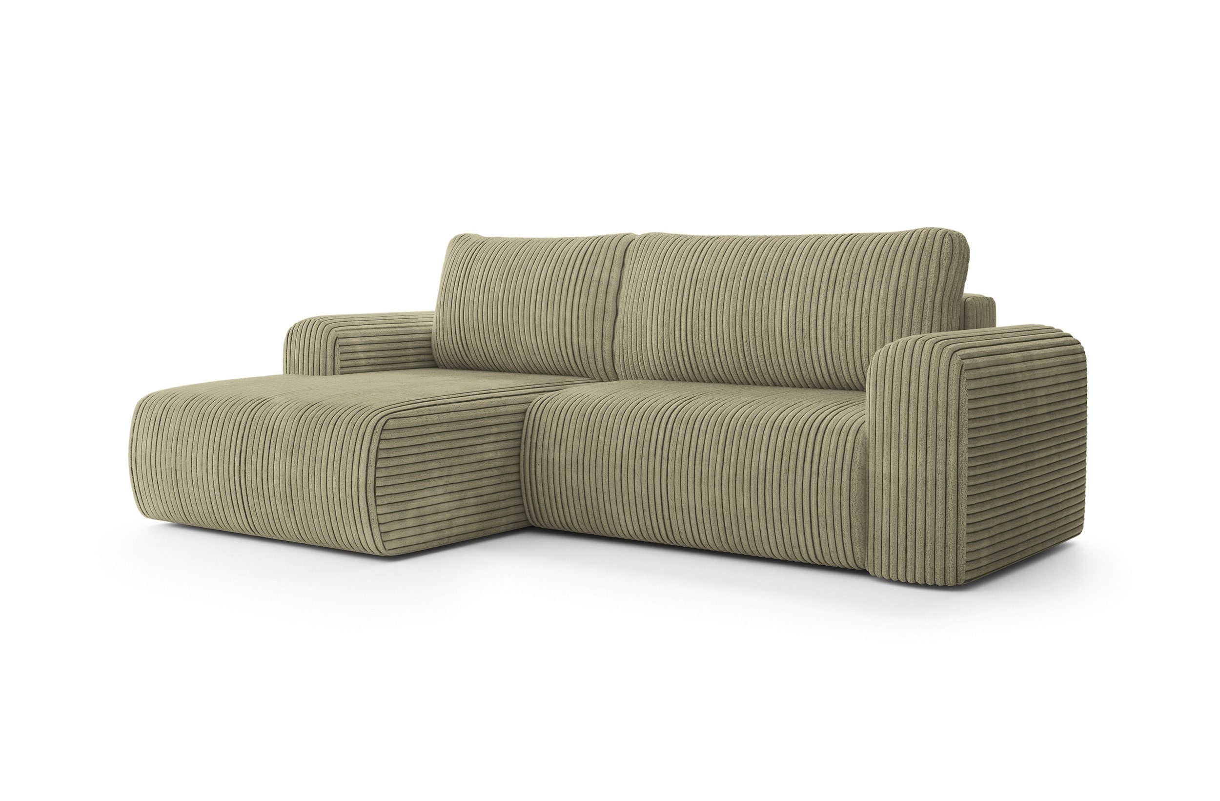 Der Rücken ist durchgehend mit Cordstoff bezogen – das Sofa kann also auch sichtbar – z.B. frei im Raum verwendet werden.