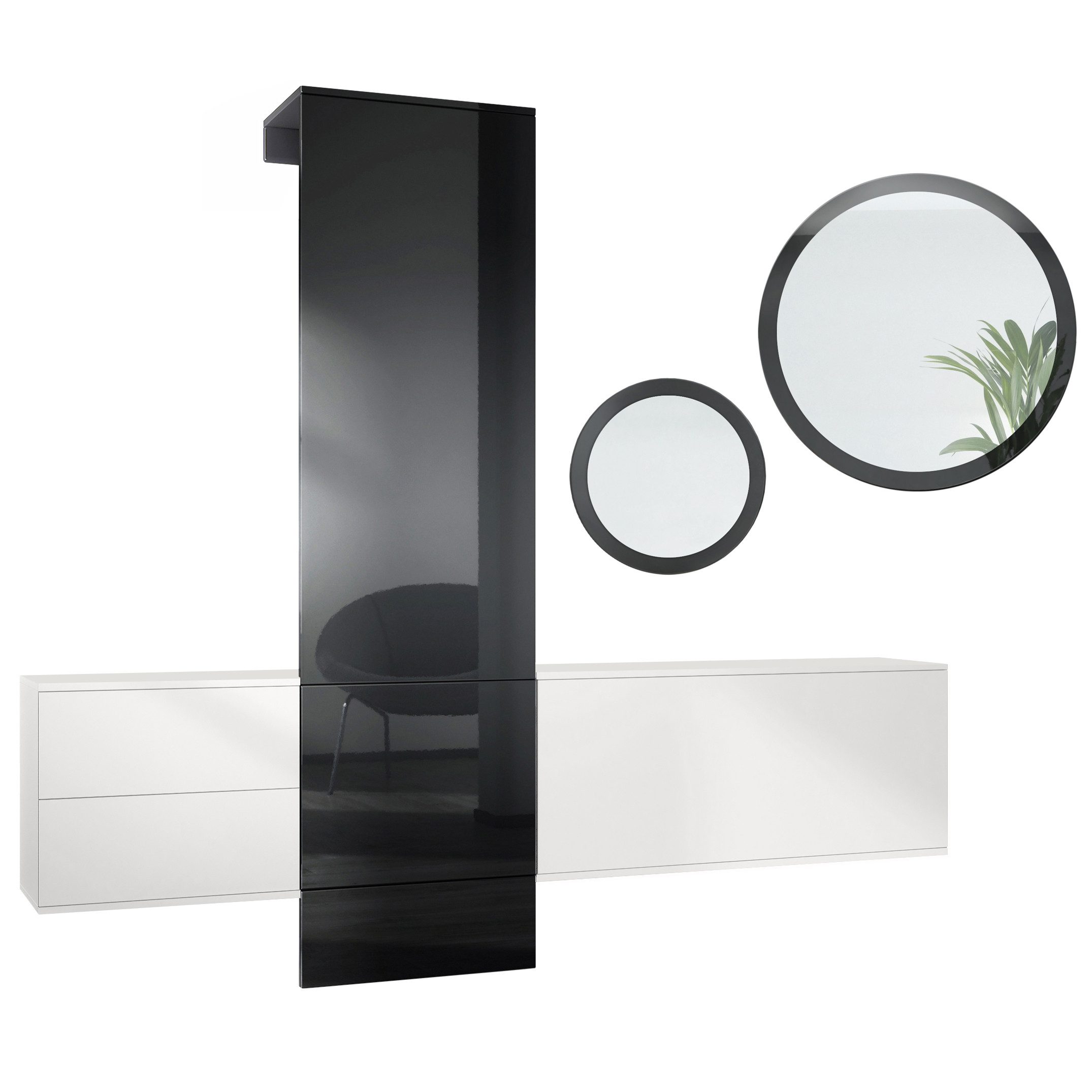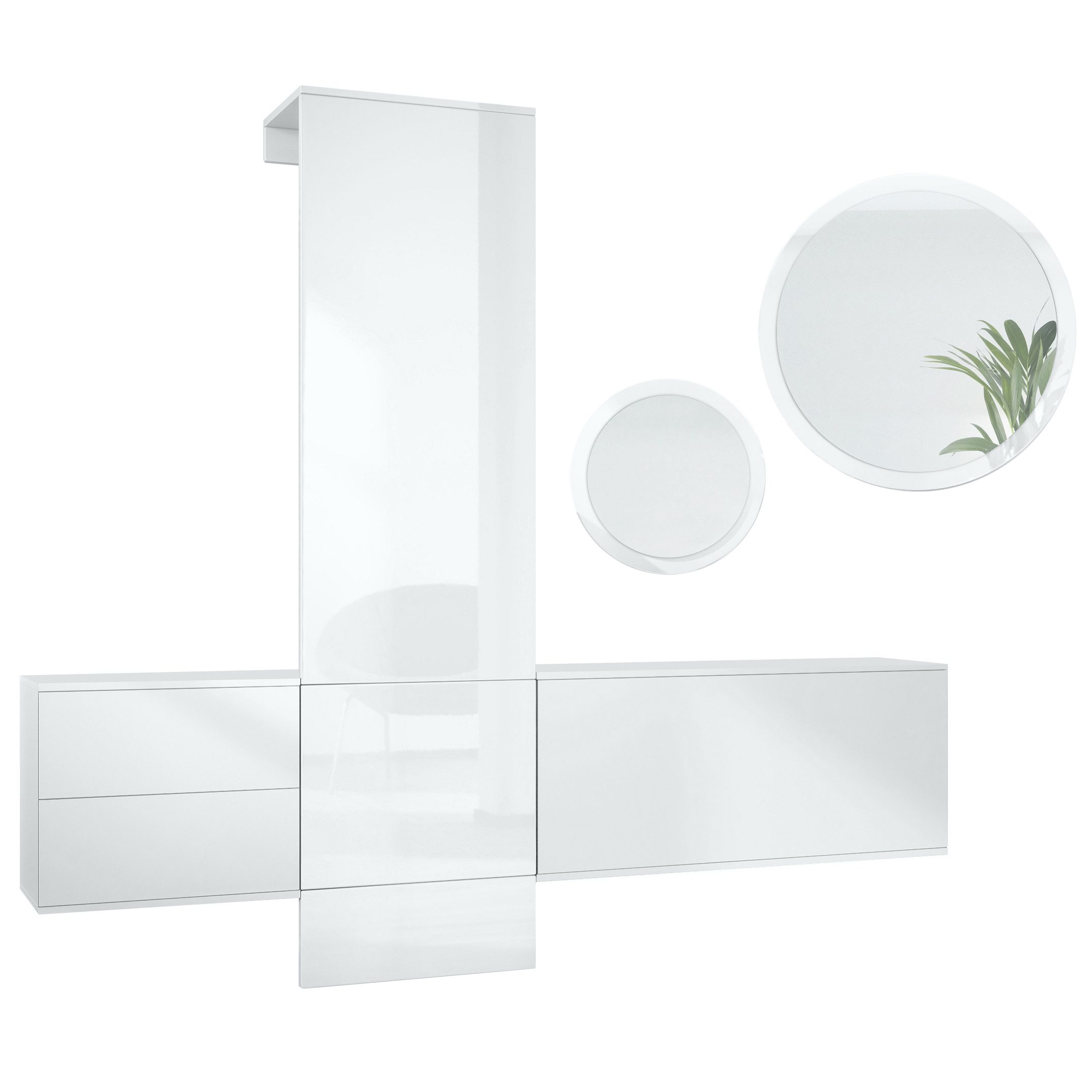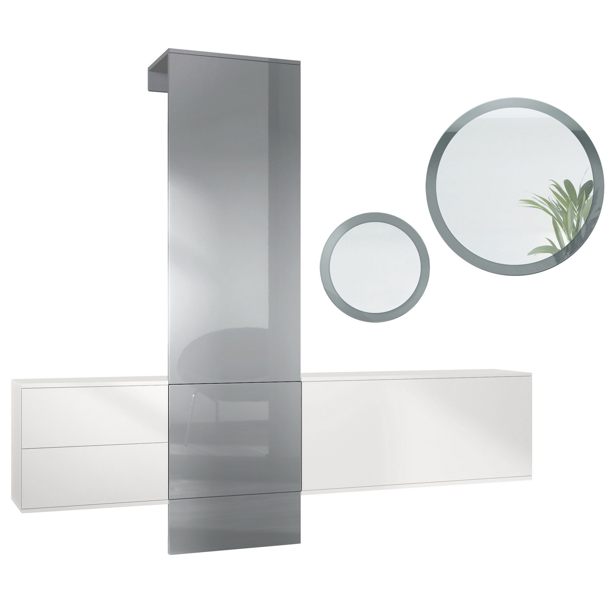 Das Dual Vista Garderoben-Set ist eine elegante, platzsparende Lösung für stilvollen Stauraum im Eingangsbereich. Es umfasst ein Garderobenpaneel, einen Schubkastenschrank, einen Klappenschrank und zwei Wandspiegel. Die flexiblen Elemente lassen sich individuell anordnen, um optimal auf Ihre Bedürfnisse einzugehen.