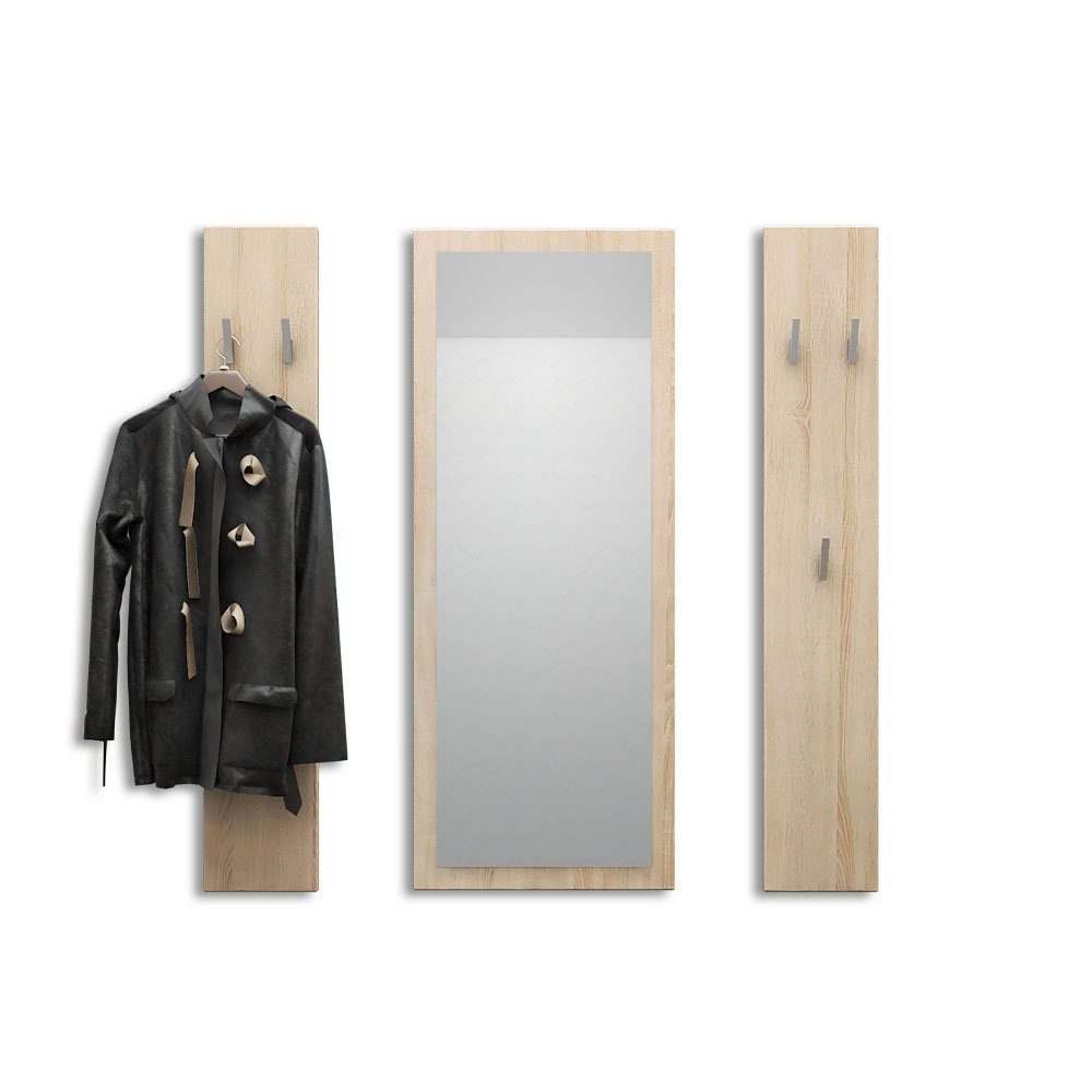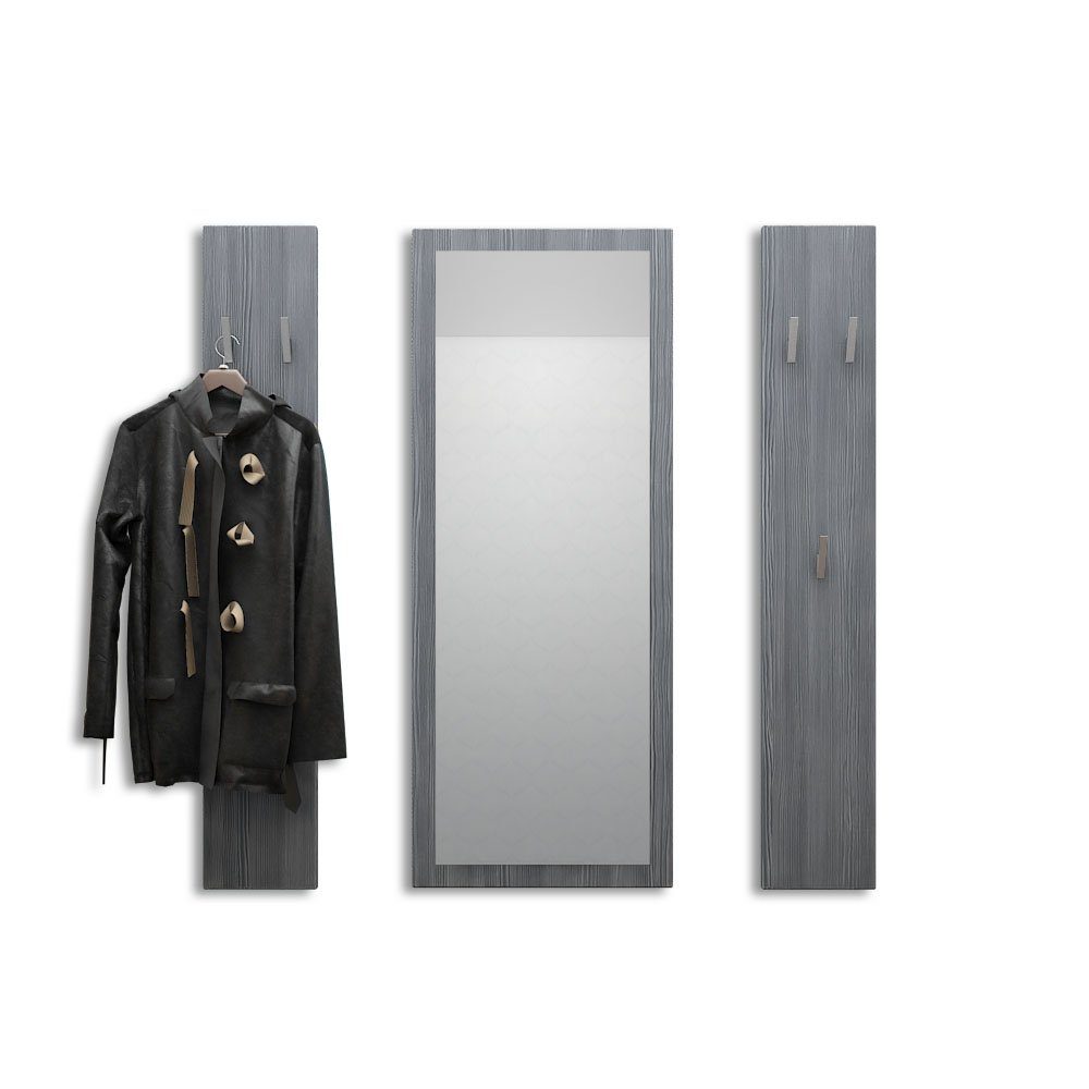 Die Elemente des Garderobensets lassen sich mühelos an der Wand befestigen, wobei der Spiegel sowohl horizontal als auch vertikal montiert werden kann. Diese flexible Anpassungsmöglichkeit ermöglicht es Ihnen, den Raum optimal zu gestalten. Die Garderobenpaneele sind mit einer praktischen Kombination aus 1 Hut- und 2 Mantelhaken ausgestattet, die in verschiedenen Höhenpositionen angebracht sind. Dies bietet nicht nur Erwachsenen, sondern auch Kindern eine bequeme und leicht zugängliche Lösung, um Jacken und Mäntel eigenständig aufzuhängen.
