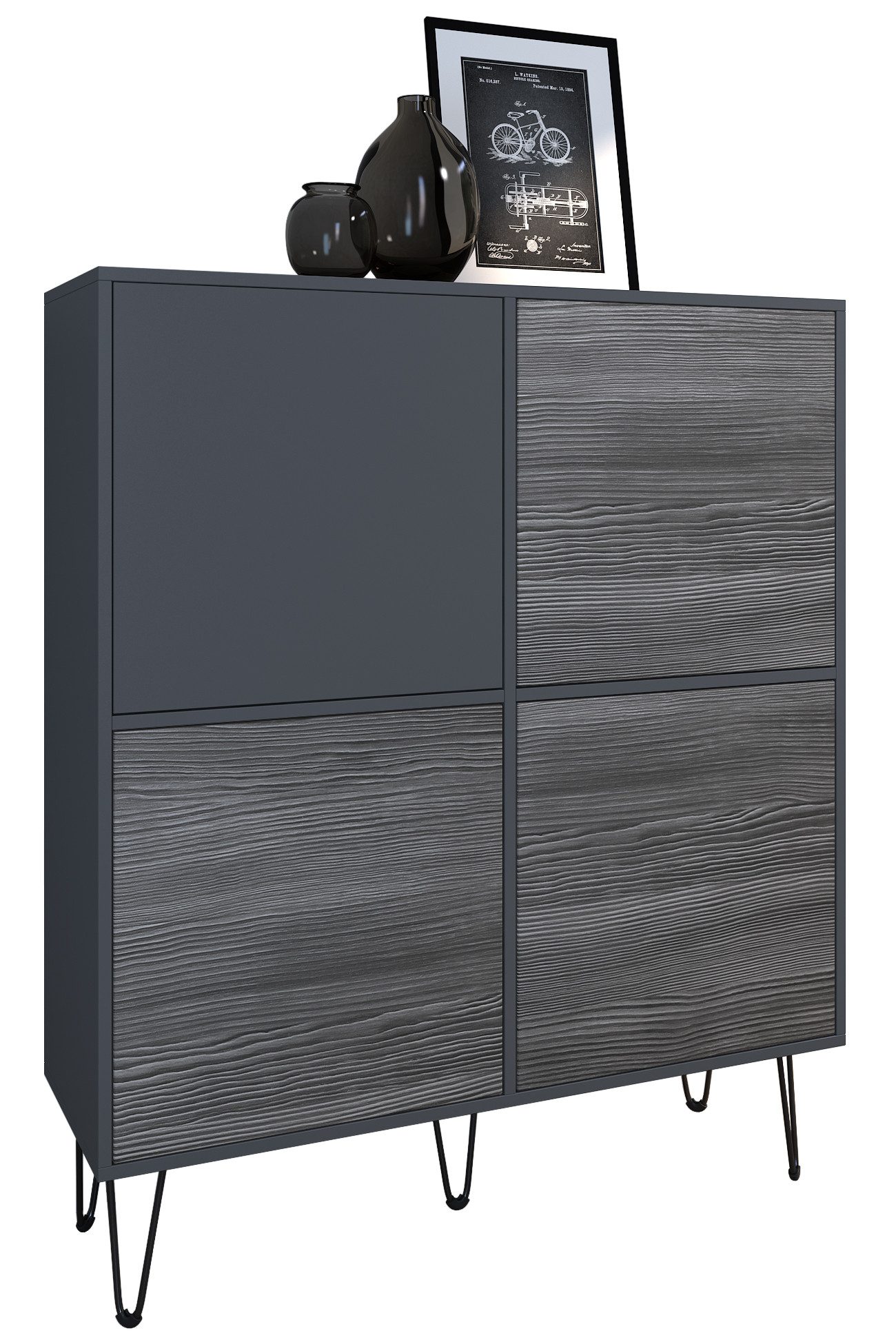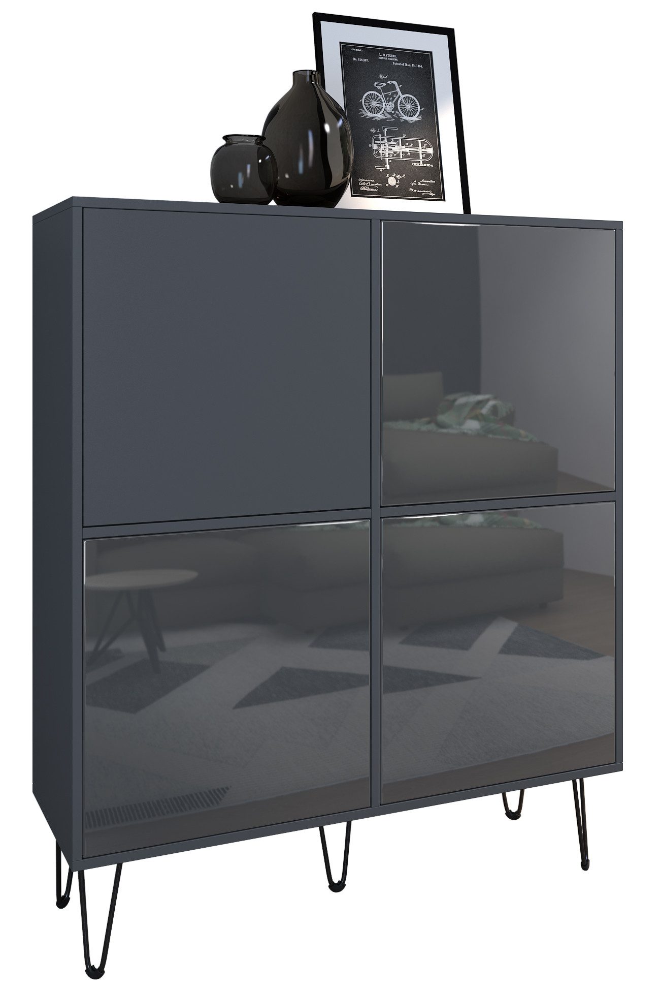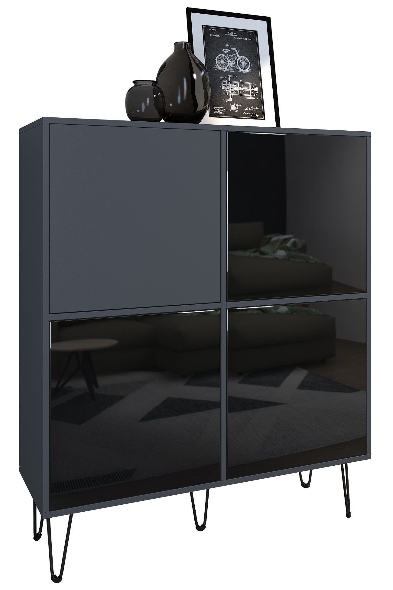 Das Havana Highboard V2 vereint minimalistisches Design mit cleverem Stauraum. Der Korpus in Anthrazit matt sorgt für eine zeitlose Optik und elegante Ausstrahlung. Schwarze Füße setzen stilvolle Akzente und geben Stabilität. Die Fronten sind wählbar in verschiedenen Вариантыn – ideal für Wohnzimmer, Esszimmer, Schlafzimmer oder Flur.