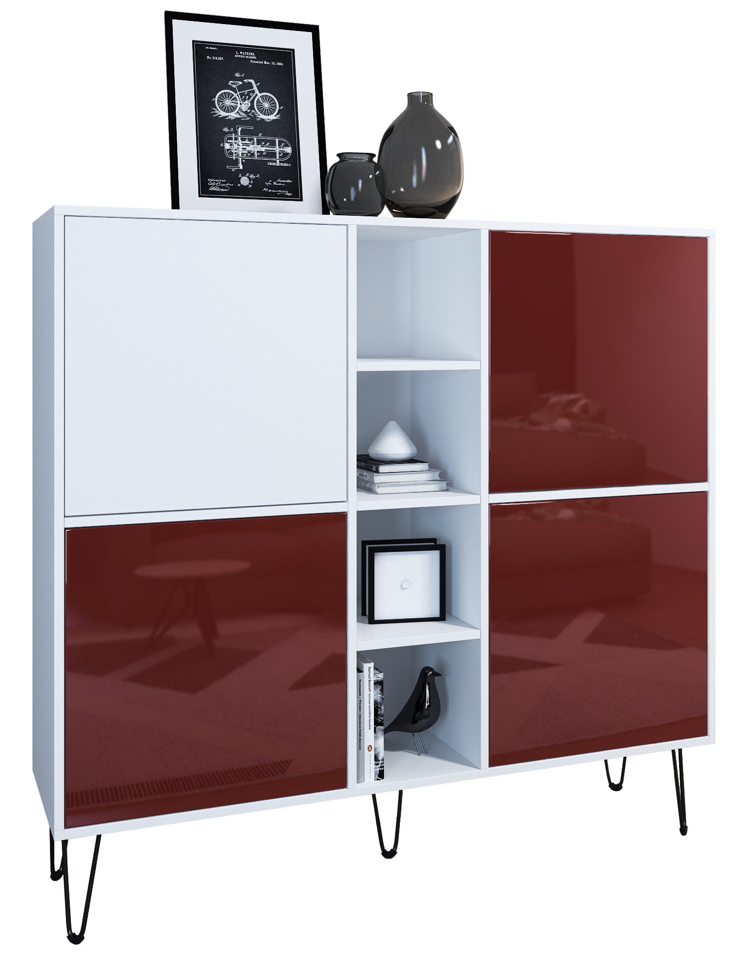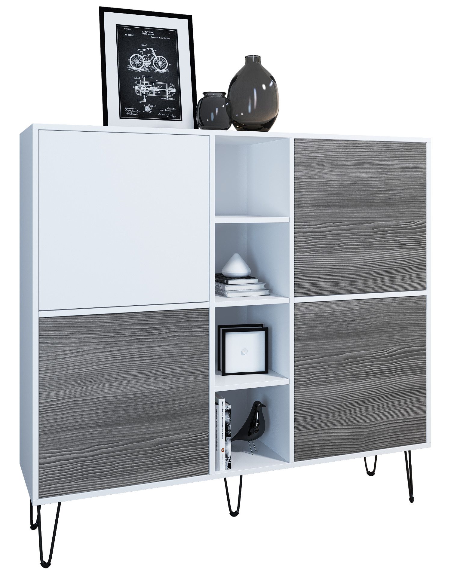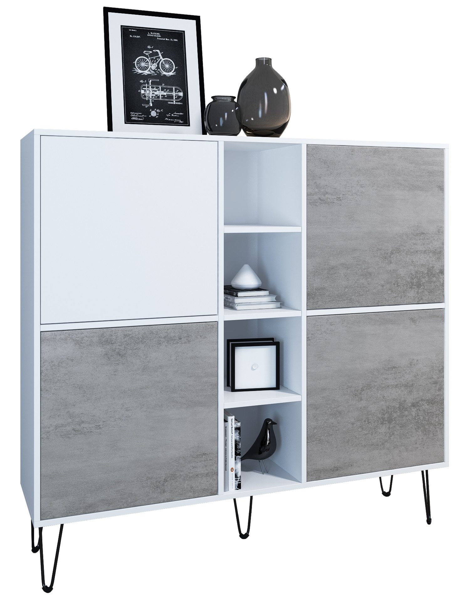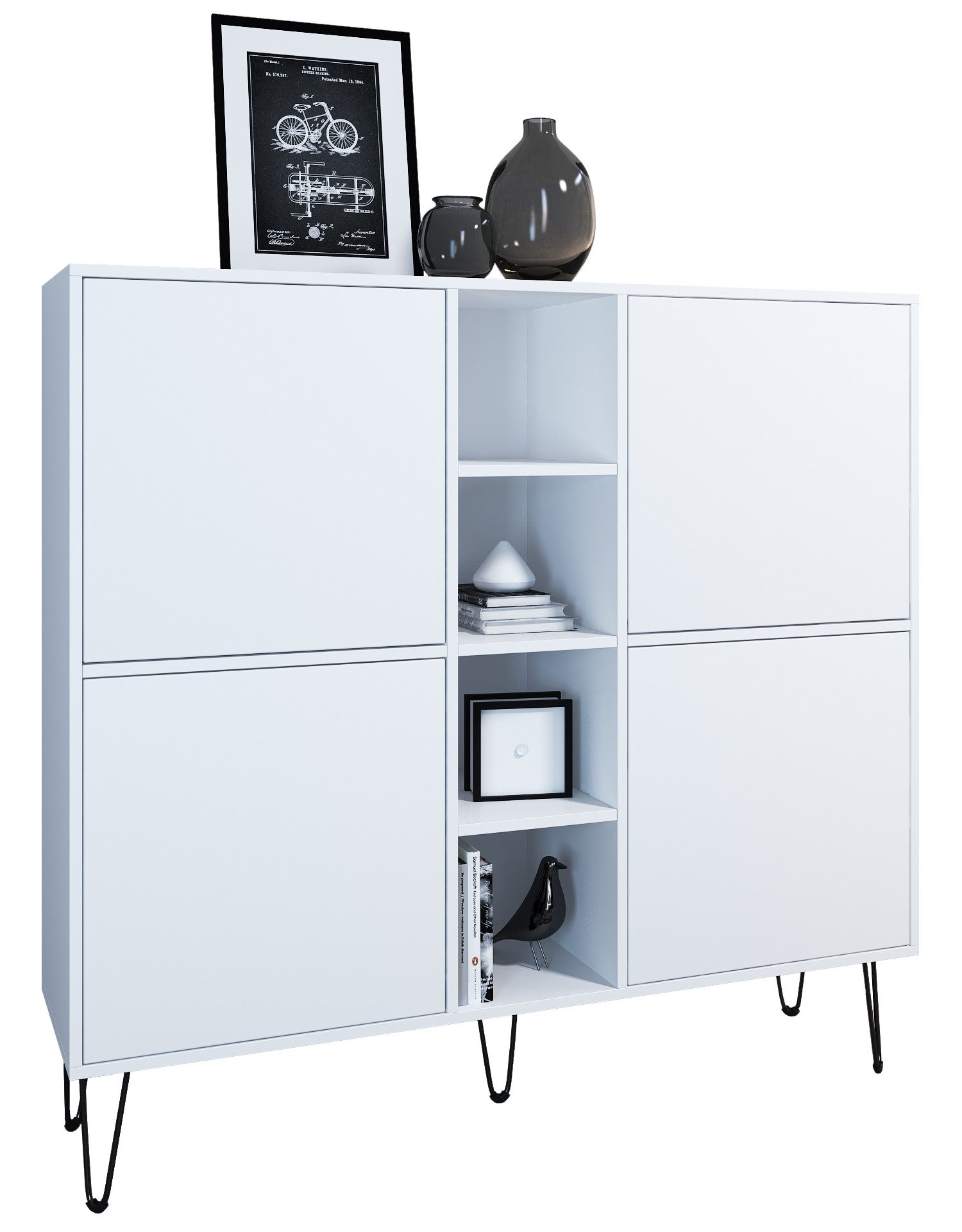 Die vier Türen mit Push-to-Open-Funktion verbergen großzügige Innenfächer – perfekt als Kommode, Schrank oder Aufbewahrungsschrank für Geschirr, Bücher oder Deko. Die vier offenen Fächer bieten zusätzlichen Stauraum für Dekoration, Technik oder Pflanzen. Dank der grifflosen Front wirkt das Möbelstück besonders modern und harmonisch.
