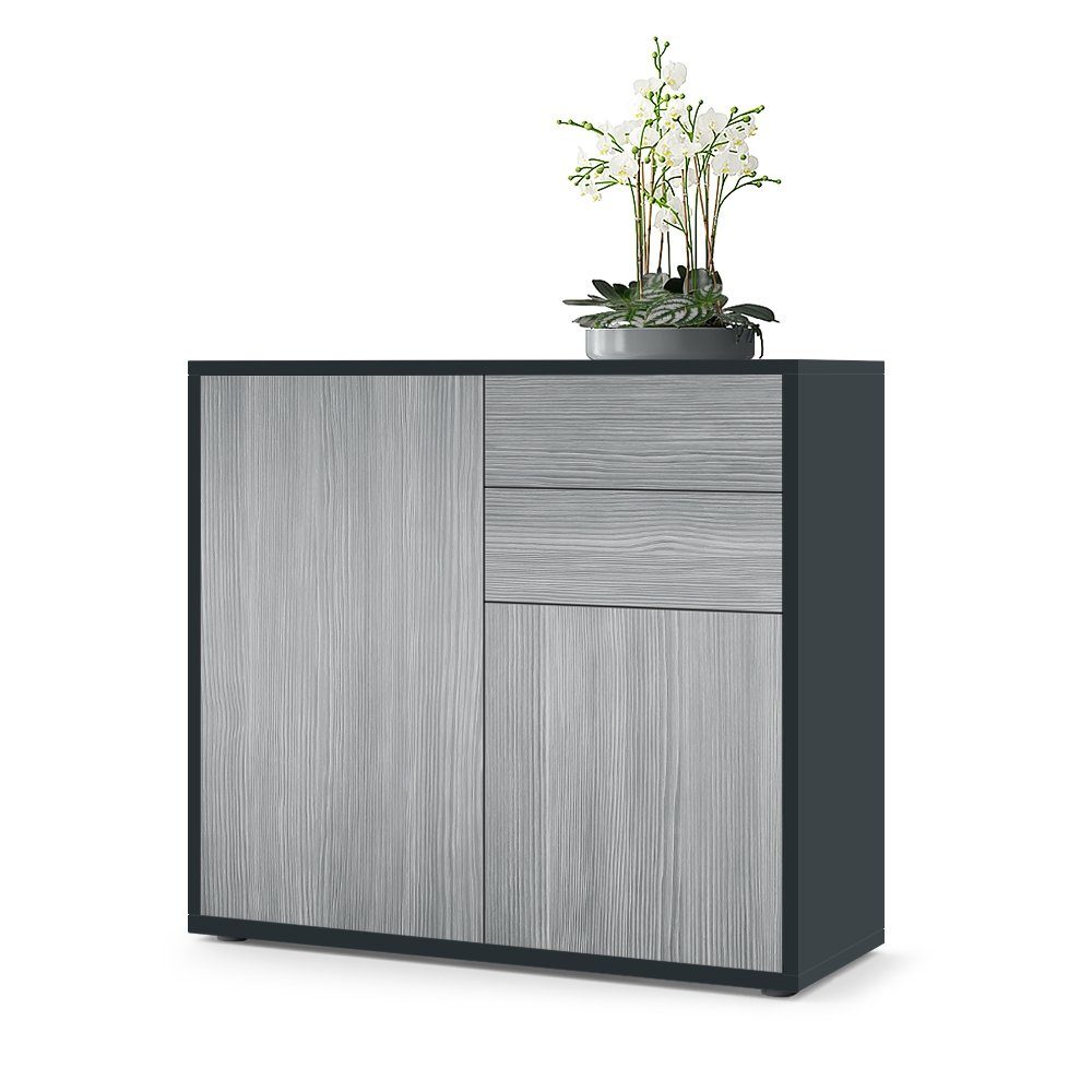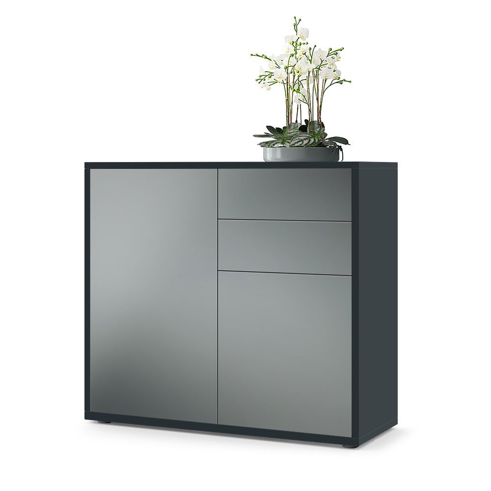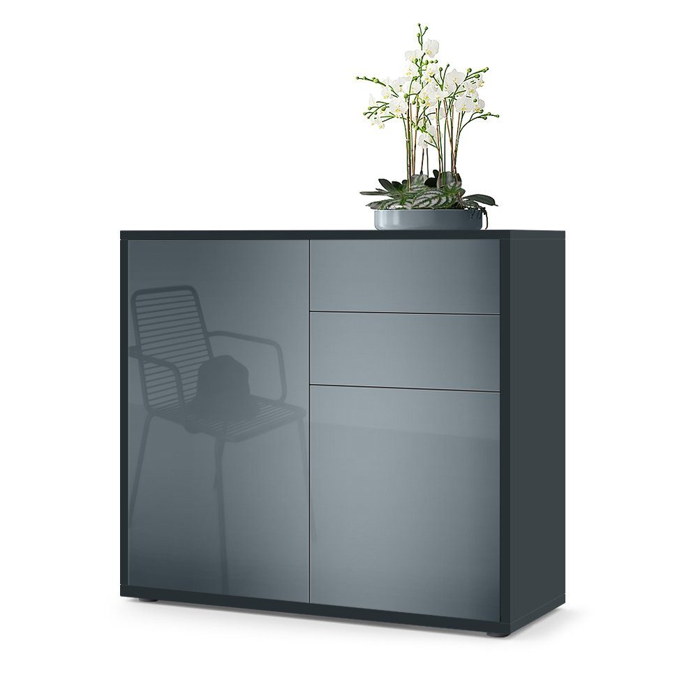 Durch das schlichte, moderne Design lässt sich die Kommode mit vielen verschiedenen Einrichtungsstilen kombinieren und sowohl als Wohnzimmerschrank, Kommode im Schlafzimmer oder als TV-Sideboard einsetzen. Für eine besondere Eleganz sorgen die Fronten der Türen- und Schubladenkommode, erhältlich in vielen verschiedenen Farbvarianten, die Ihnen eine Vielzahl an Kombinationsmöglichkeiten bieten. Durch die Oberflächenbeschichtung erhalten Sie ein besonders pflegeleichtes Produkt. Für die Reinigung können Sie auf Chemie verzichten - es reicht ein leicht angefeuchtetes Tuch, um die wasserfeste Oberfläche angemessen zu reinigen.