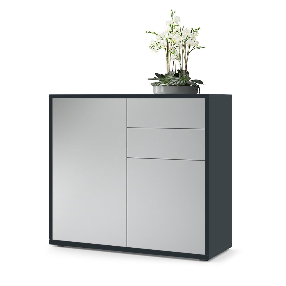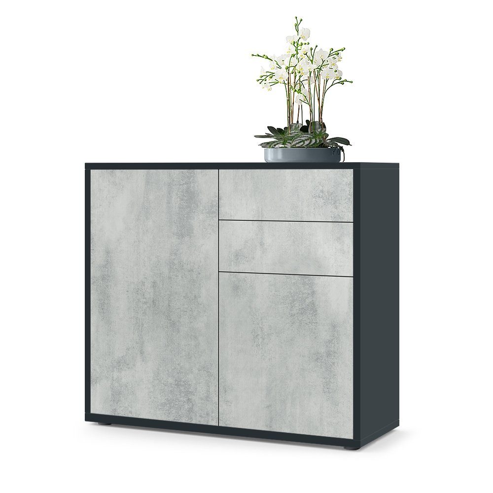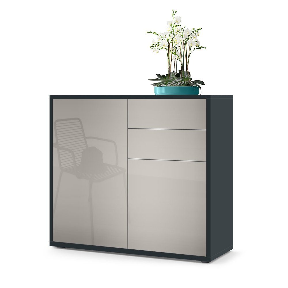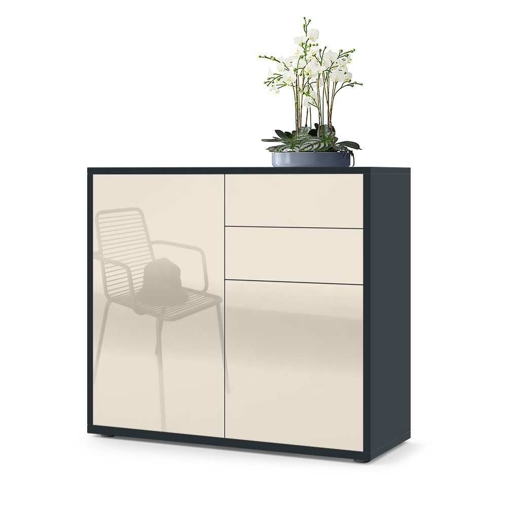 Durch das schlichte, moderne Design lässt sich die Kommode mit vielen verschiedenen Einrichtungsstilen kombinieren und sowohl als Wohnzimmerschrank, Kommode im Schlafzimmer oder als TV-Sideboard einsetzen. Für eine besondere Eleganz sorgen die Fronten der Türen- und Schubladenkommode, erhältlich in vielen verschiedenen Farbvarianten, die Ihnen eine Vielzahl an Kombinationsmöglichkeiten bieten. Durch die Oberflächenbeschichtung erhalten Sie ein besonders pflegeleichtes Produkt. Für die Reinigung können Sie auf Chemie verzichten - es reicht ein leicht angefeuchtetes Tuch, um die wasserfeste Oberfläche angemessen zu reinigen.