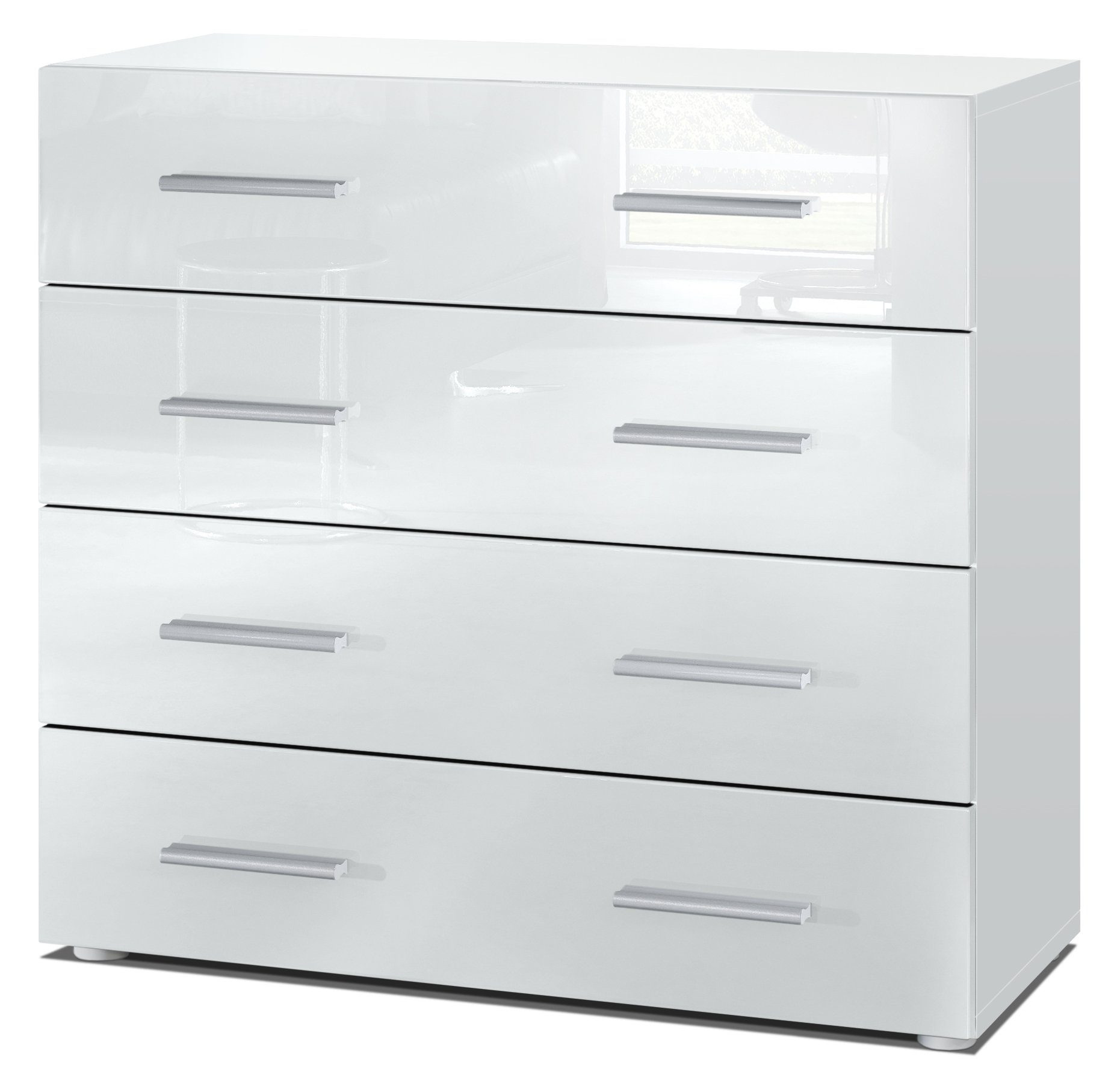 Ob als modernes Sideboard im Wohnzimmer, Kommodenschrank für's Schlafzimmer, Anrichte im Flur oder als Kommode im Kinderzimmer - die geräumige Kommode Pavos präsentiert sich als praktisches Möbelstück mit modernem Design, hergestellt in Deutschland. Der Beistellschrank ist mit vier leichtgängigen Schubladen ausgerüstet. Diese verlaufen dank Laufschienen aus Metall nahezu geräuschlos und sorgen für eine leichte Handhabung. Die Schubladen sind mit dezenten, silbernen Griffen ausgestattet. Eine Rückwand in Holzoptik aus Hartfaserplatten ist im Lieferumfang enthalten.