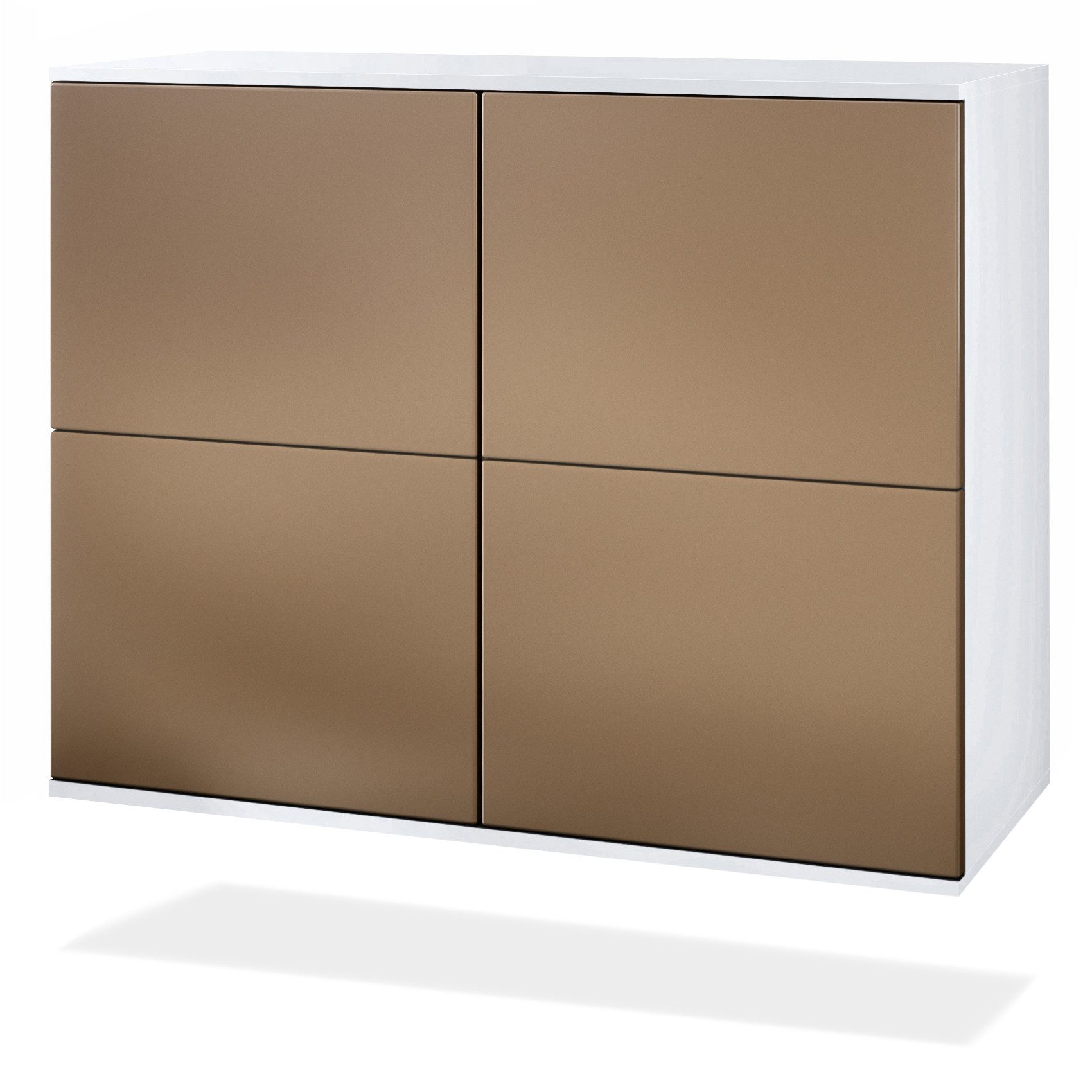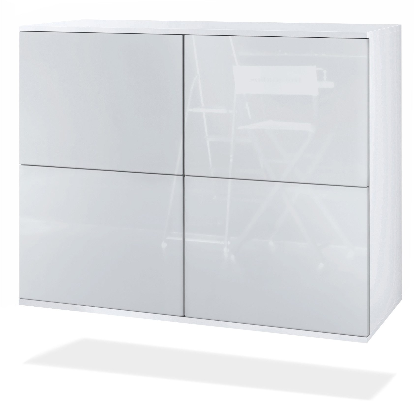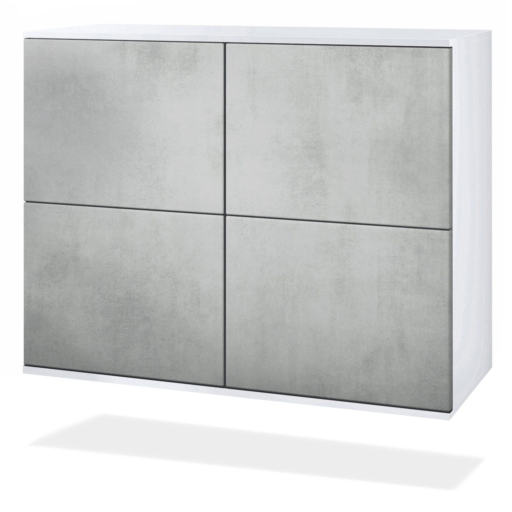 Ob als modernes Sideboard im Wohnzimmer, Kommodenschrank für‘s Schlafzimmer, Anrichte im Flur oder als Küchenschrank in der Küche - die geräumige Kommode Rova V3 präsentiert sich als praktisches Möbelstück mit modernem Design, hergestellt in Deutschland. Der Beistellschrank ist mit 4 Türen ausgerüstet. Hinter den Türen befindet sich jeweils 1 geräumiges Fach. Die Türen sind mit unserem Push-to-Open-System ausgestattet. Eine Rückwand in Holzoptik aus Hartfaserplatten ist im Lieferumfang enthalten.