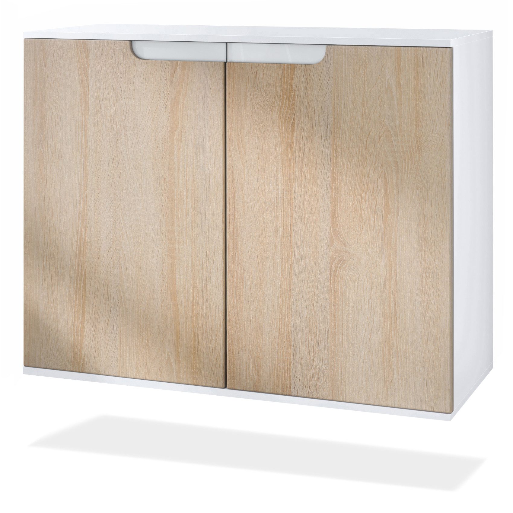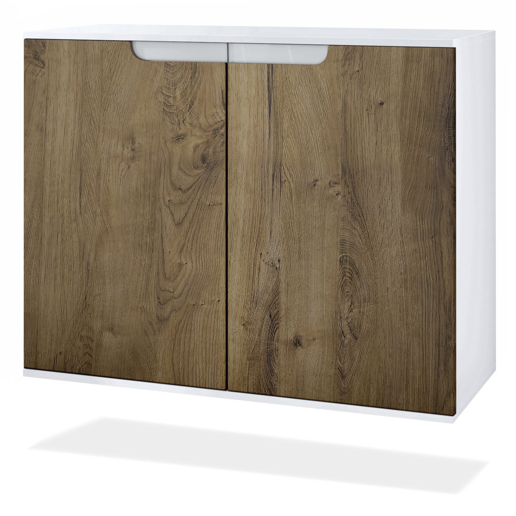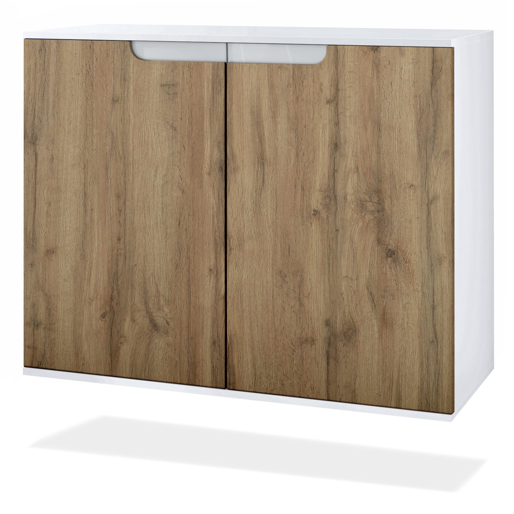 Ob als modernes Sideboard im Wohnzimmer, Kommodenschrank für‘s Schlafzimmer, Anrichte im Flur oder als Küchenschrank in der Küche - die geräumige Kommode Sylt V3 präsentiert sich als praktisches Möbelstück mit modernem Design, hergestellt in Deutschland. Der Beistellschrank ist mit zwei großen Türen ausgerüstet. Hinter den Türen befinden sich jeweils zwei geräumige Fächer mit verstellbaren Einlegeboden. Eine durchdachte Designentscheidung verzichtet auf sichtbare Griffe, stattdessen wurden die Türen mit Griffmulden ausgestattet, die ein müheloses Öffnen ermöglichen. Eine Rückwand in Holzoptik aus Hartfaserplatten ist im Lieferumfang enthalten.