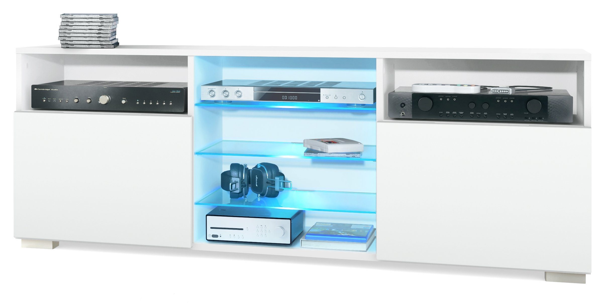 Entdecken Sie das elegante Granada TV-Board in der stilvollen Korpusfarbe Weiß matt. Mit seinen vielseitigen Eigenschaften bietet es nicht nur eine moderne und ansprechende Optik, sondern auch reichlich Stauraum für Ihre Unterhaltungselektronik und Wohnaccessoires.
