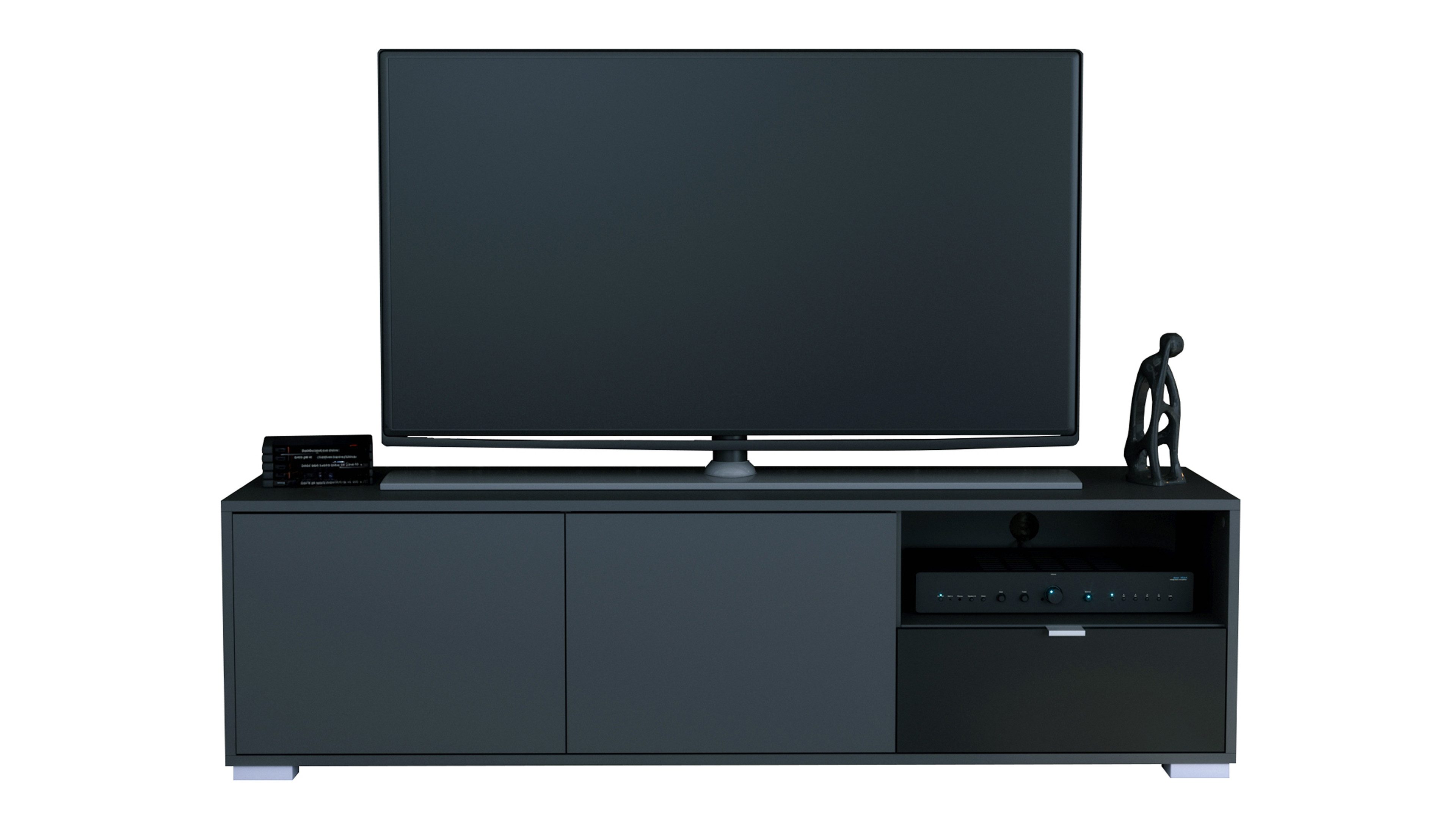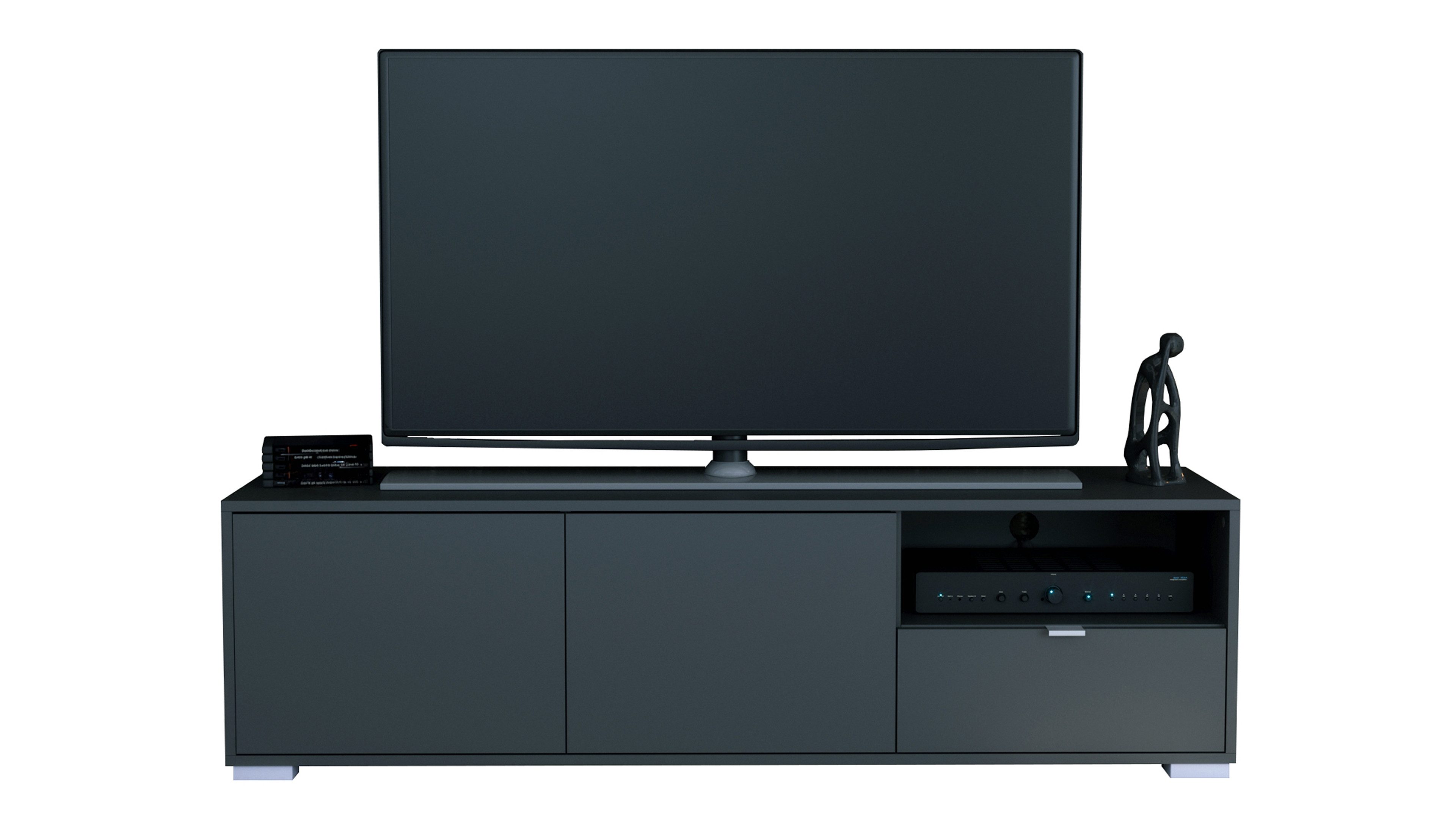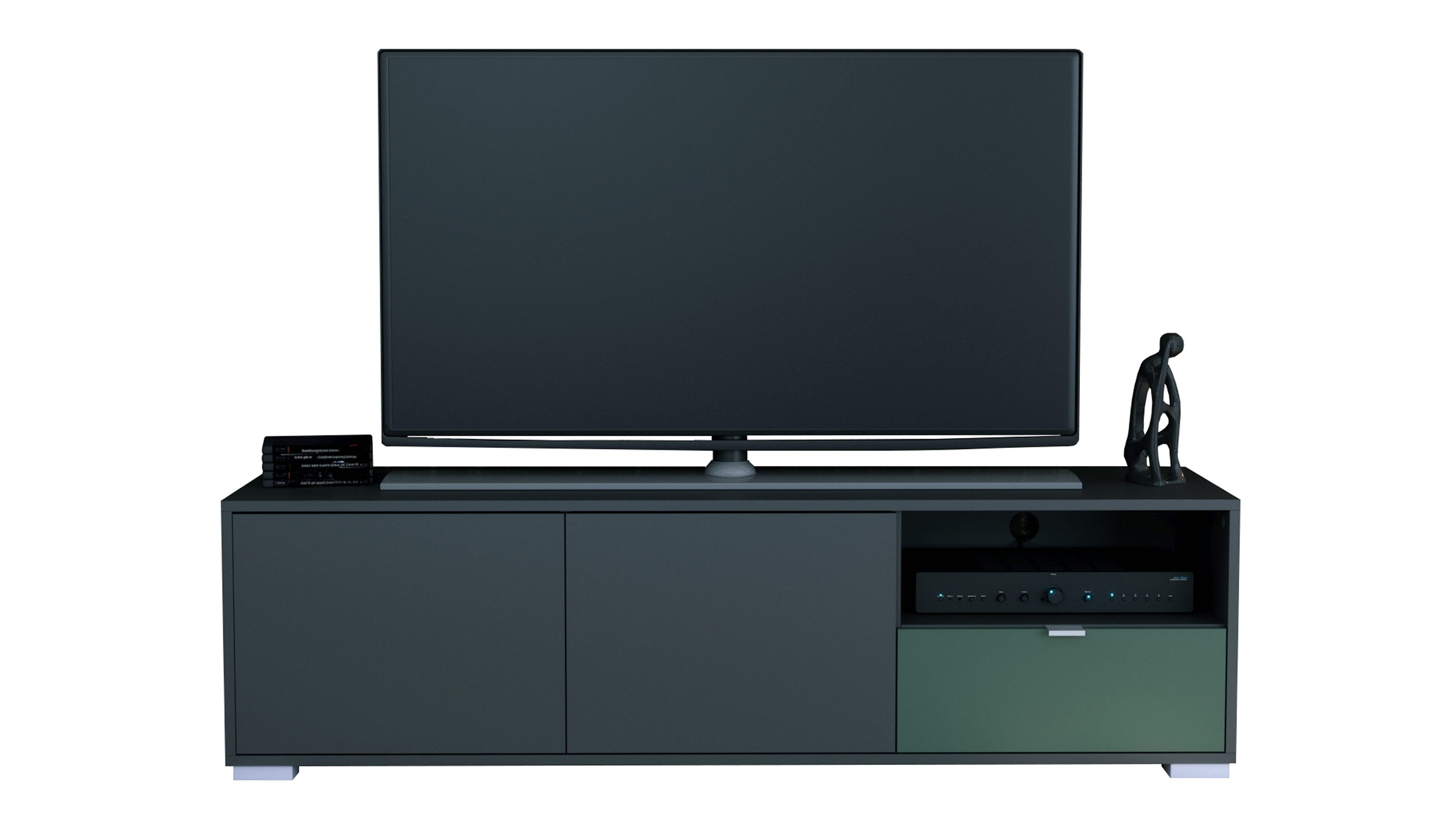 Das Lowboard Milano bringt klares Design und Alltagstauglichkeit zusammen. Der Korpus in Anthrazit matt sorgt für eine moderne, zeitlose Optik. Silberne Füße setzen dezente Akzente und sorgen für einen sicheren Stand. Die Frontfarbe ist individuell wählbar und lässt sich perfekt auf deinen Einrichtungsstil abstimmen.