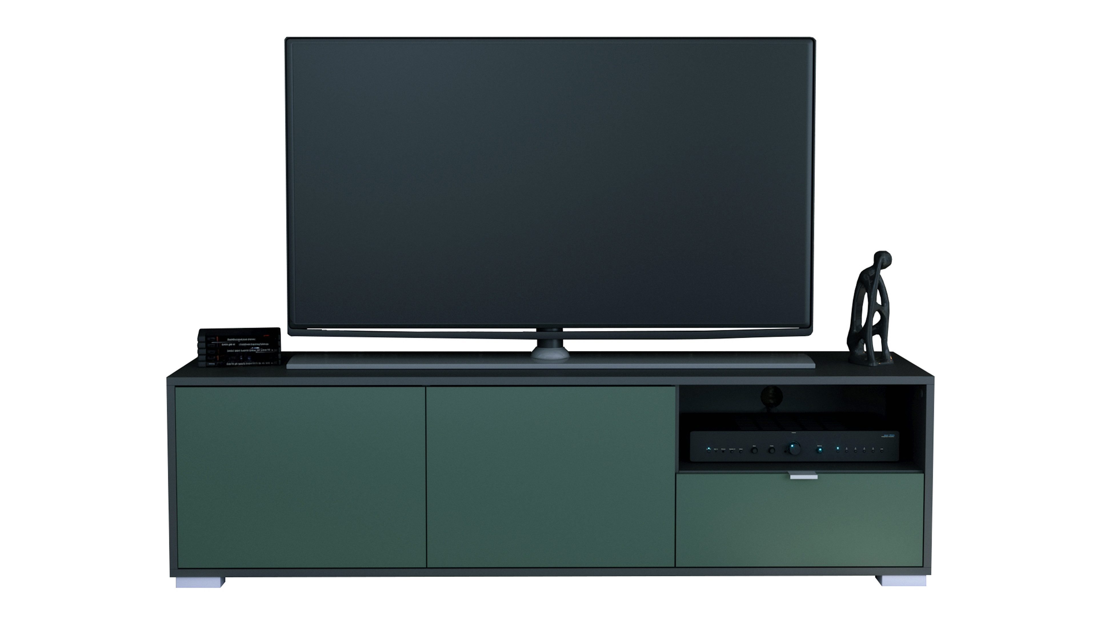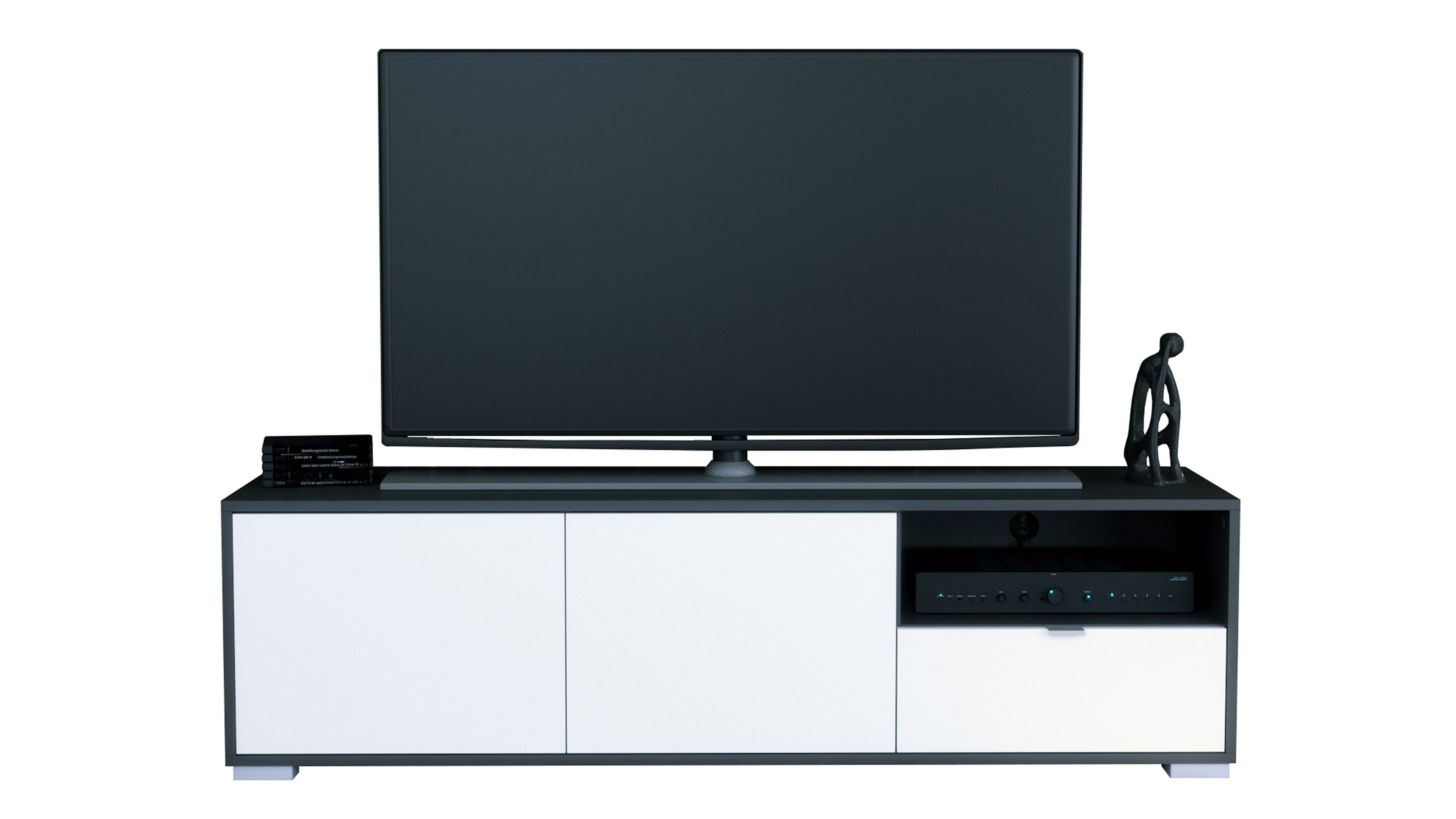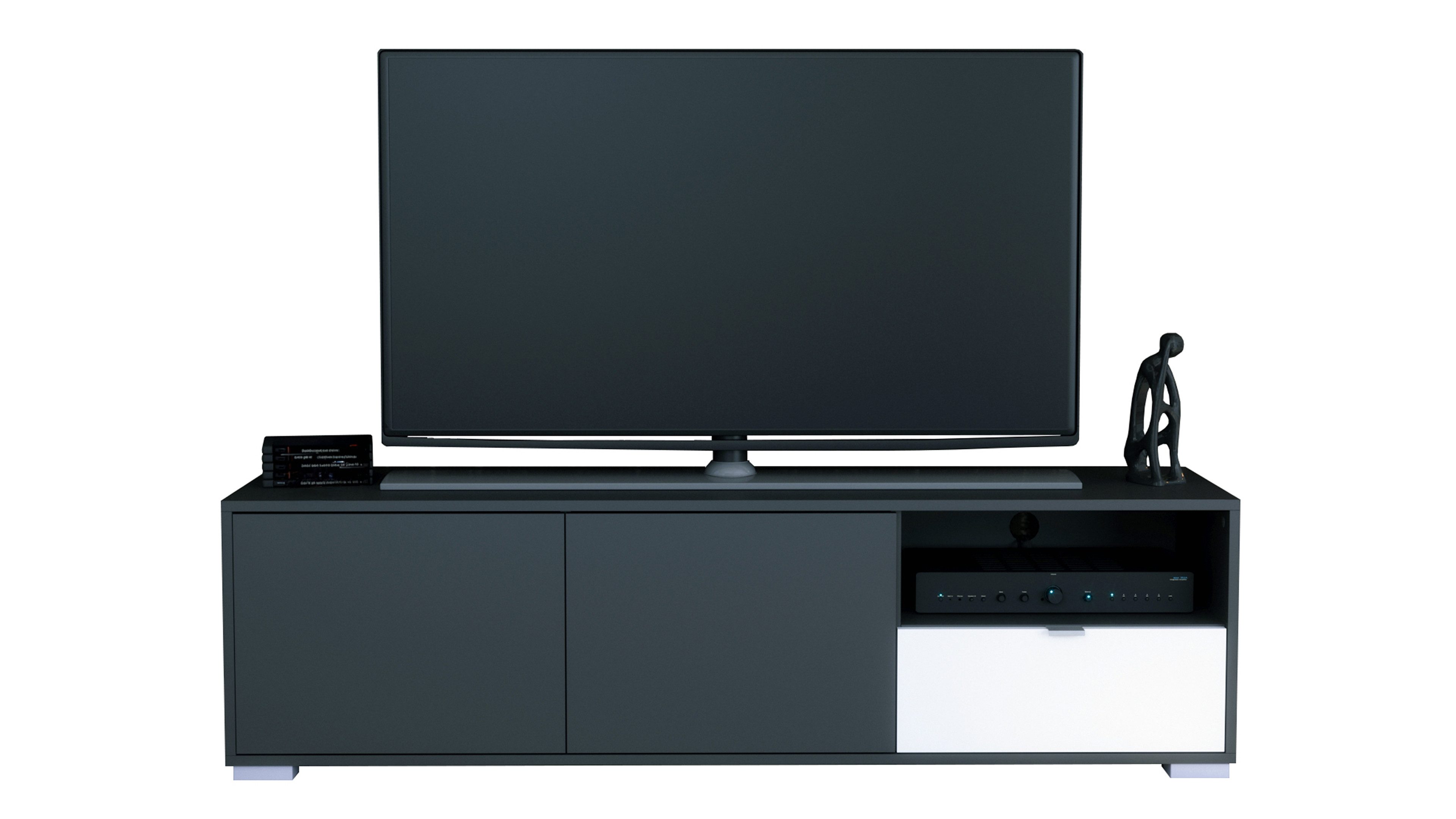 Das Lowboard Milano bringt klares Design und Alltagstauglichkeit zusammen. Der Korpus in Anthrazit matt sorgt für eine moderne, zeitlose Optik. Silberne Füße setzen dezente Akzente und sorgen für einen sicheren Stand. Die Frontfarbe ist individuell wählbar und lässt sich perfekt auf deinen Einrichtungsstil abstimmen.