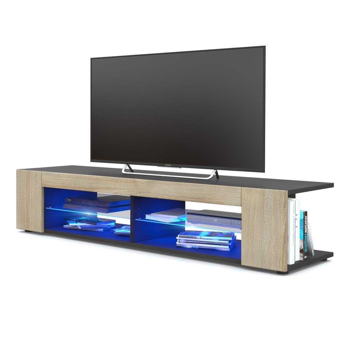 Durch das schlichte, moderne Design lässt sich das TV-Sideboard mit vielen verschiedenen Einrichtungsstilen kombinieren und sowohl als Wohnzimmerschrank oder TV-Board im Schlafzimmer einsetzen. Für eine besondere Eleganz sorgen die Fronten des TV-Tischs, erhältlich in vielen verschiedenen Farbvarianten, die Ihnen eine Vielzahl an Kombinationsmöglichkeiten bieten. Durch die Oberflächenbeschichtung erhalten Sie ein besonders pflegeleichtes Produkt. Für die Reinigung können Sie auf Chemie verzichten - es reicht ein leicht angefeuchtetes Tuch, um die wasserfeste Oberfläche angemessen zu reinigen.