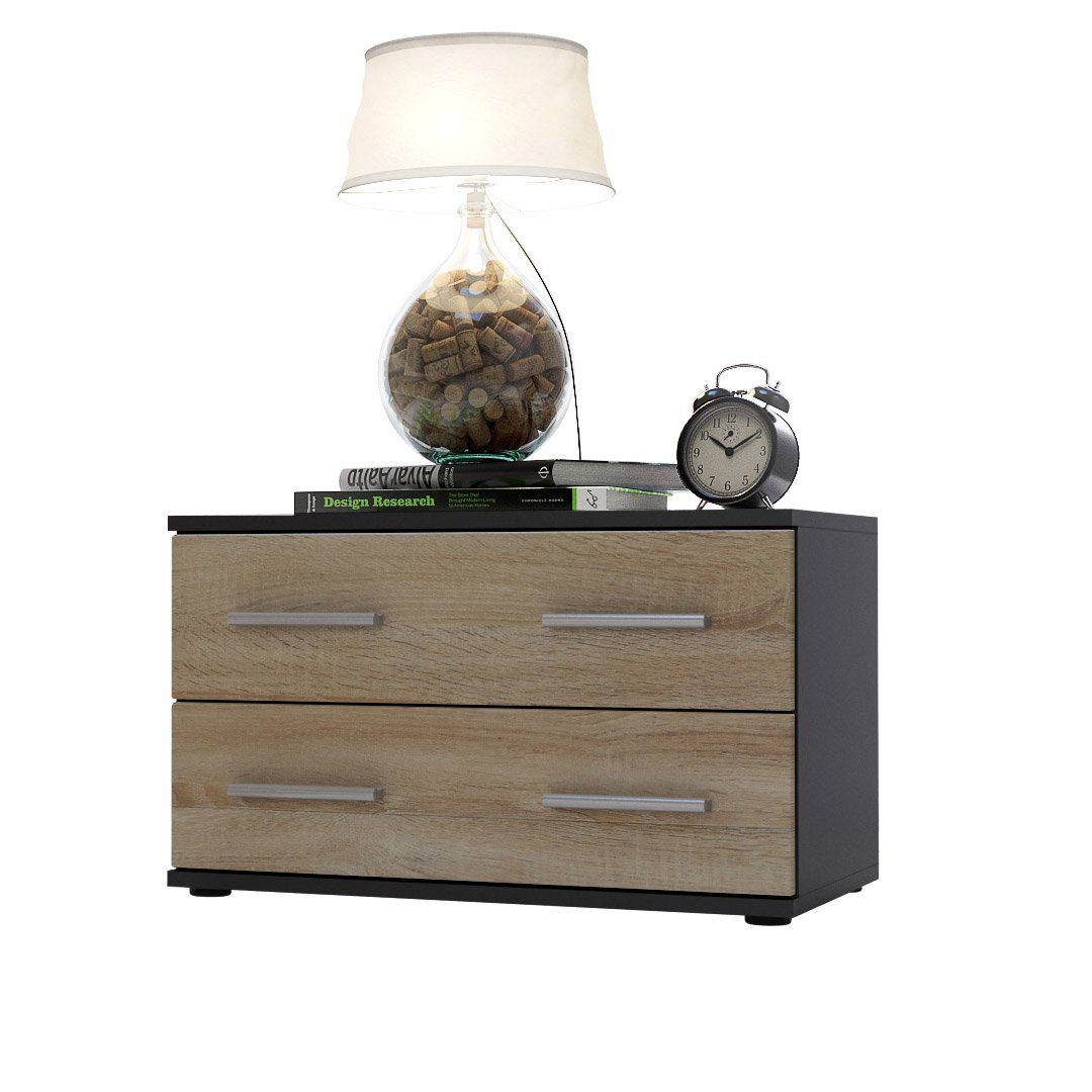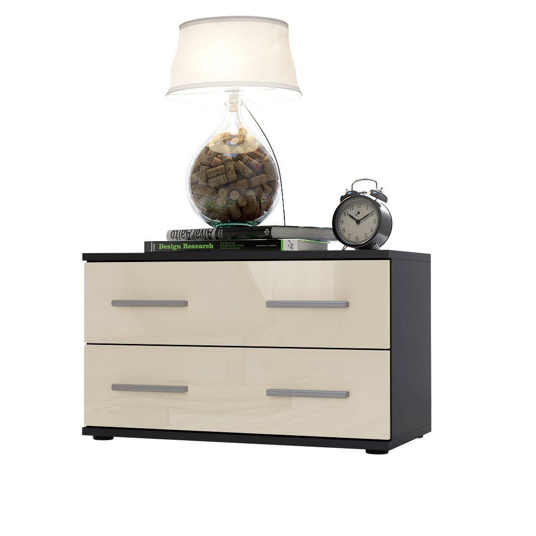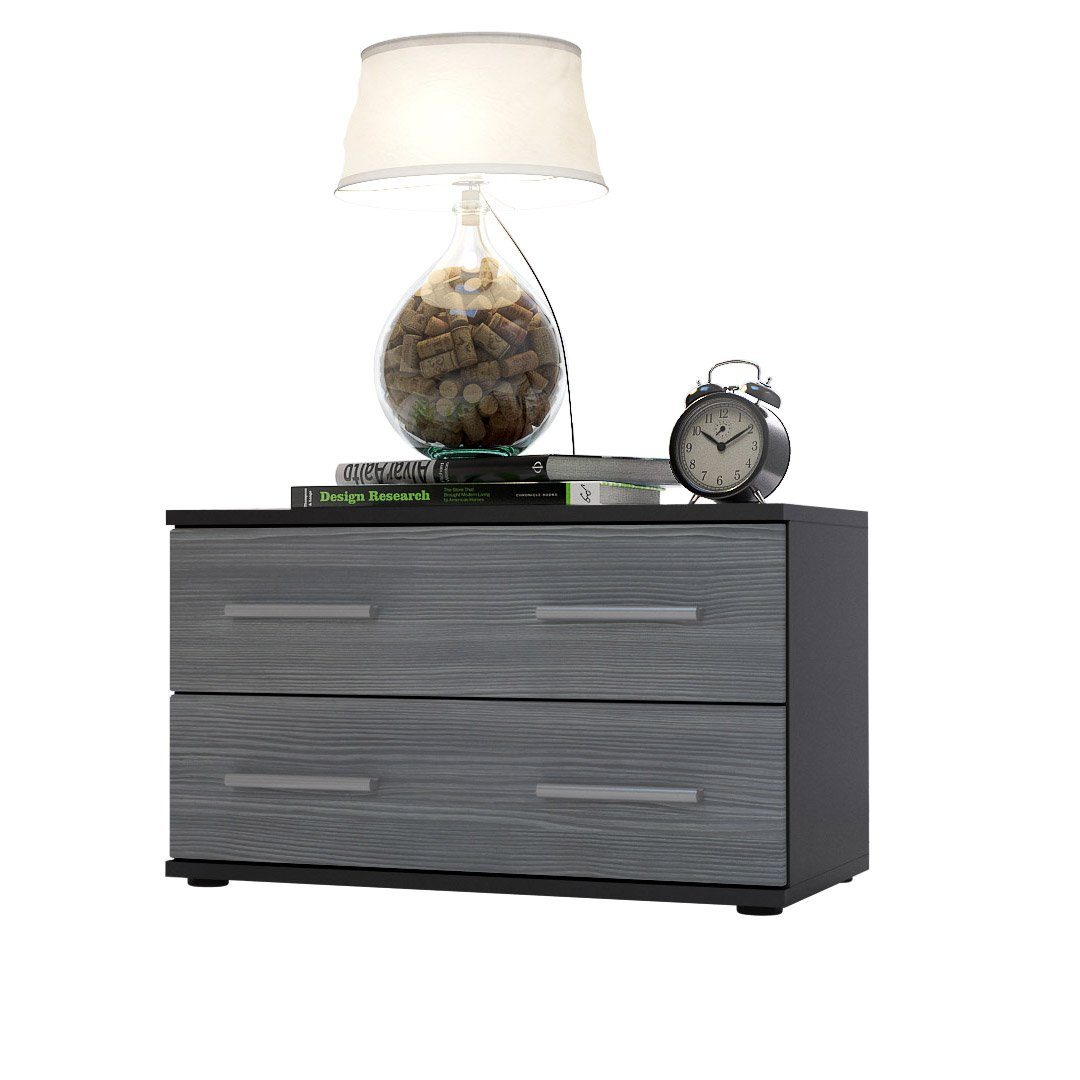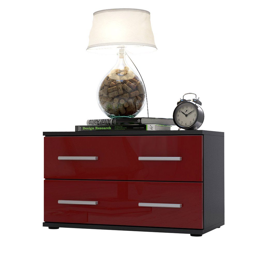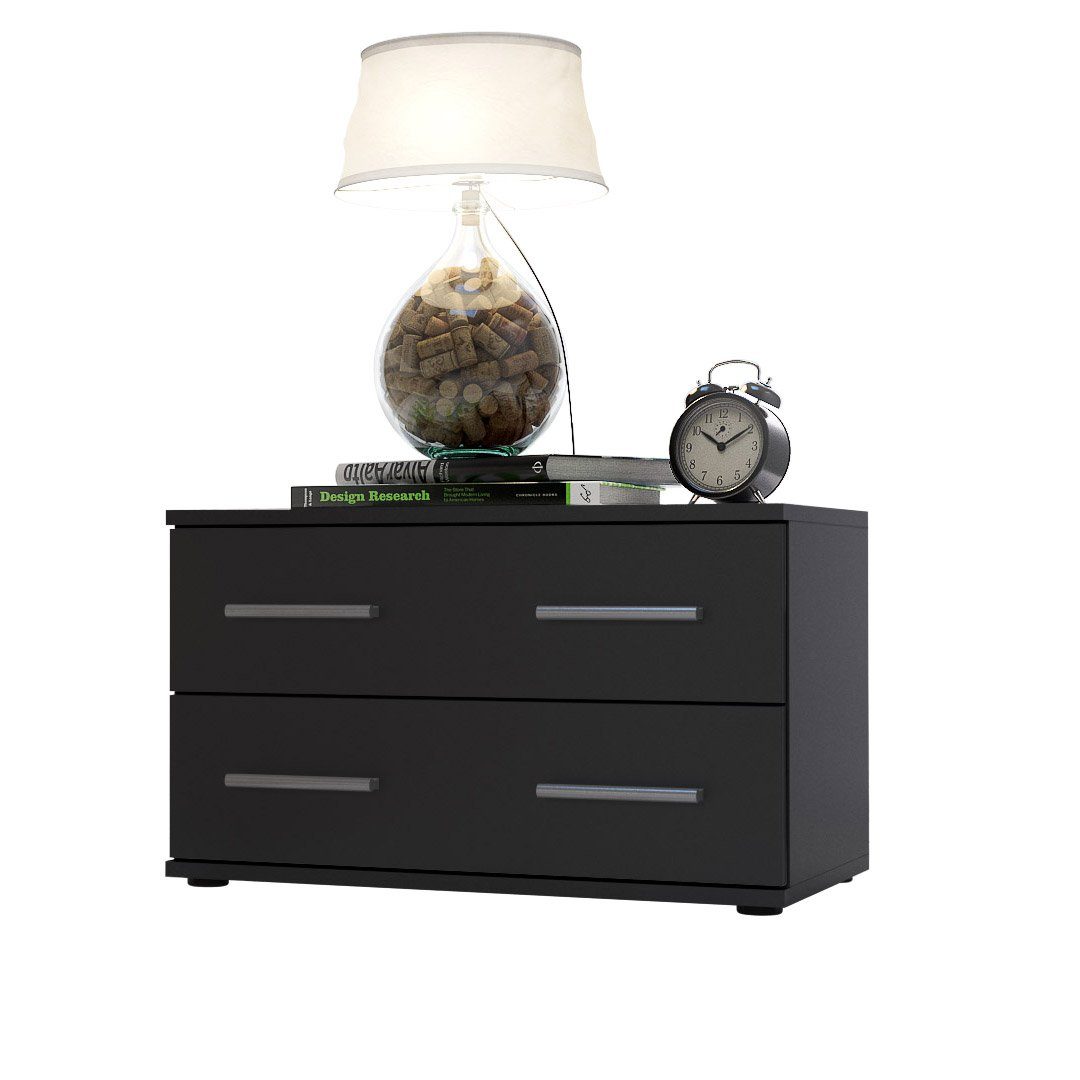 Der Korpus der Bettkommode ist elegant in Schwarz matt melaminbeschichtet, was dem Möbelstück eine stilvolle Note verleiht.