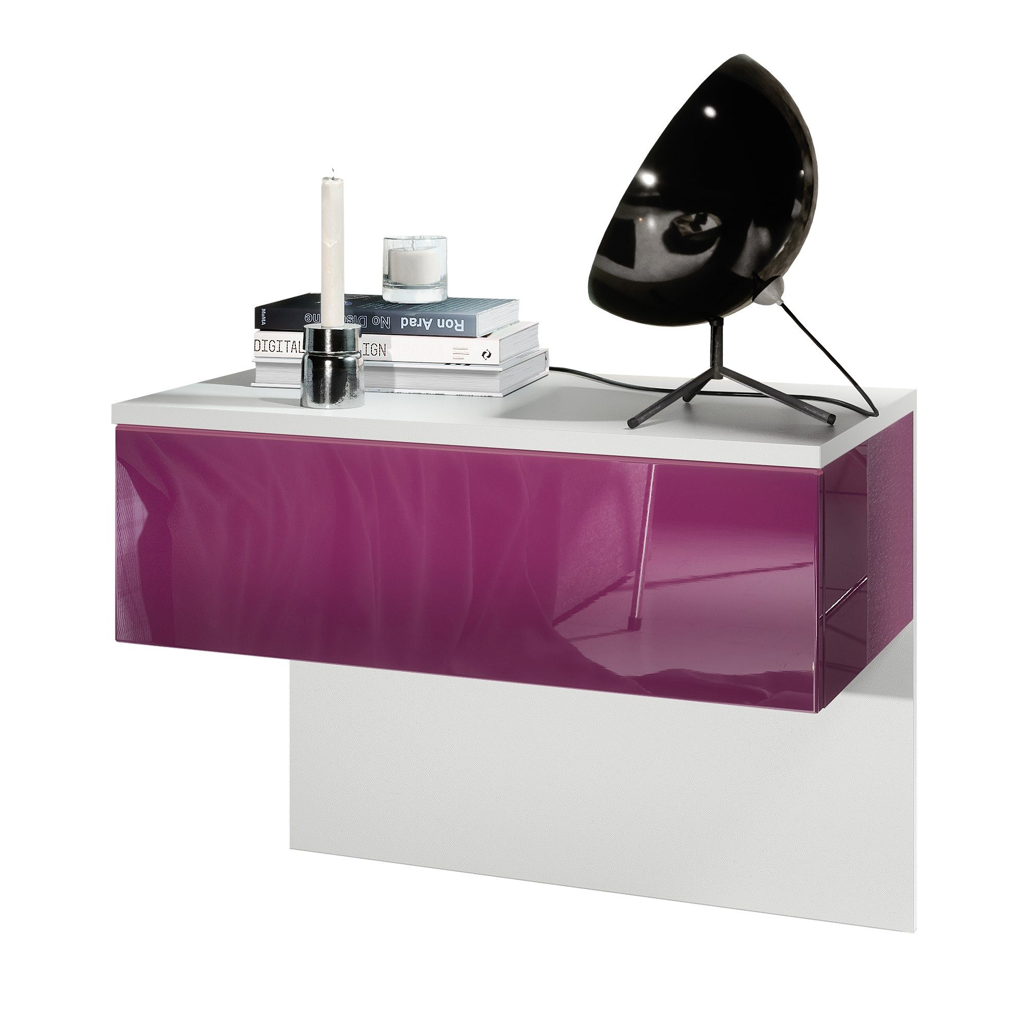 Durch das schlichte, moderne Design lässt sich das Nachtschränkchen mit vielen verschiedenen Einrichtungsstilen kombinieren und sowohl im Schlafzimmer beispielsweise als Nachttisch neben dem Boxspringbett, als auch in anderen Wohnräumen, z. B. als Beistelltisch oder Telefontisch, einsetzen. Für eine besondere Eleganz sorgen die Fronten der Nachtkonsole, erhältlich in vielen verschiedenen Farbvarianten, die Ihnen eine Vielzahl an Kombinationsmöglichkeiten bieten. Durch die Oberflächenbeschichtung erhalten Sie ein besonders pflegeleichtes Produkt. Für die Reinigung können Sie auf Chemie verzichten - es reicht ein leicht angefeuchtetes Tuch, um die wasserfeste Oberfläche angemessen zu reinigen.