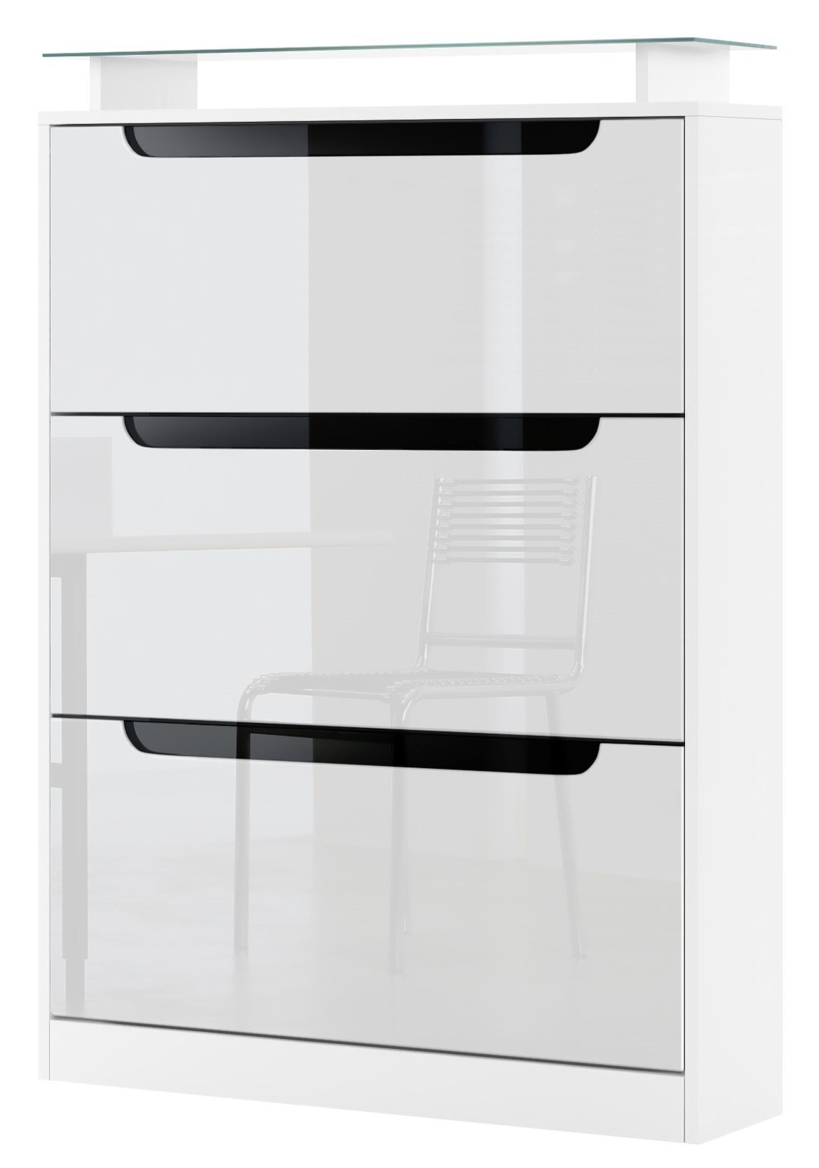 Durch das schlichte, moderne Design lässt sich der schmale Schuhschrank mit vielen verschiedenen Einrichtungsstilen kombinieren. Für eine besondere Eleganz sorgen die Fronten des Schuhkippers, erhältlich in vielen verschiedenen Farbvarianten, die Ihnen eine Vielzahl an Kombinationsmöglichkeiten bieten. Durch die Oberflächenbeschichtung erhalten Sie ein besonders pflegeleichtes Produkt. Für die Reinigung können Sie auf Chemie verzichten - es genügt ein leicht angefeuchtetes Tuch, um die wasserfeste Oberfläche angemessen zu reinigen.