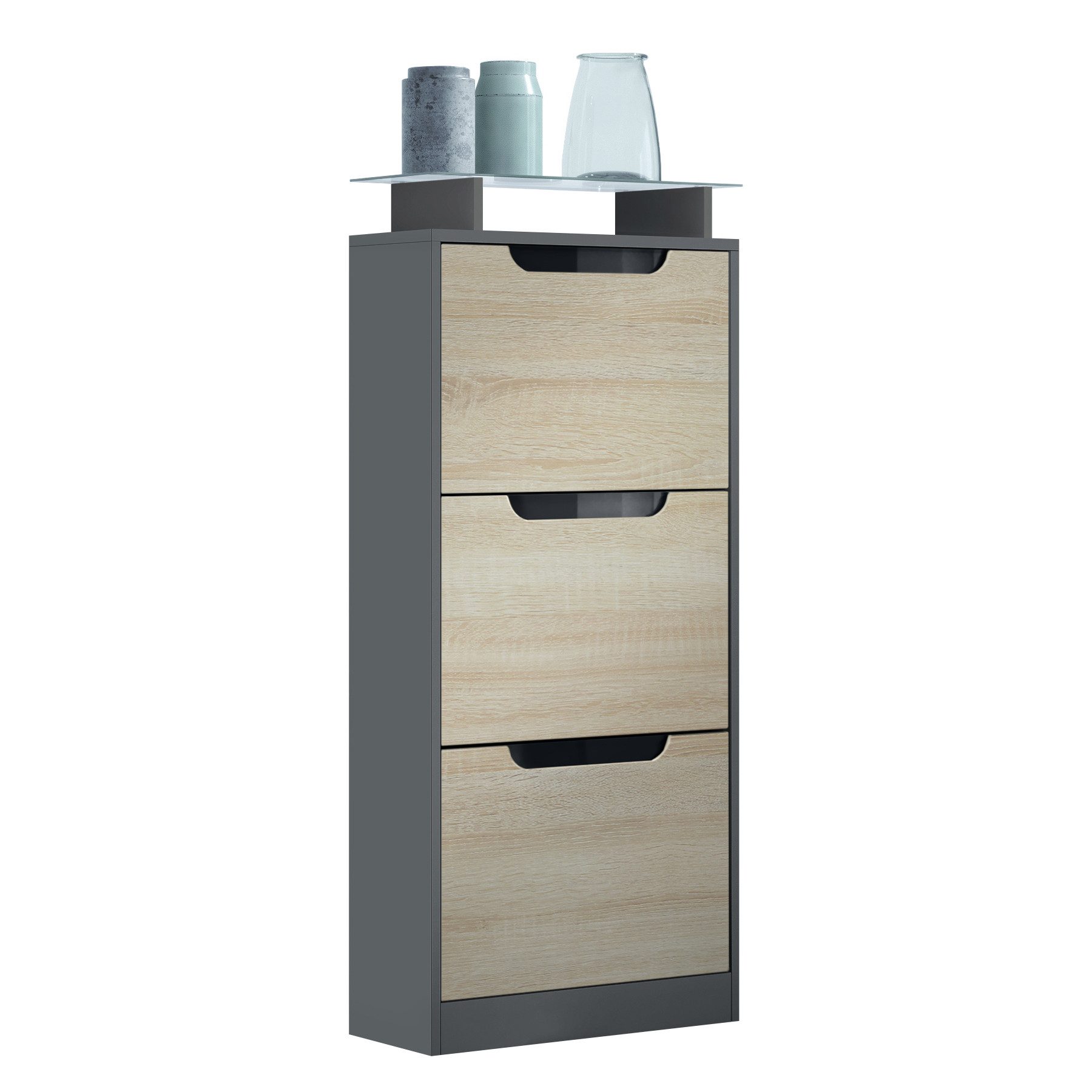 Durch das schlichte, moderne Design lässt sich der schmale Schuhschrank mit vielen verschiedenen Einrichtungsstilen kombinieren. Für eine besondere Eleganz sorgen die Fronten des Schuhkippers, erhältlich in vielen verschiedenen Farbvarianten, die Ihnen eine Vielzahl an Kombinationsmöglichkeiten bieten. Durch die Oberflächenbeschichtung erhalten Sie ein besonders pflegeleichtes Produkt. Für die Reinigung können Sie auf Chemie verzichten - es genügt ein leicht angefeuchtetes Tuch, um die wasserfeste Oberfläche angemessen zu reinigen.