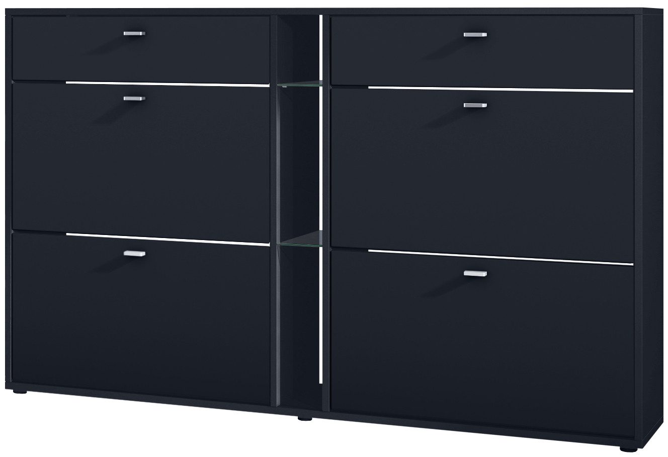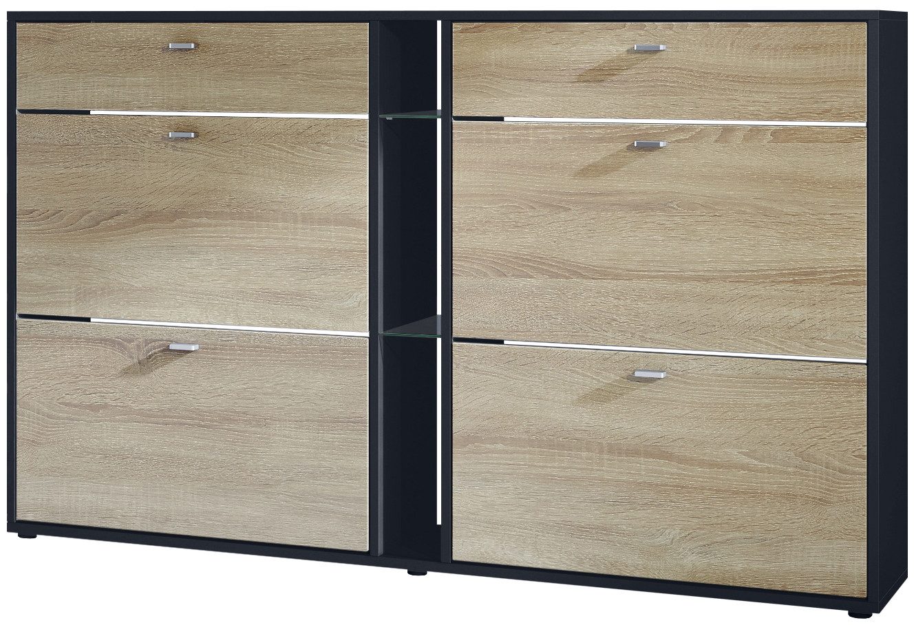 Der Schuhkipper hat vier Klappen, hinter denen sich je zwei Fächer befinden. Pro Fach lassen sich bis zu 3 Paar Schuhe unterbringen. Die Tiefe von 28 cm sorgt dafür, dass auch für etwas höhere Schuhe ausreichend Stauraum verfügbar ist. Nutzen Sie die 4 Klappen, um Ihre Schuhe nach Art – z.B. Pumps, Sandalen, Stiefel und Sportschuhe – oder nach Jahreszeit zu sortieren. So müssen Sie nie wieder unnötig lange nach ihren Lieblingsschuhen suchen.