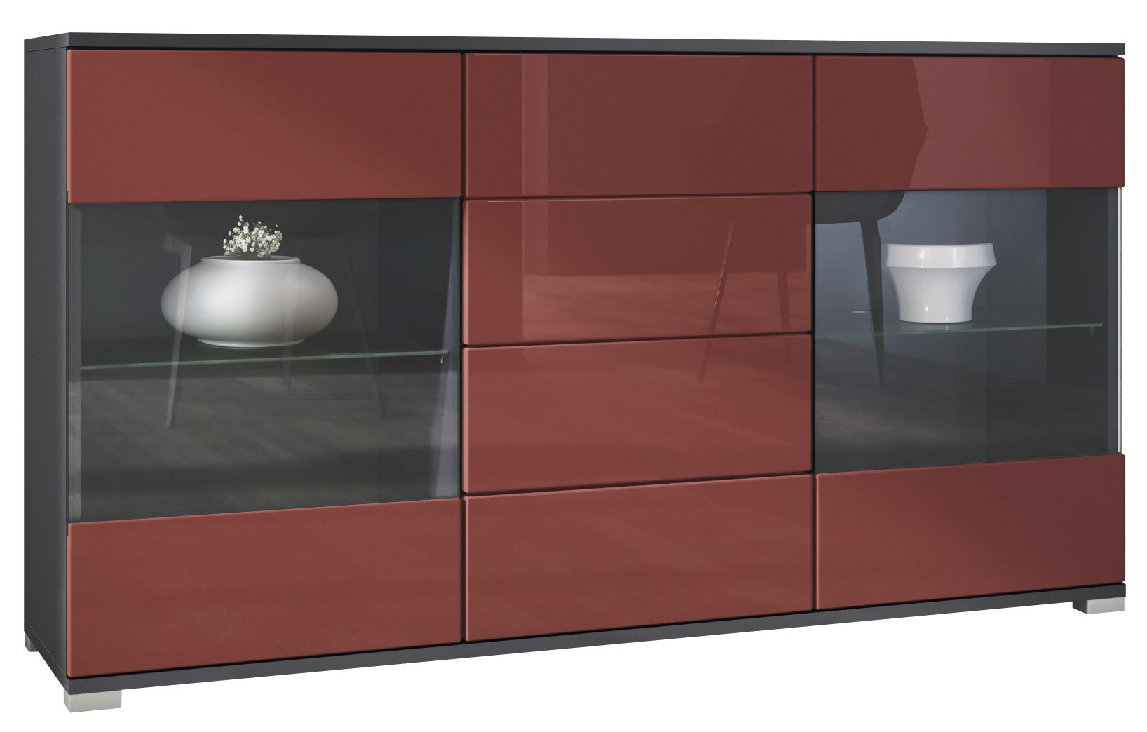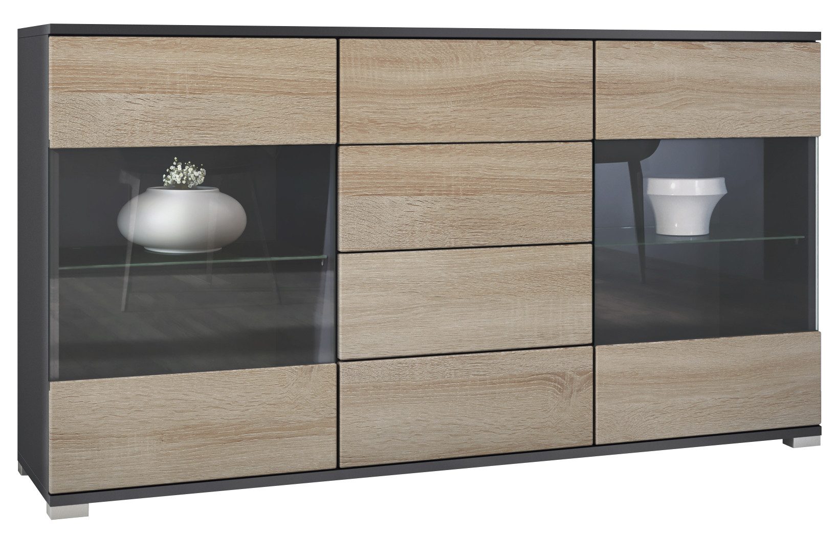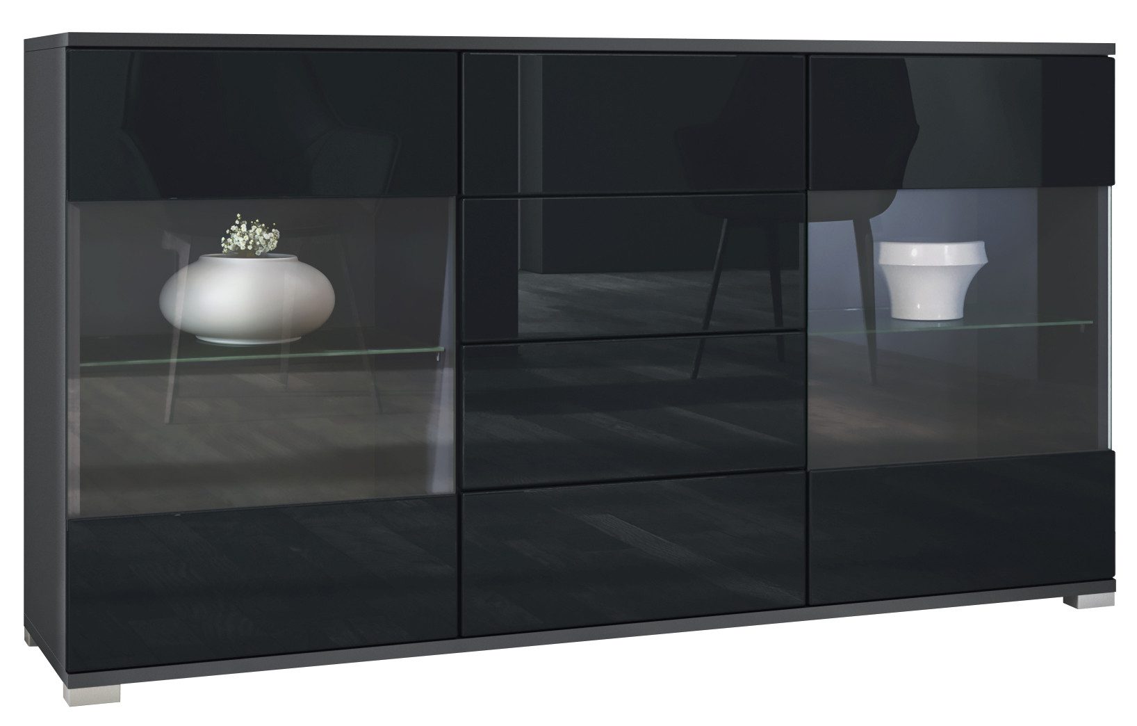Der Korpus des Sideboards ist in Anthrazit matt gehalten. Wählen Sie die passende Frontfarbe für Ihren Wohnstil: edle Hochglanz-Optik, natürliche Holztöne oder moderne matte Farben.