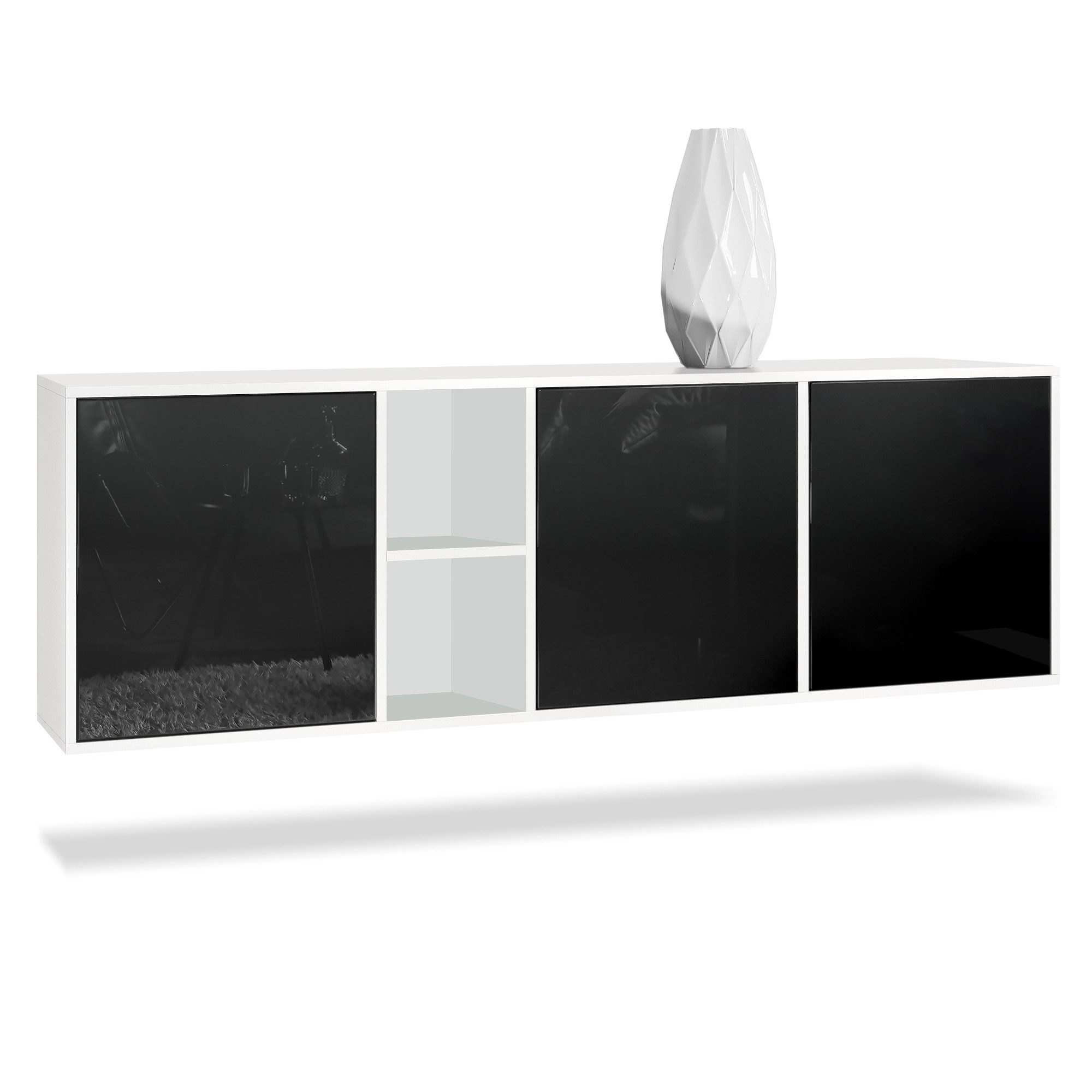 Entdecken Sie das beeindruckende Design und die minimalistische Eleganz von Cuba. Mit seinen klaren Linien, farbigen Akzenten und dem besonderen Regalelement setzt dieses hängende Sideboard ein deutliches Statement in jedem Raum.