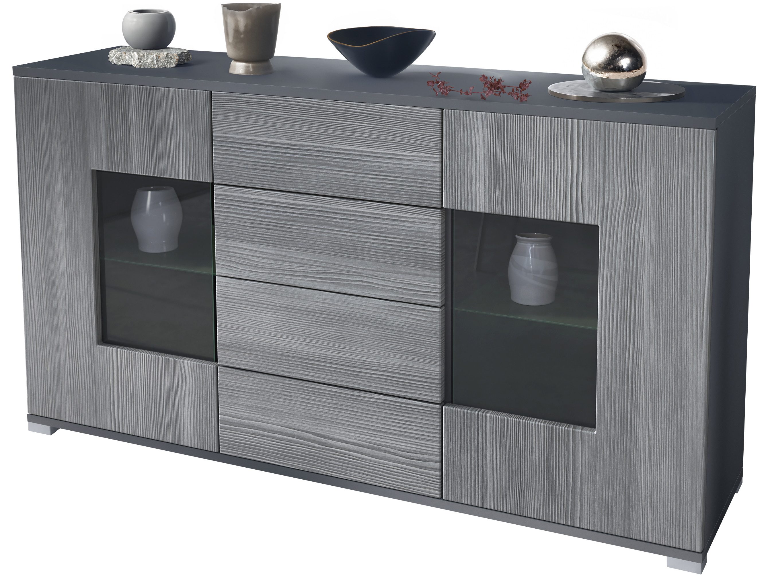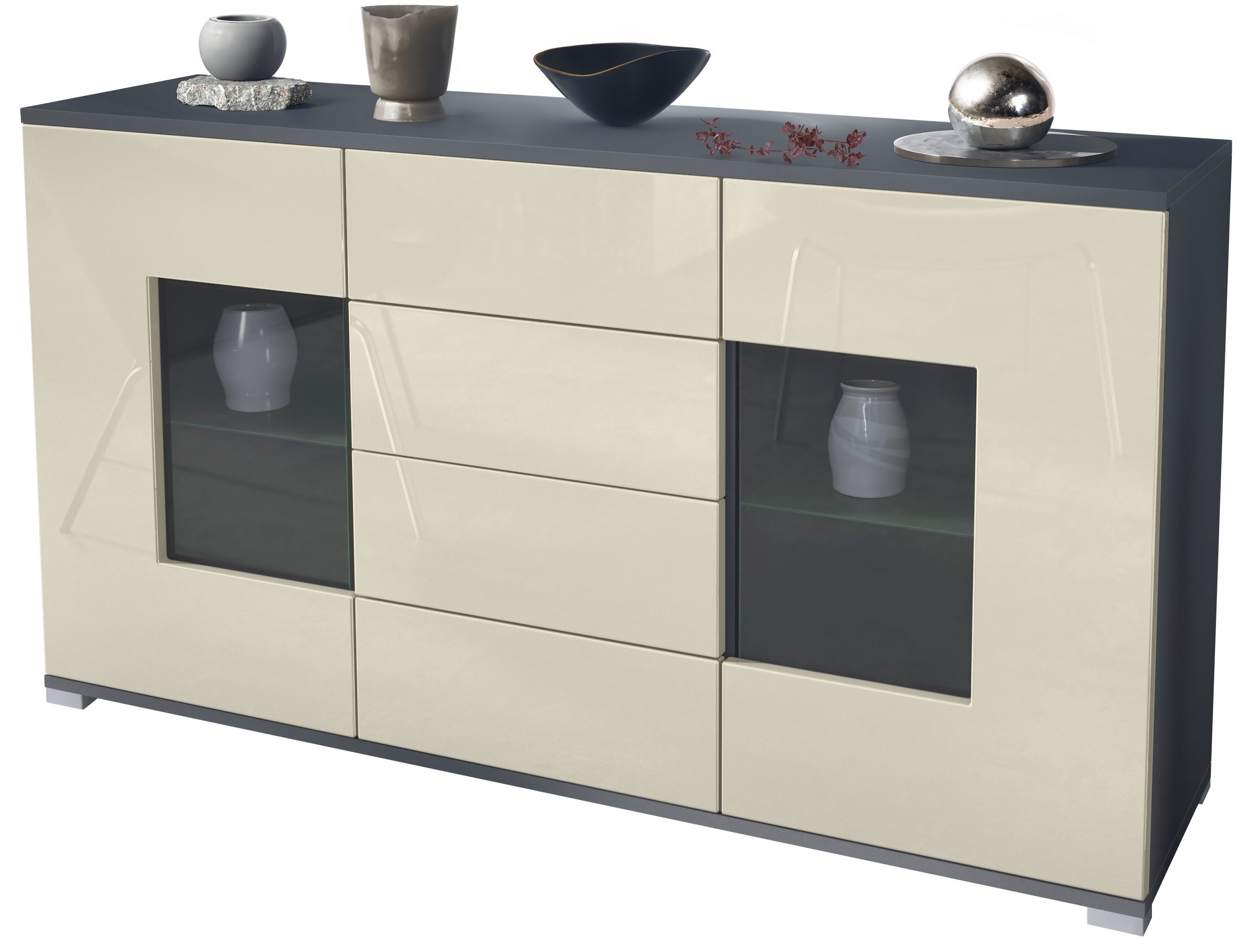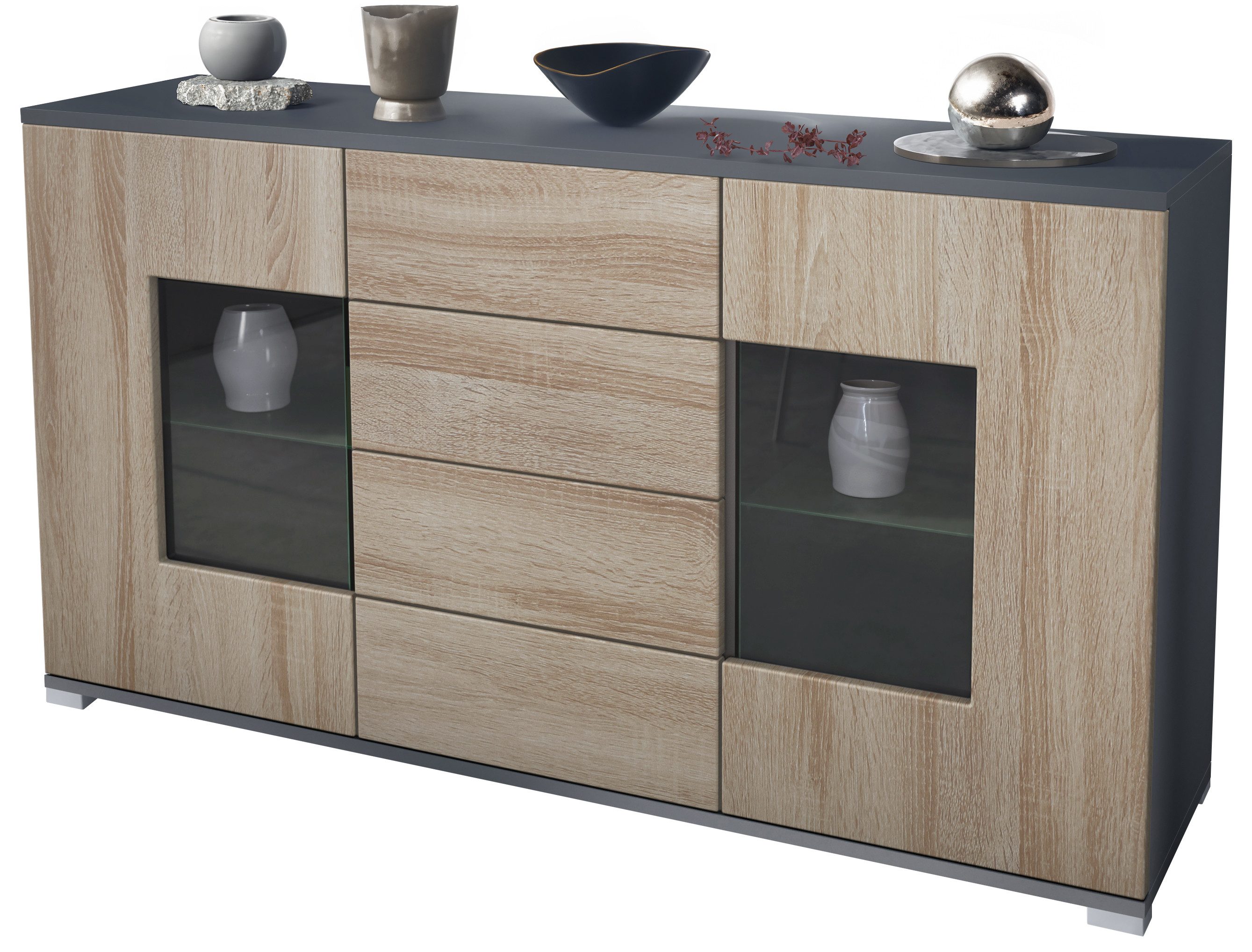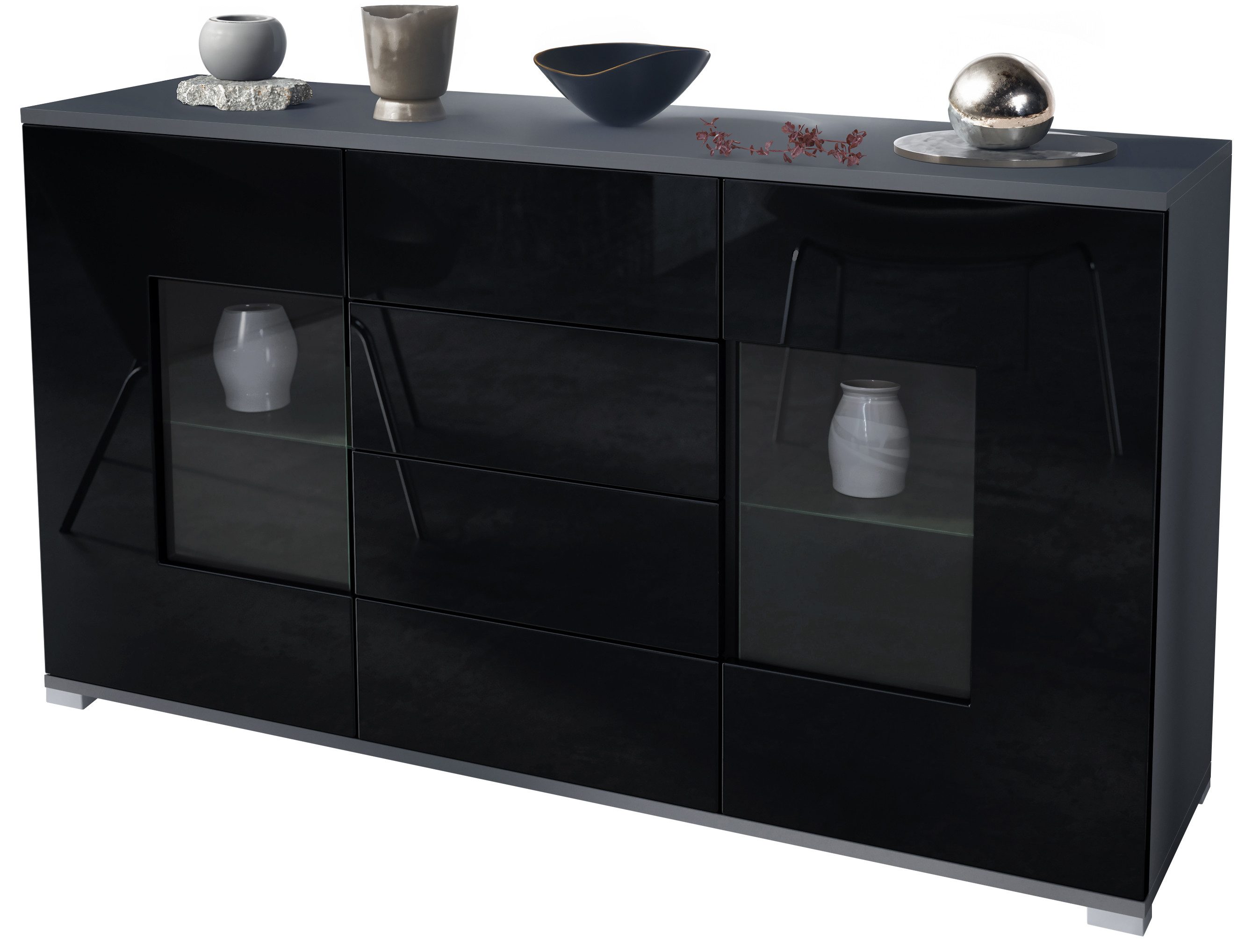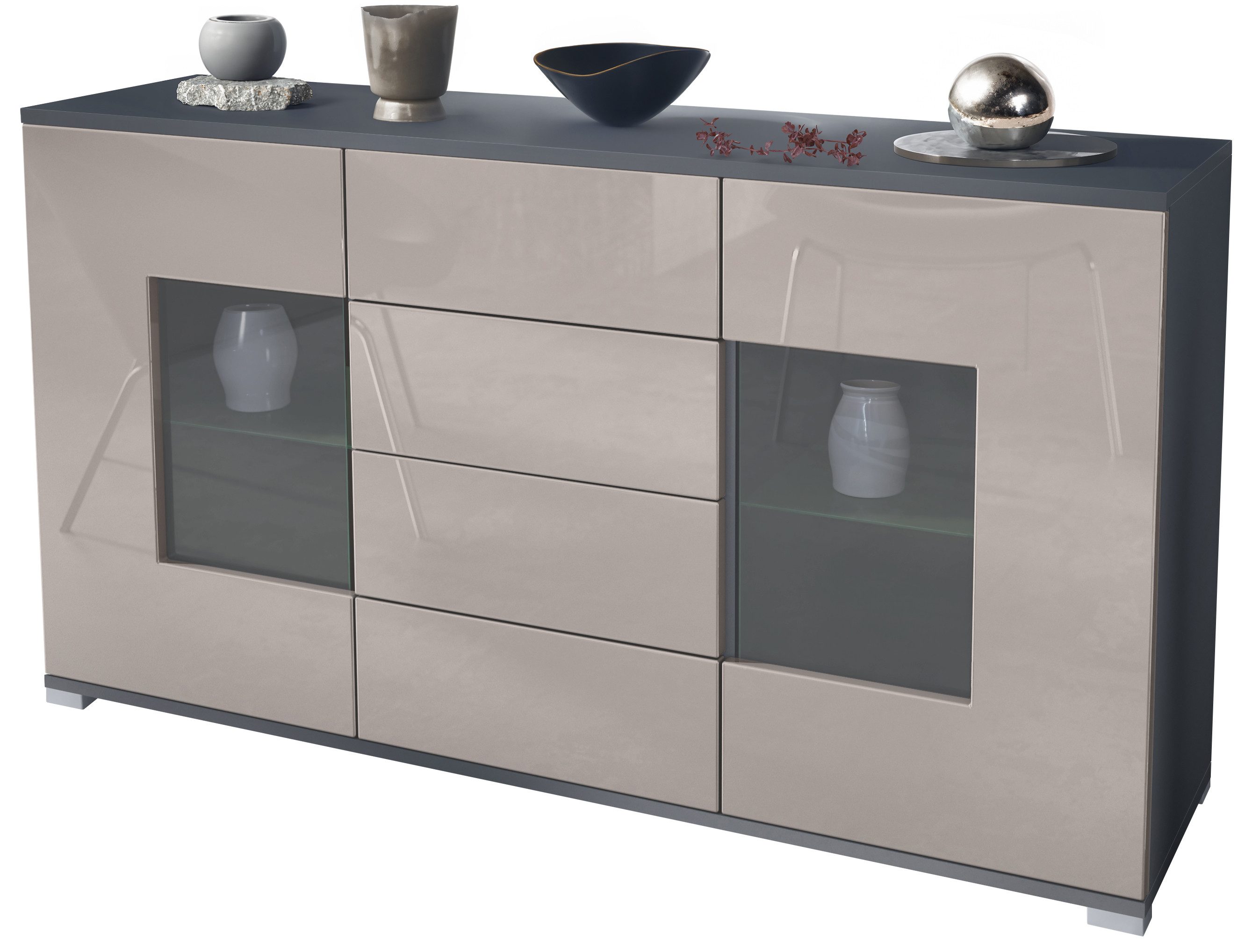 Der Korpus des Sideboards ist in Anthrazit matt gehalten. Wählen Sie die passende Frontfarbe für Ihren Wohnstil: edle Hochglanz-Optik, natürliche Holztöne oder moderne matte Farben.