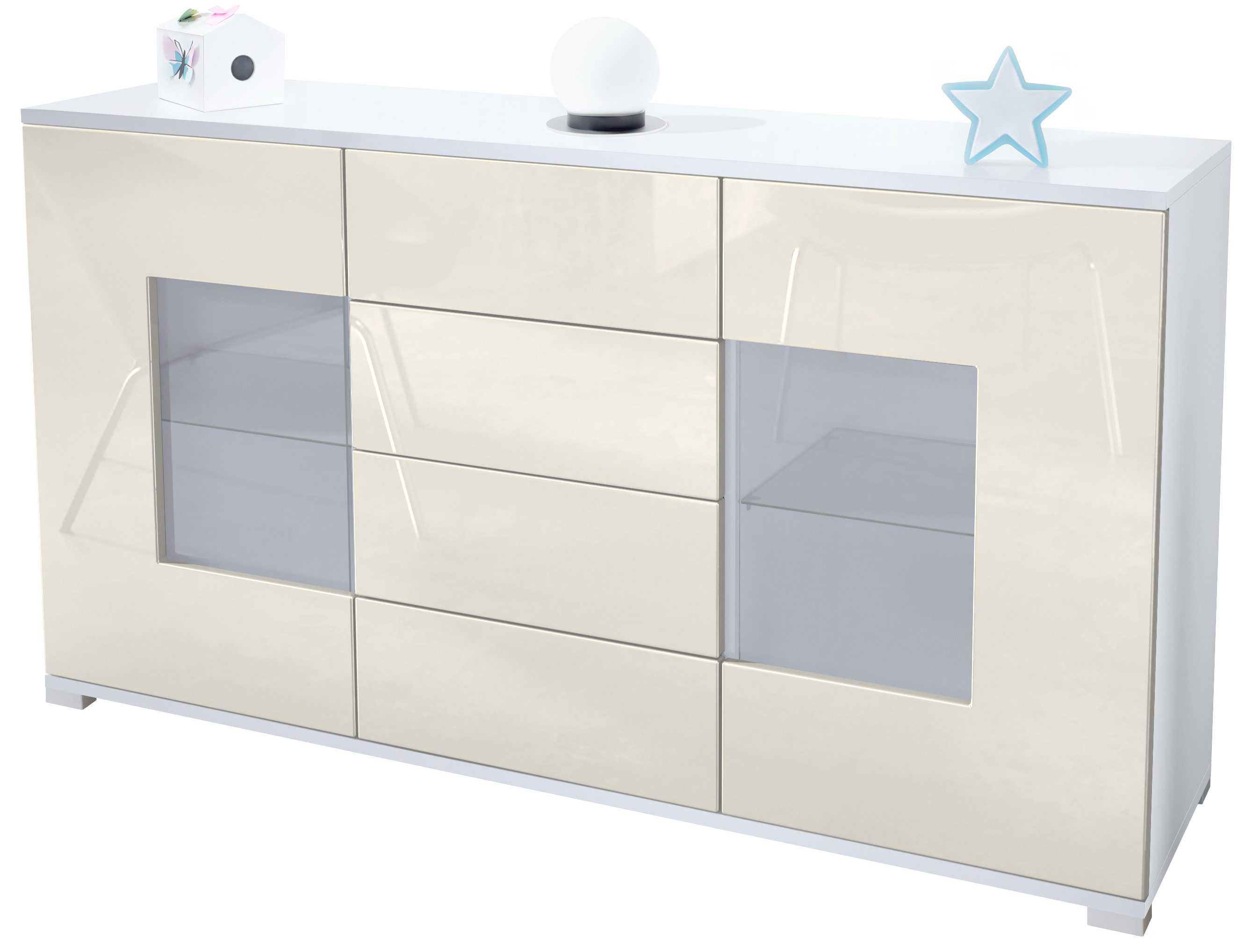 Der Korpus des Sideboards ist in Weiß matt gehalten. Wählen Sie die passende Frontfarbe für Ihren Wohnstil: edle Hochglanz-Optik, natürliche Holztöne oder moderne matte Farben.