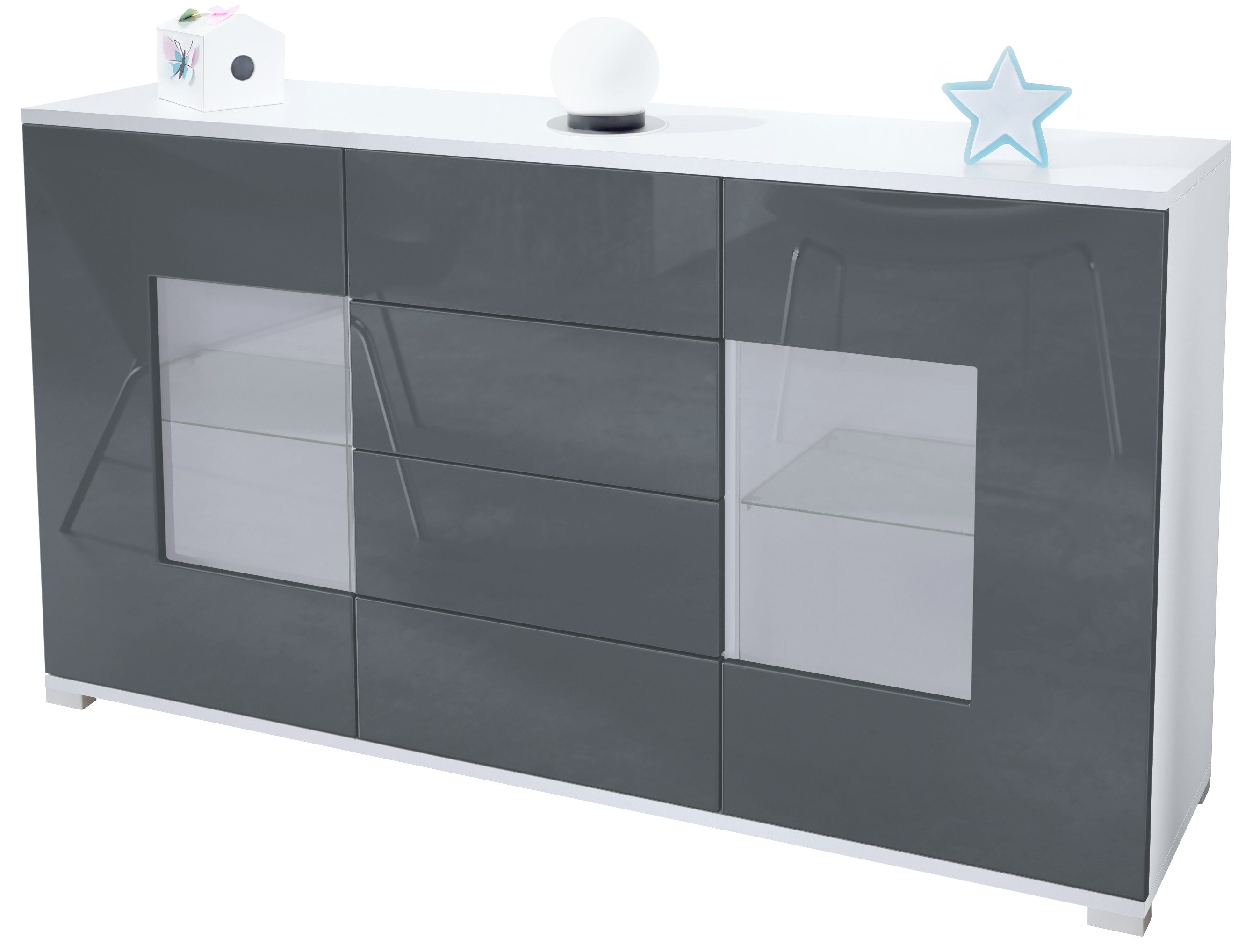 Entdecken Sie das elegante und geräumige Sideboard Grömitz V1 – die perfekte Kombination aus modernem Design, großzügigem Stauraum und stilvoller Vitrinenoptik.