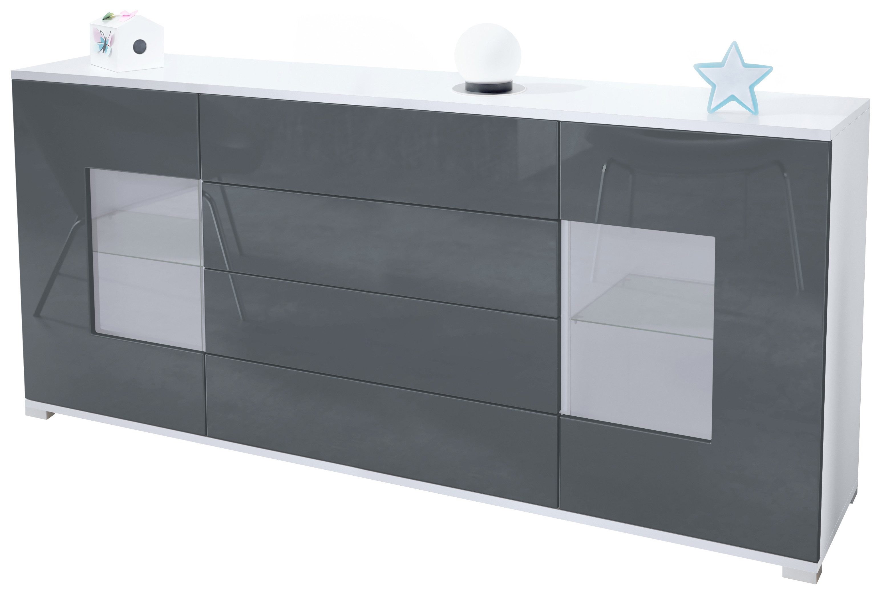 Entdecken Sie das elegante und geräumige Sideboard Grömitz V2 – die perfekte Kombination aus modernem Design, großzügigem Stauraum und stilvoller Vitrinenoptik.