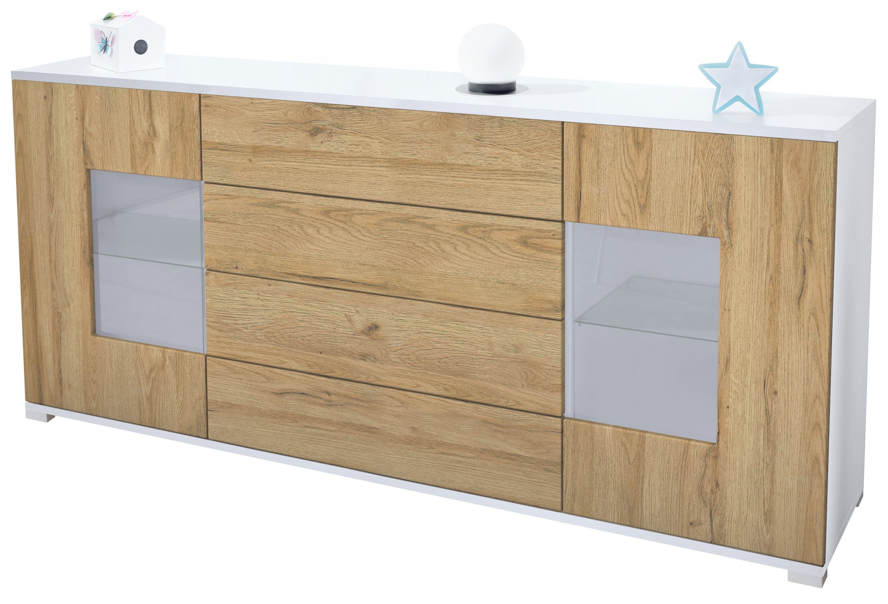 Der Korpus des Sideboards ist in Weiß matt gehalten. Wählen Sie die passende Frontfarbe für Ihren Wohnstil: edle Hochglanz-Optik, natürliche Holztöne oder moderne matte Farben.