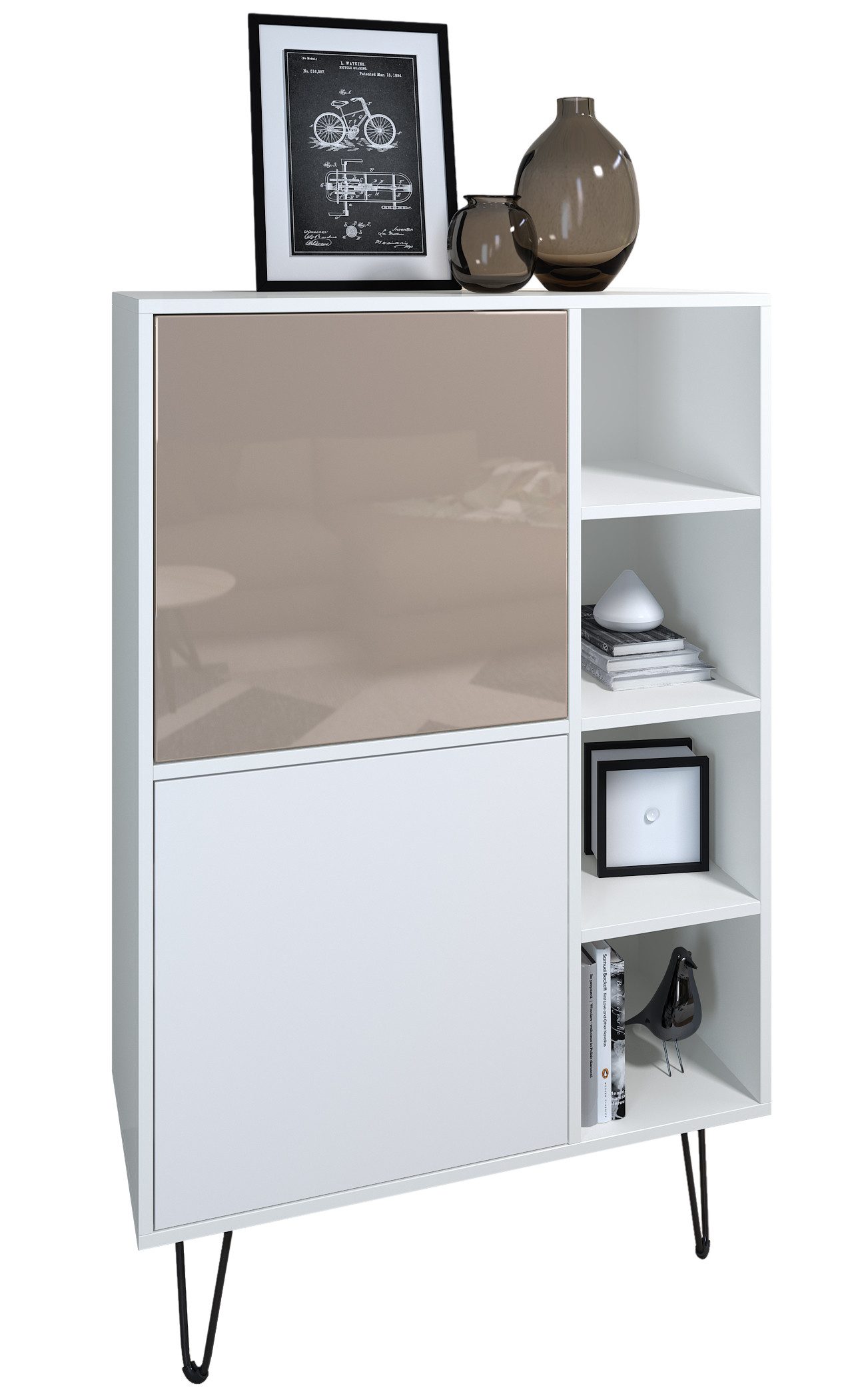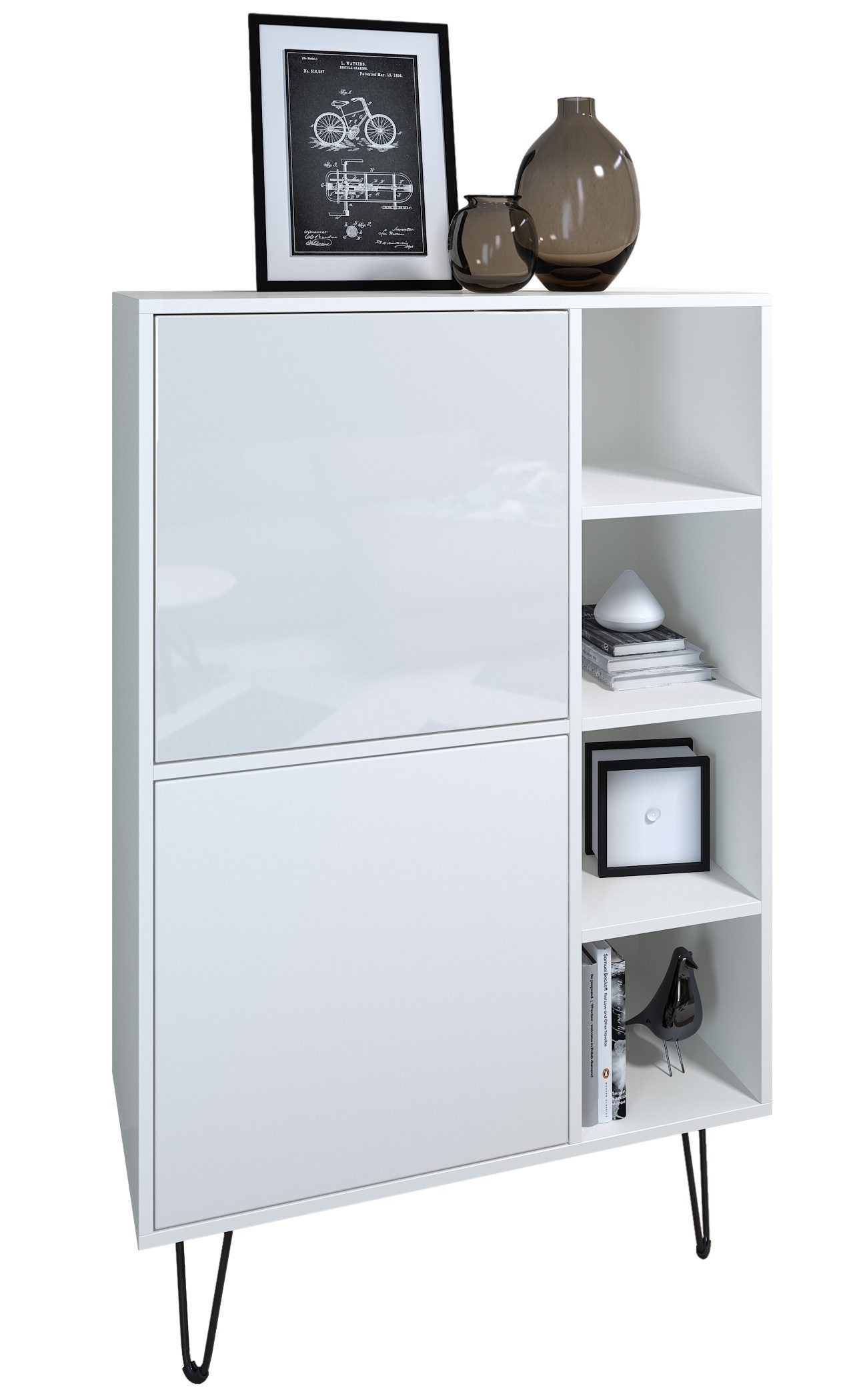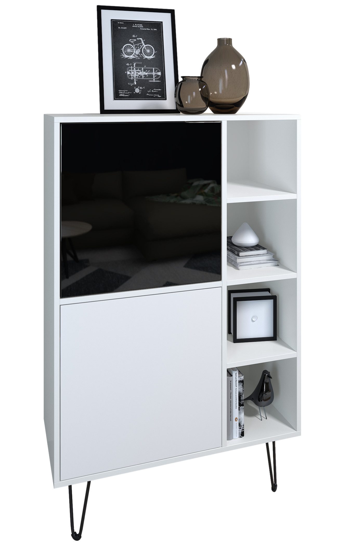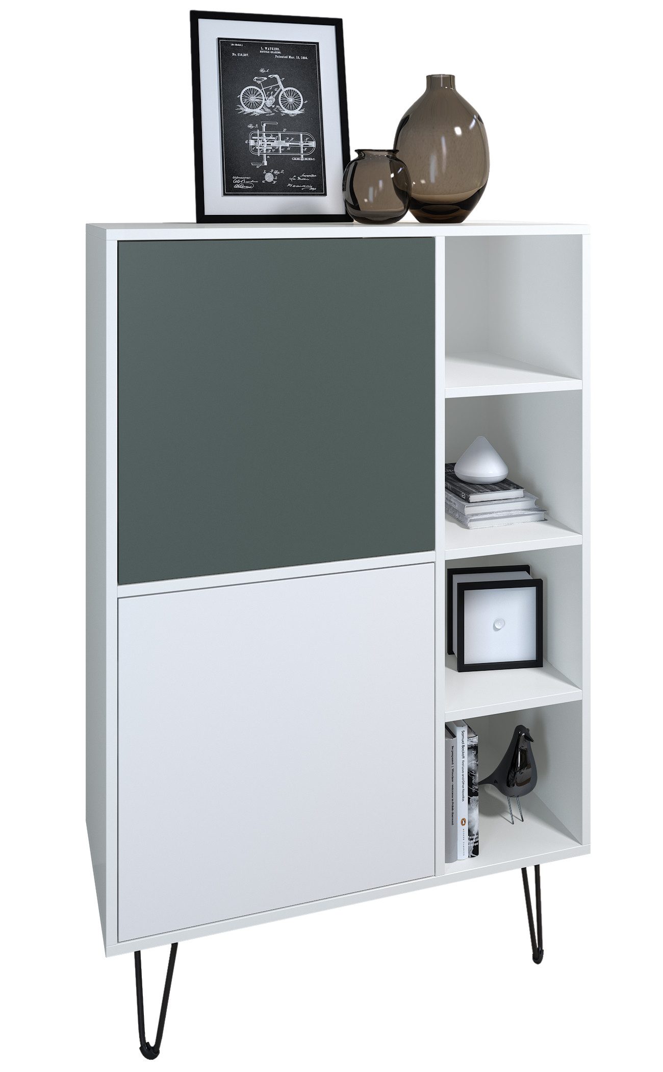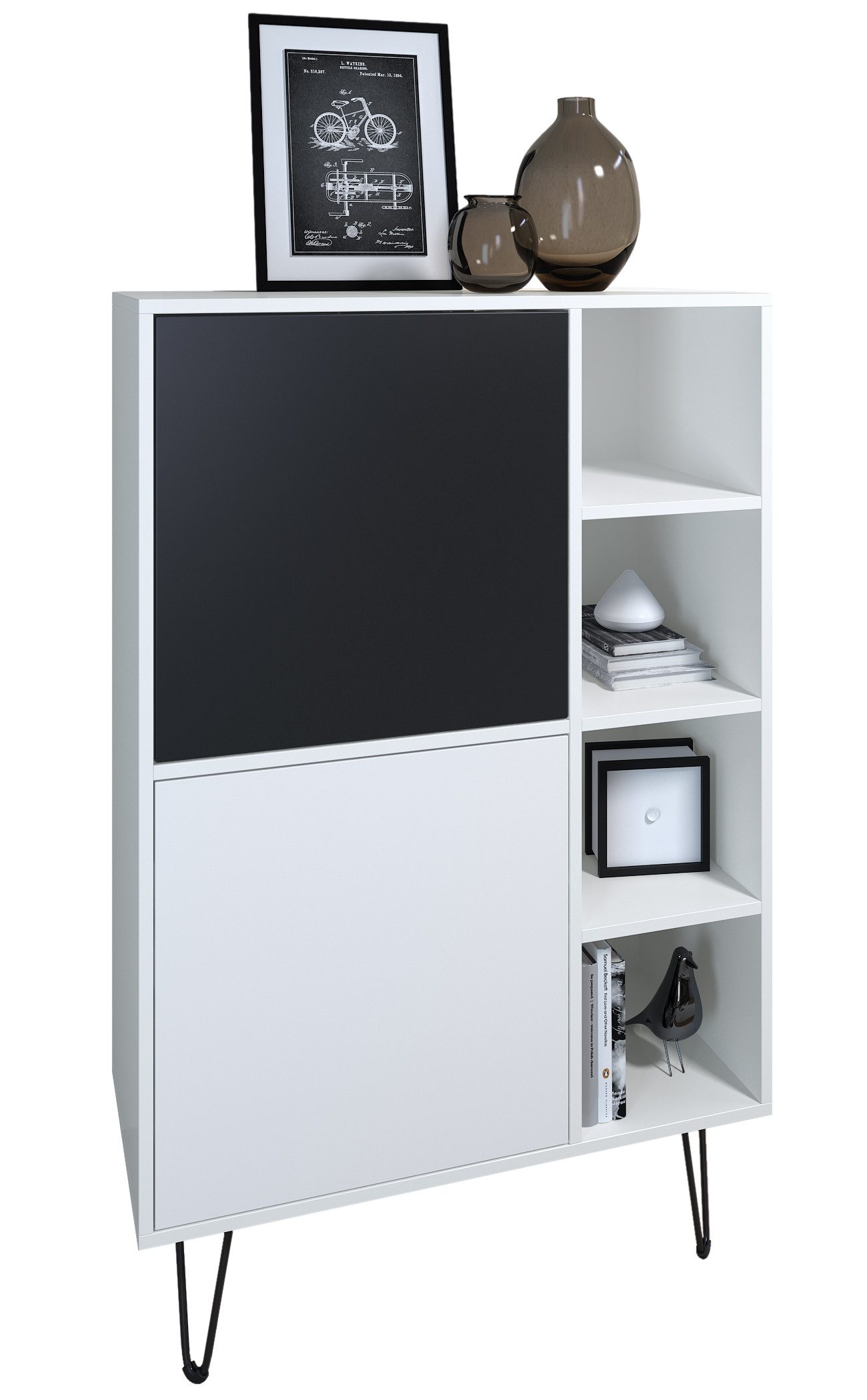 Das Havana Highboard V1 vereint minimalistisches Design mit cleverem Stauraum. Der Korpus in Weiß matt sorgt für eine zeitlose Optik und elegante Ausstrahlung. Schwarze Füße setzen stilvolle Akzente und geben Stabilität. Die Fronten sind wählbar in verschiedenen Вариантыn – ideal für Wohnzimmer, Esszimmer, Schlafzimmer oder Flur.