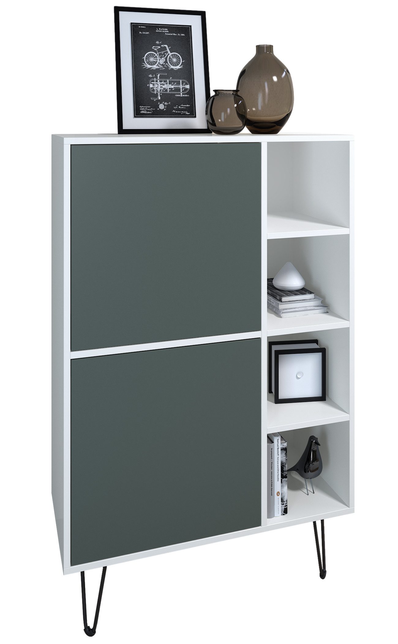 Die Türen mit Push-to-Open-Funktion verbergen großzügige Innenfächer – perfekt als Kommode, Schrank oder Aufbewahrungsschrank für Geschirr, Bücher oder Deko. Die 4 offenen Fächer bieten zusätzlichen Stauraum für Dekoration, Technik oder Pflanzen. Dank der grifflosen Front wirkt das Möbelstück besonders modern und harmonisch.