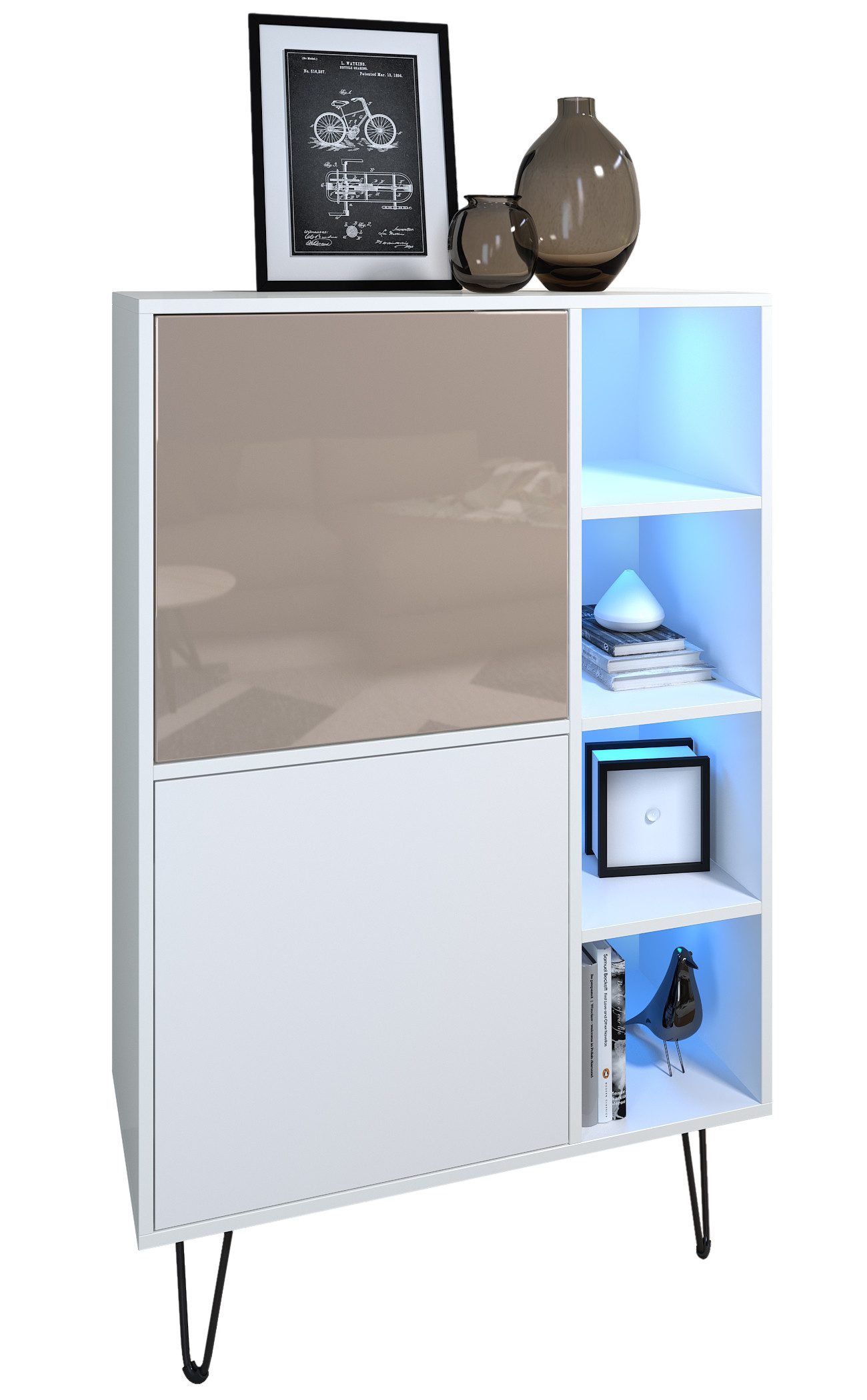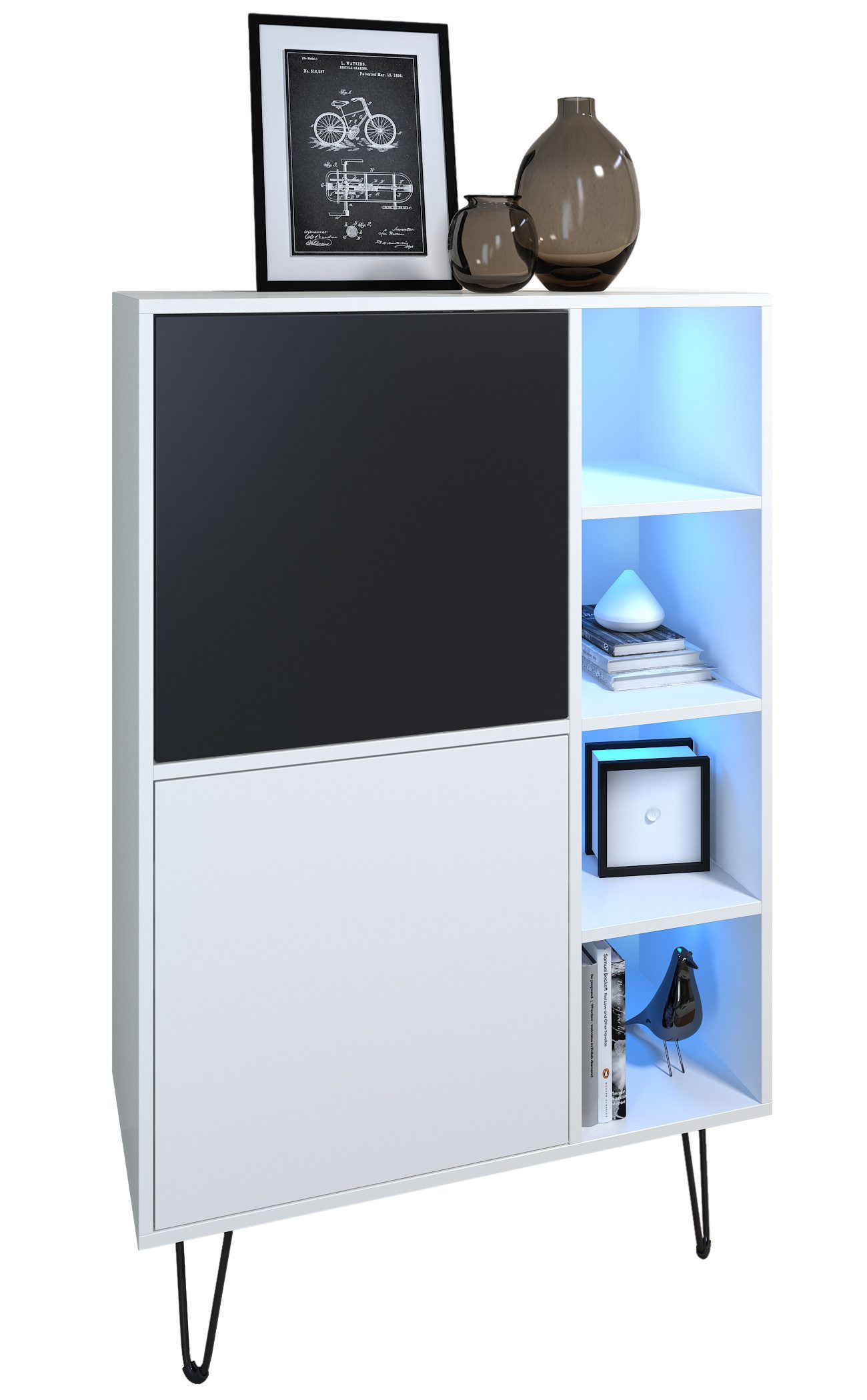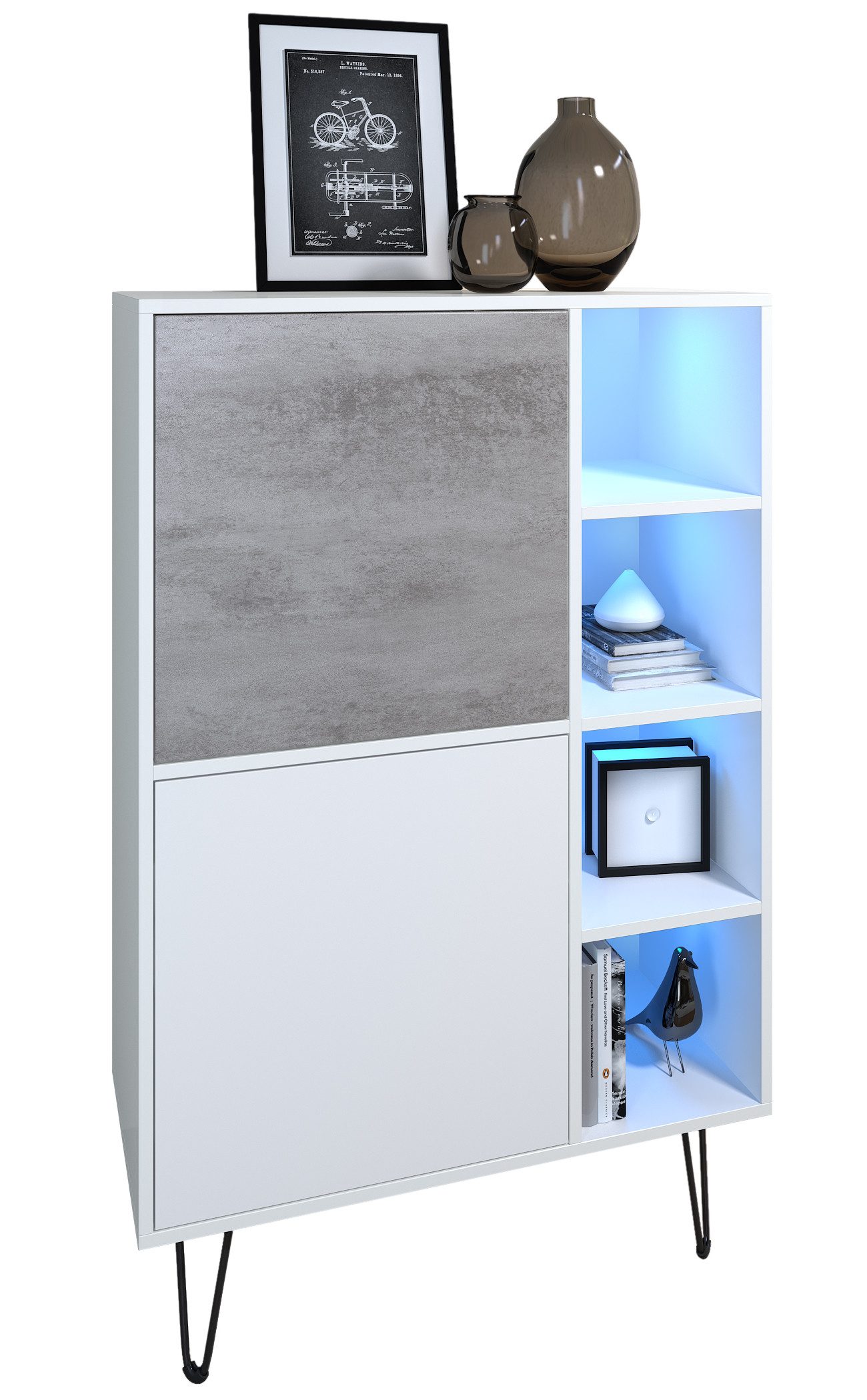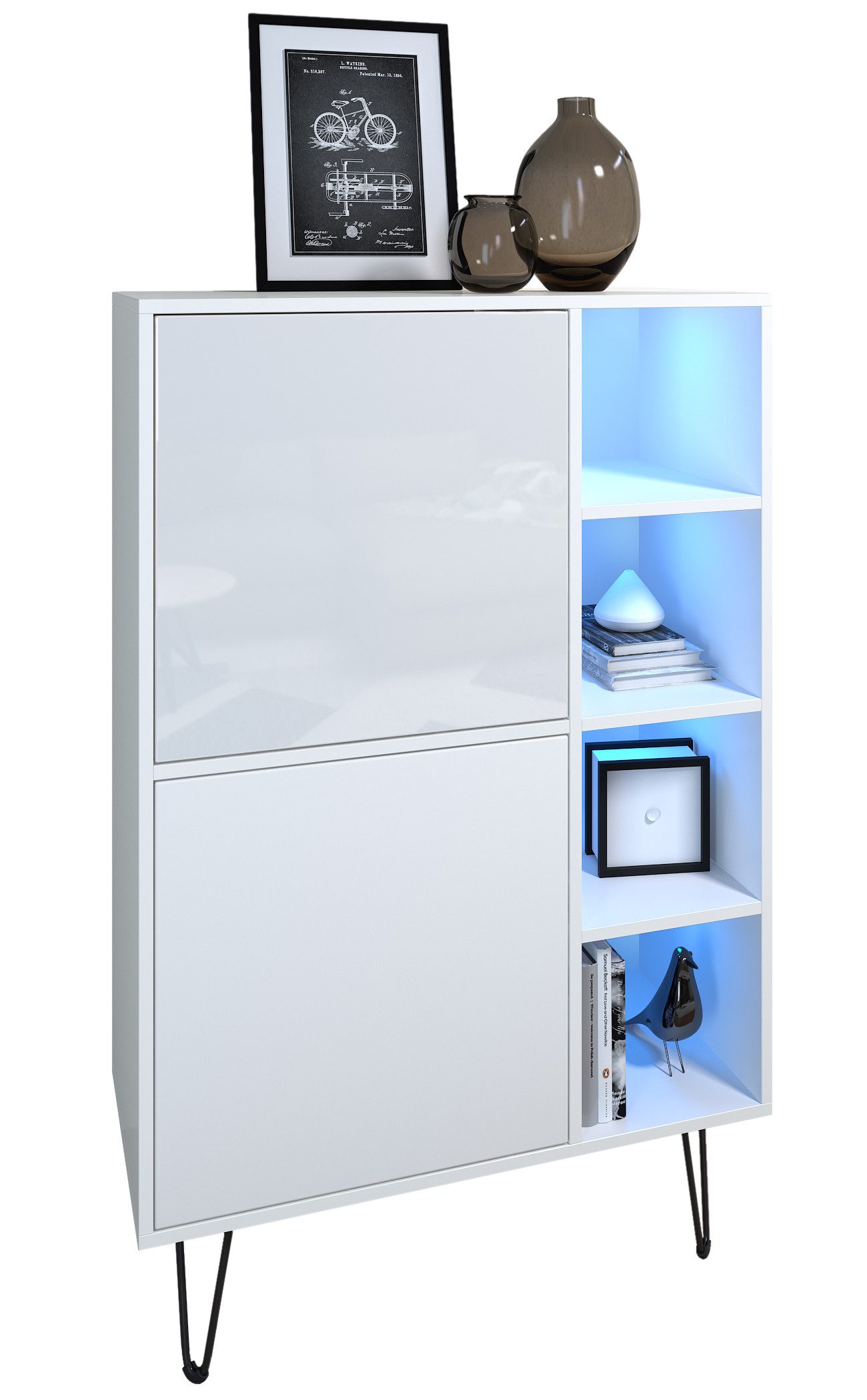 Lieferumfang: 1x Highboard mit LED-Beleuchtung, Montagematerial & bebilderte Aufbauanleitung