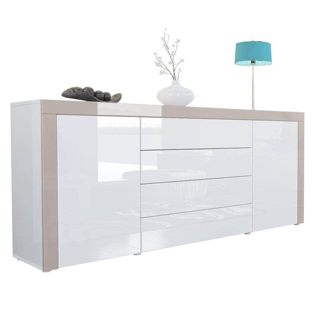 Das Sideboard ist in Weiß Hochglanz erhältlich, das jedem Raum einen Hauch von Eleganz verleiht.