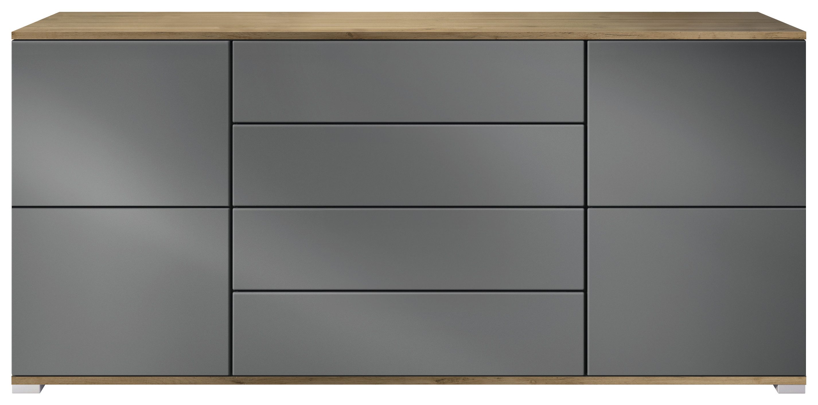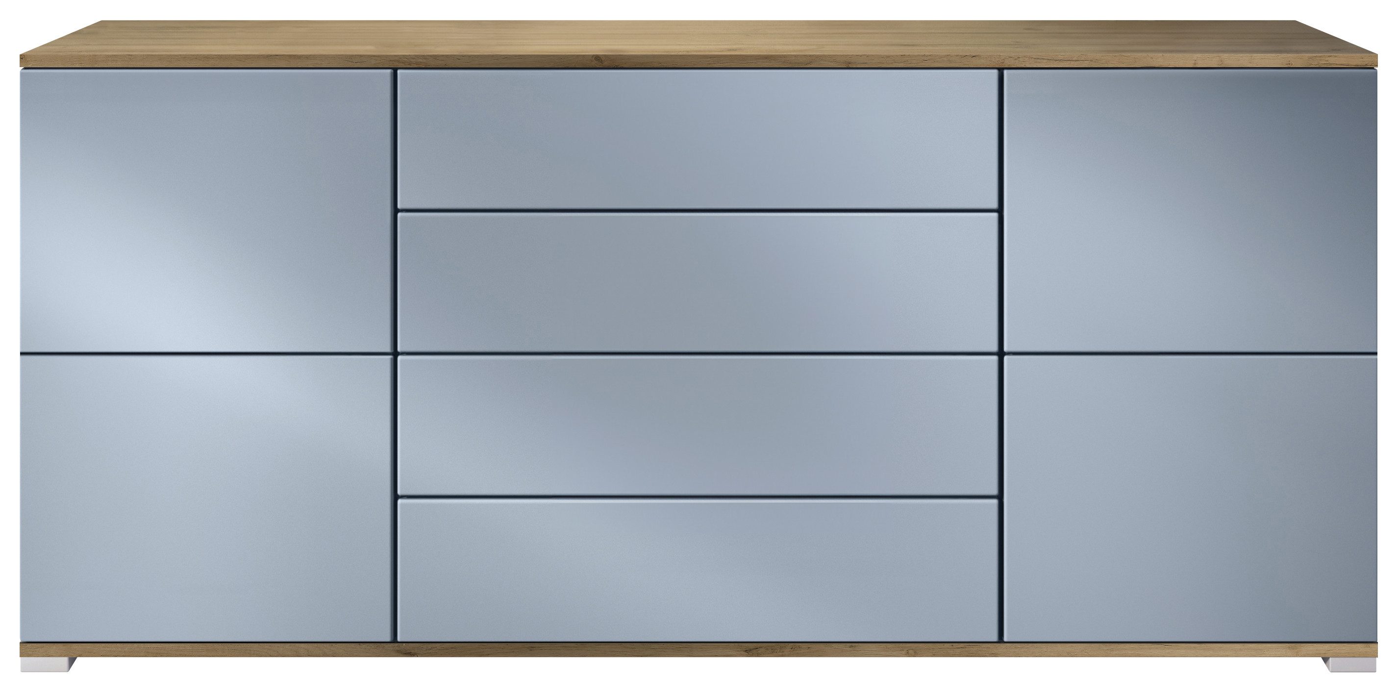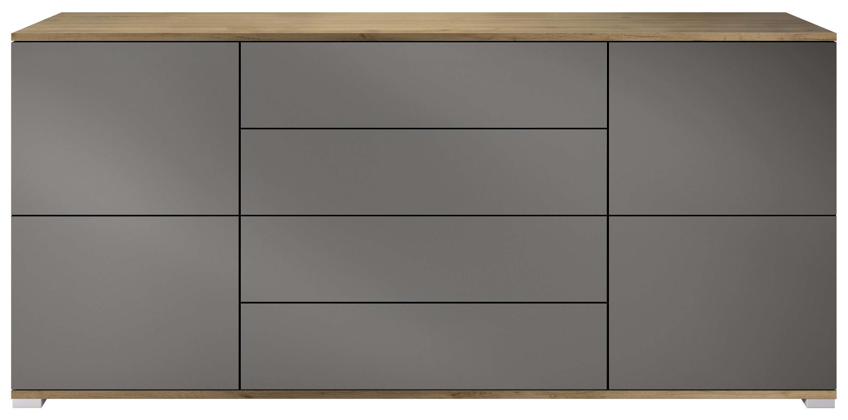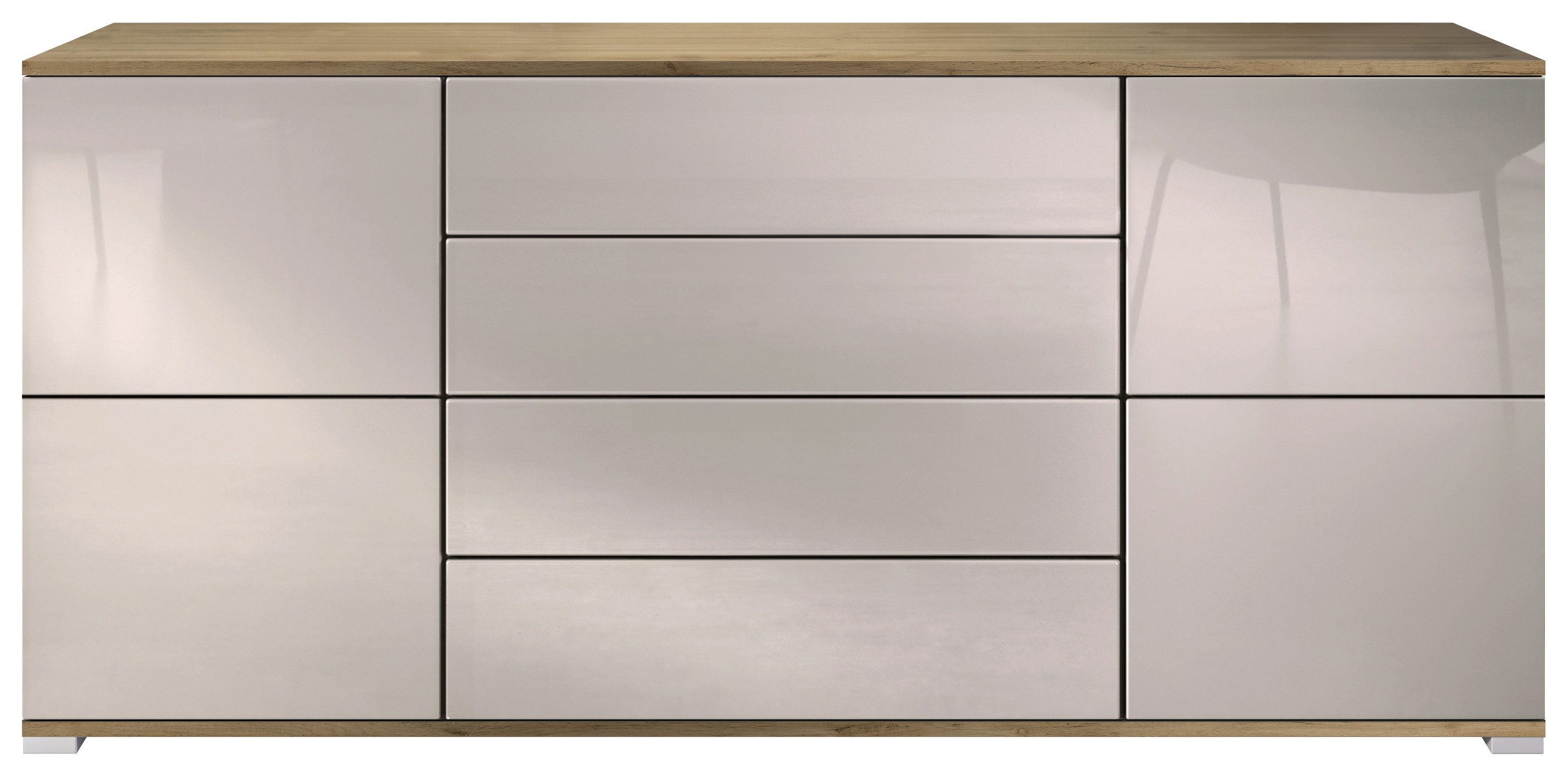 Der Korpus des Sideboards ist in Eiche Evoke gehalten. Wählen Sie die passende Frontfarbe für Ihren Wohnstil: edle Hochglanz-Optik, natürliche Holztöne oder moderne matte Farben.