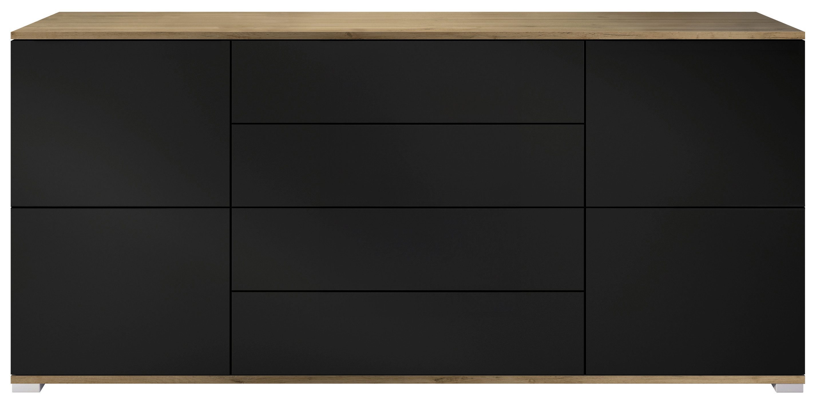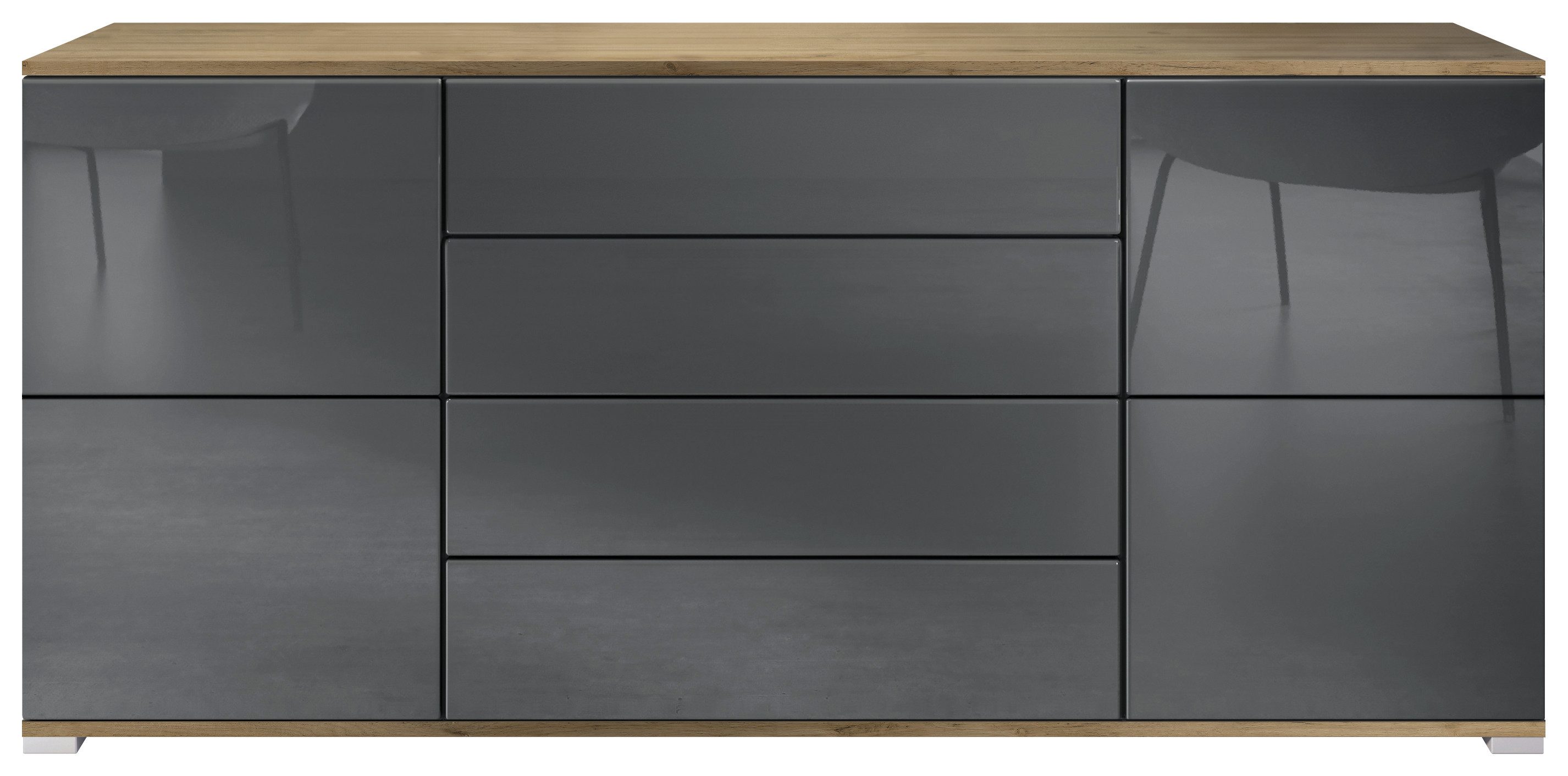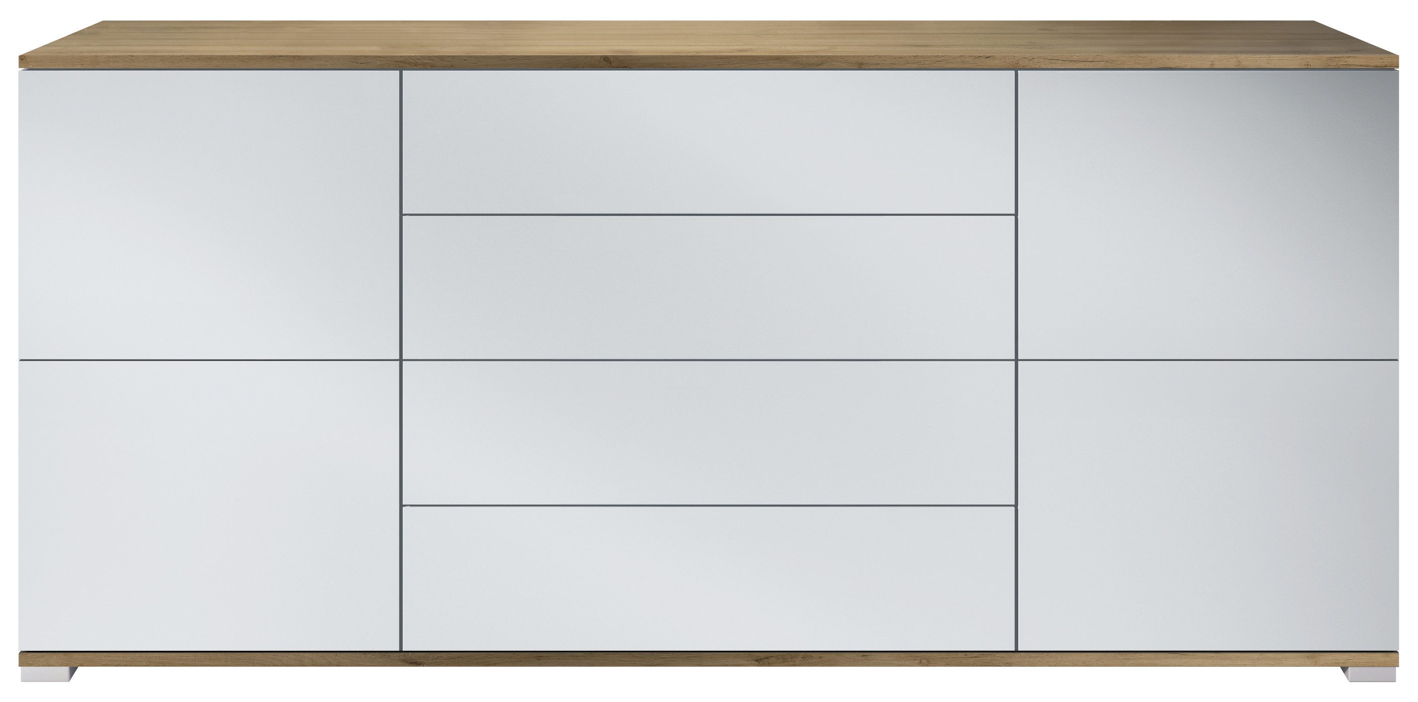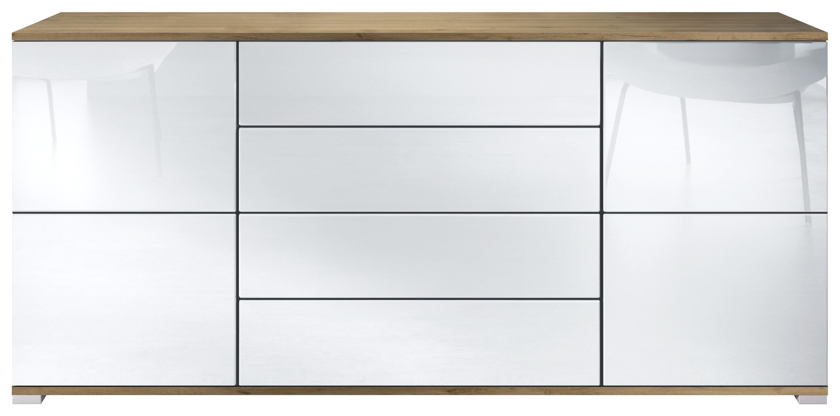 Der Korpus des Sideboards ist in Eiche Evoke gehalten. Wählen Sie die passende Frontfarbe für Ihren Wohnstil: edle Hochglanz-Optik, natürliche Holztöne oder moderne matte Farben.